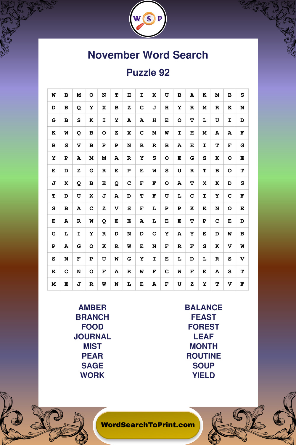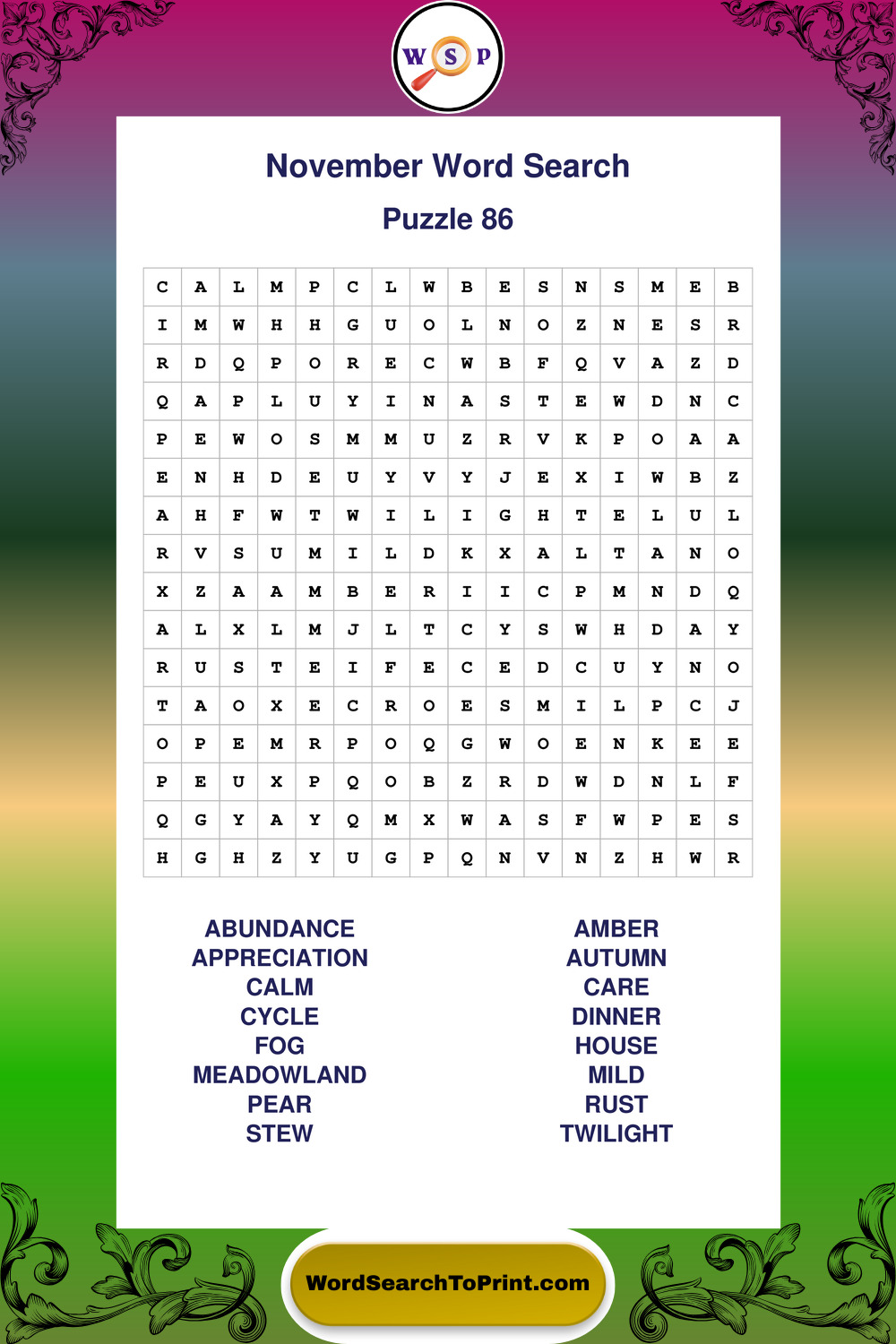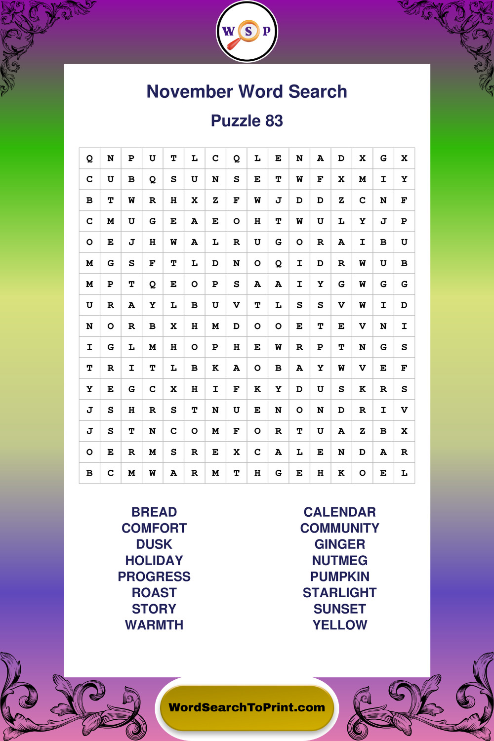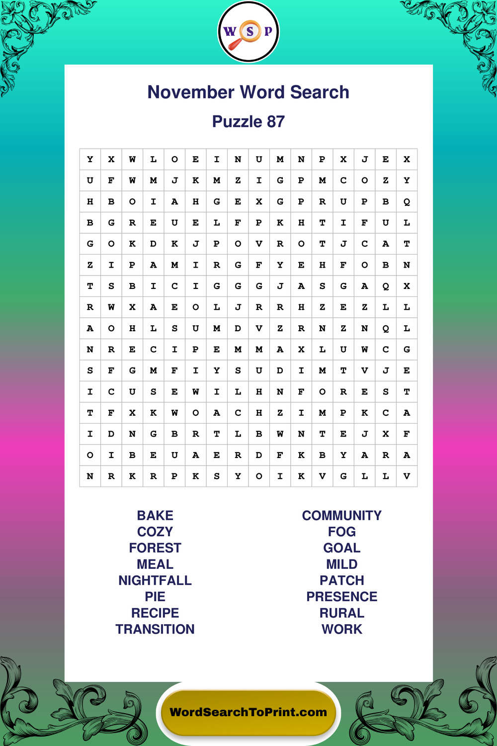 November Wordsearches