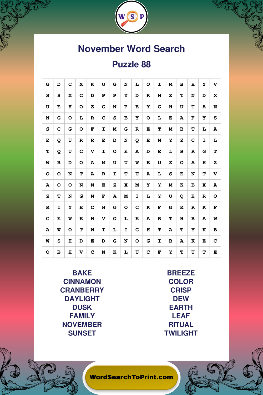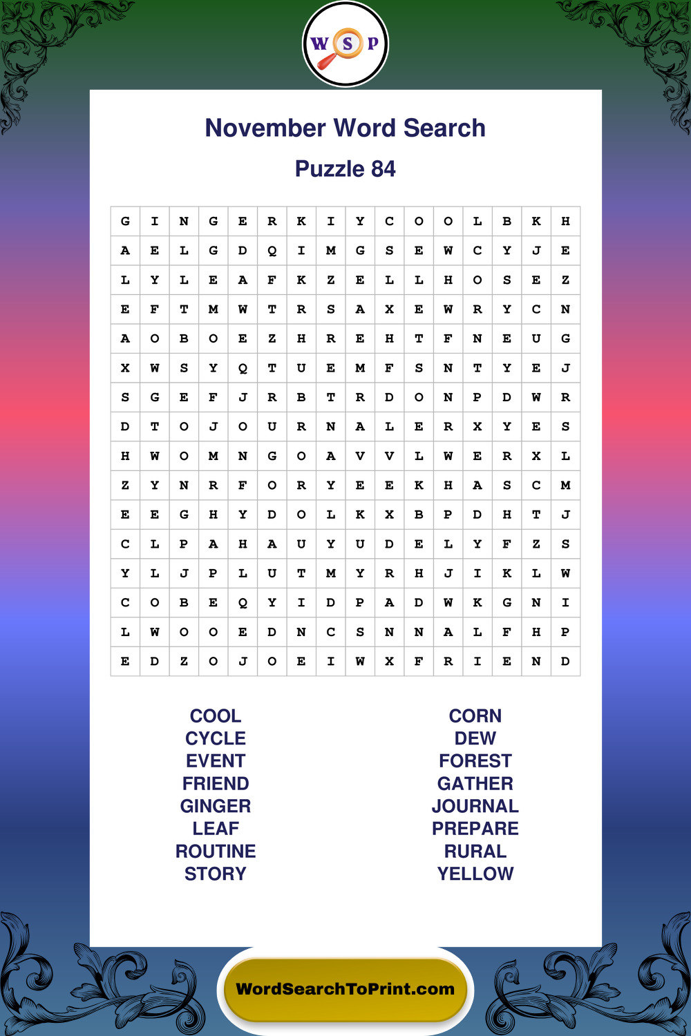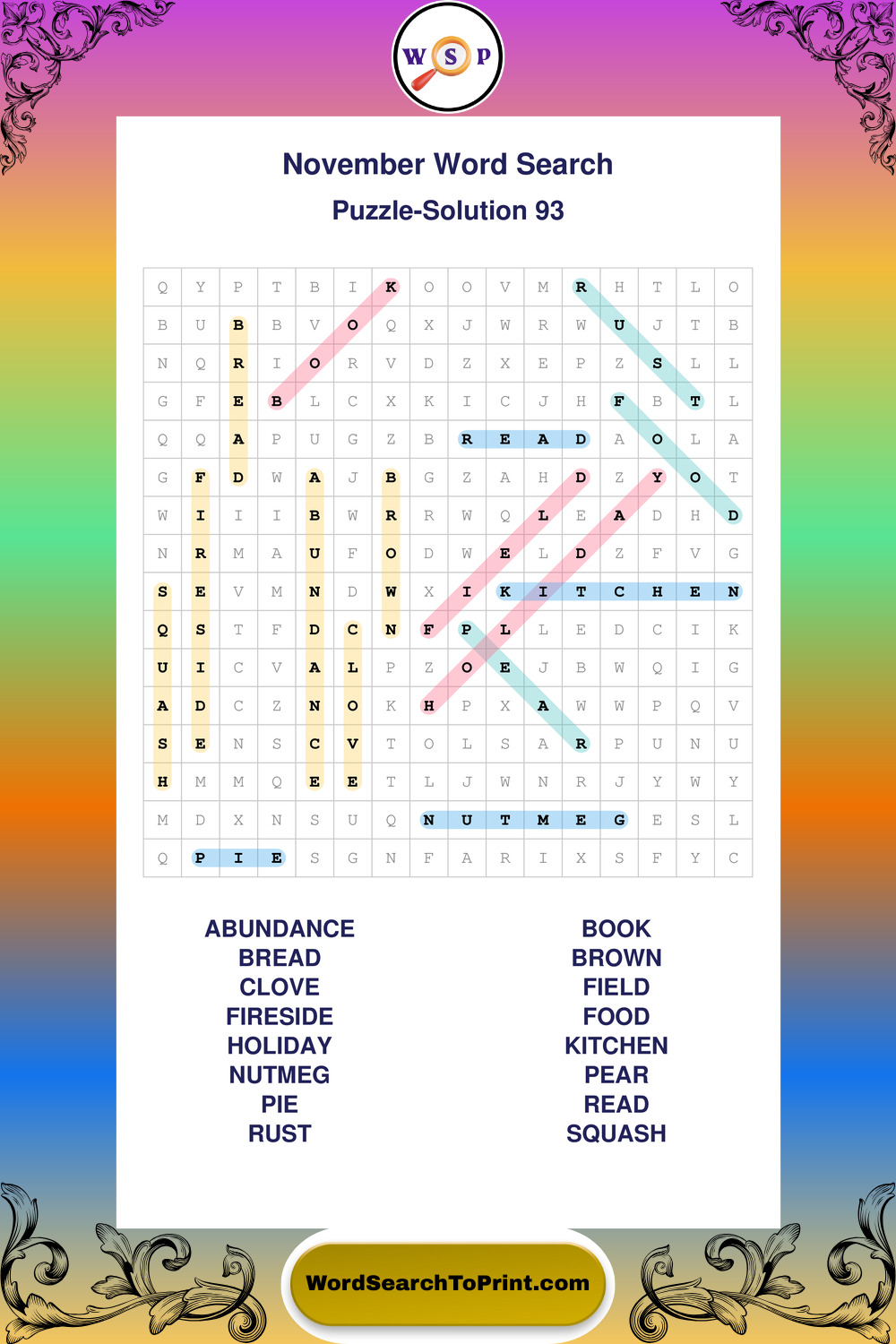 November Wordsearches