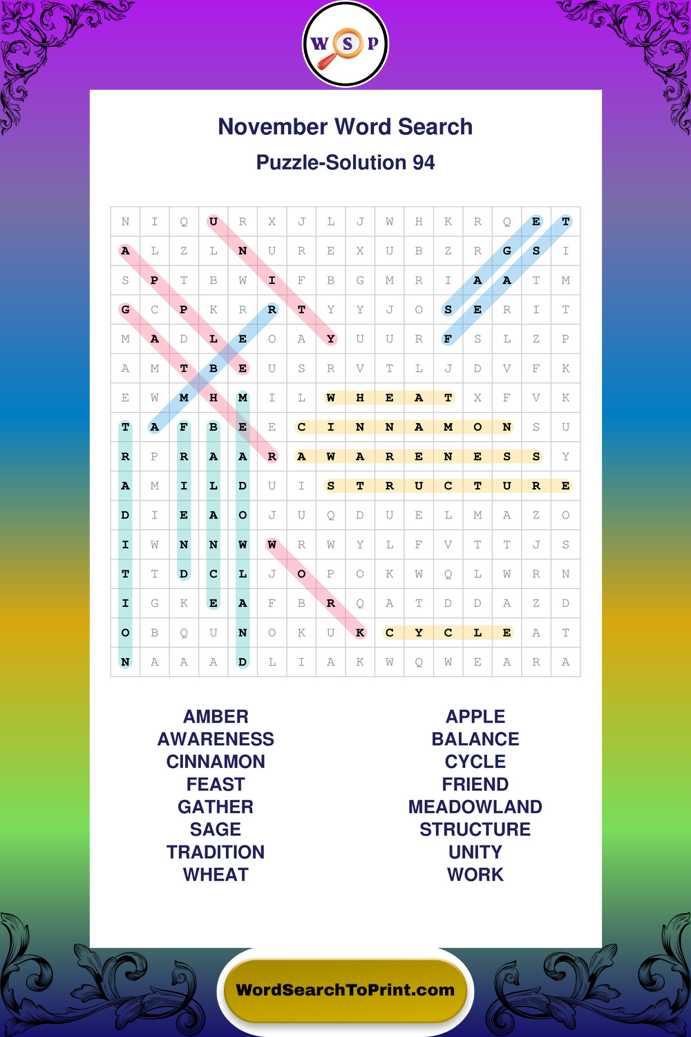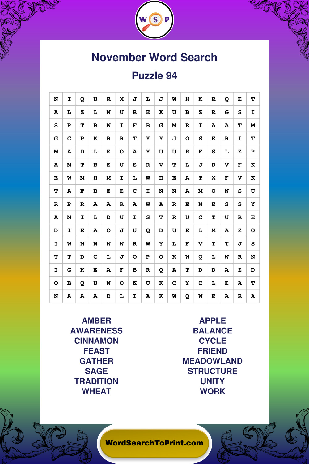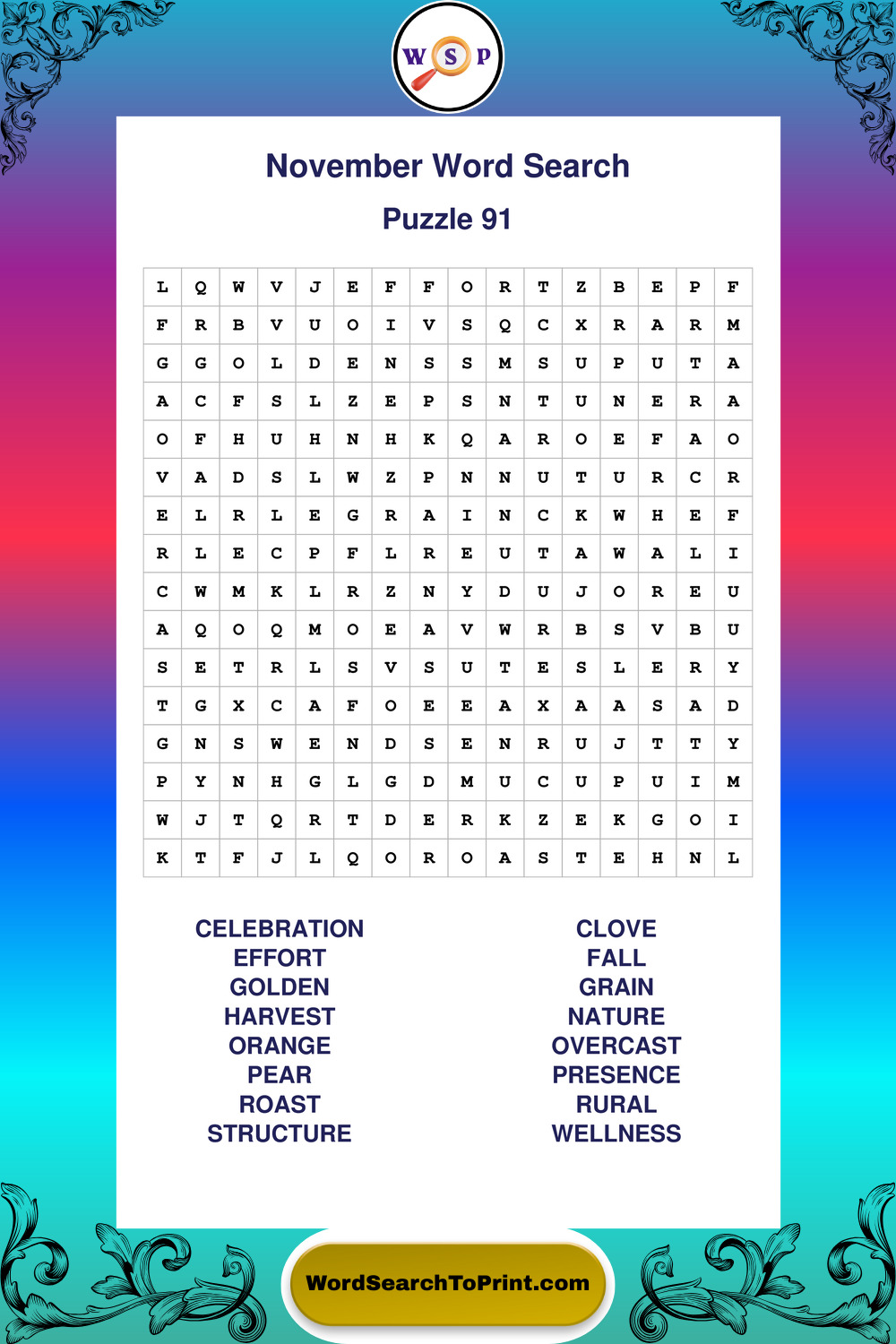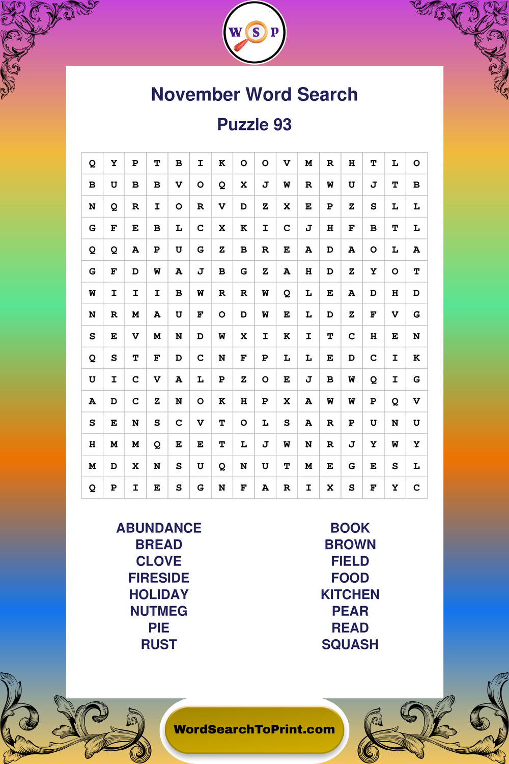 November Wordsearches