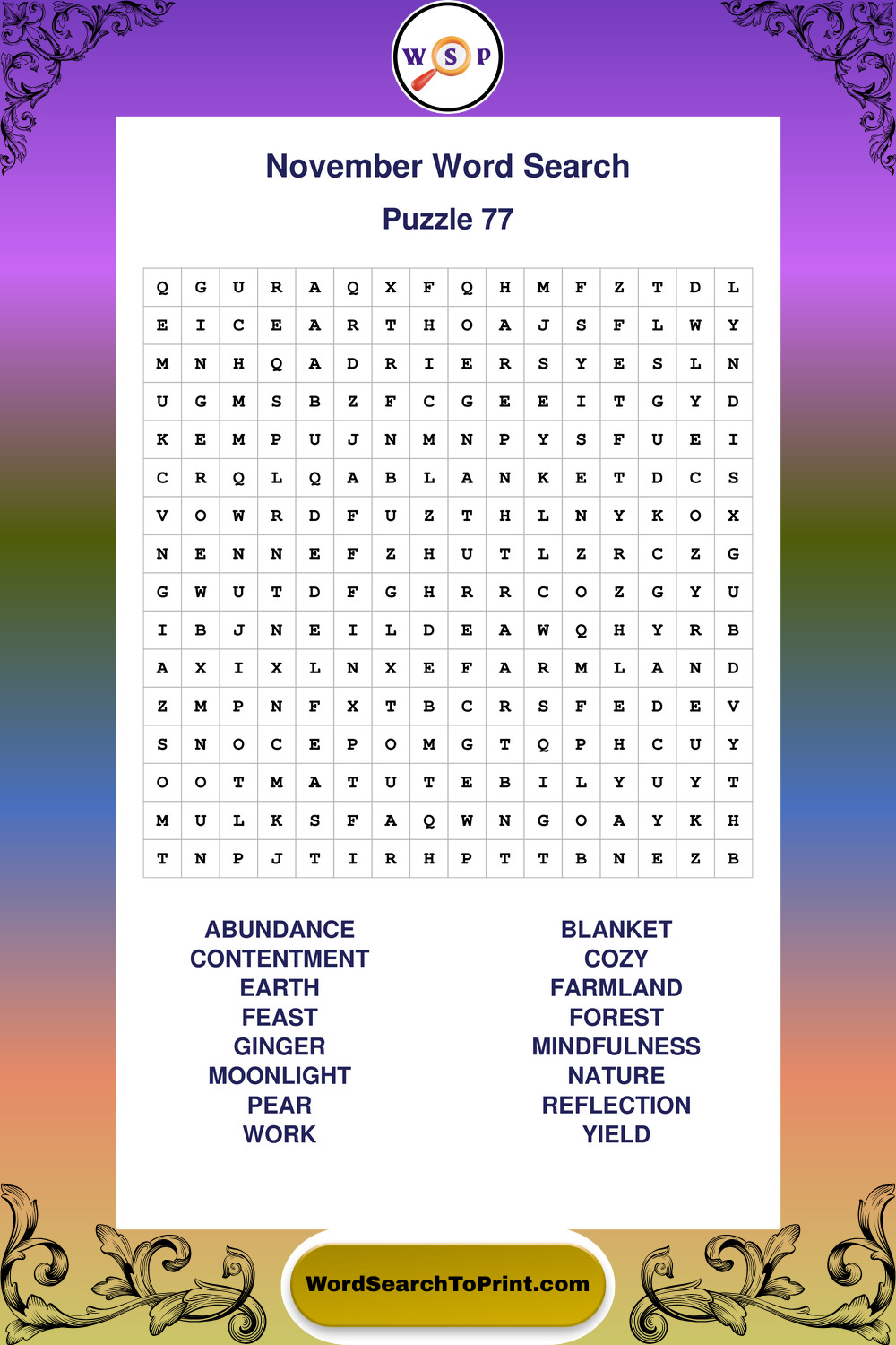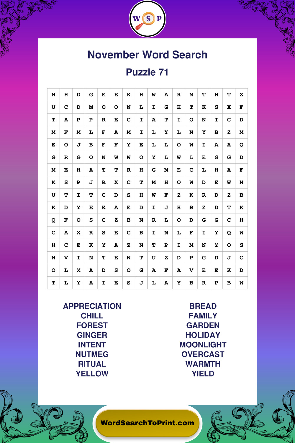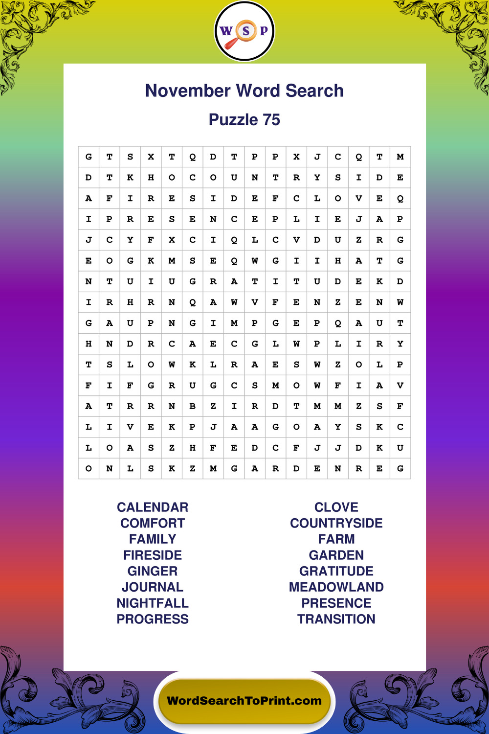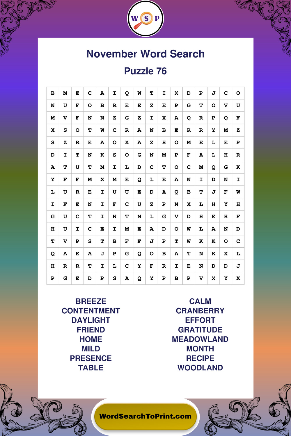 November Wordsearches