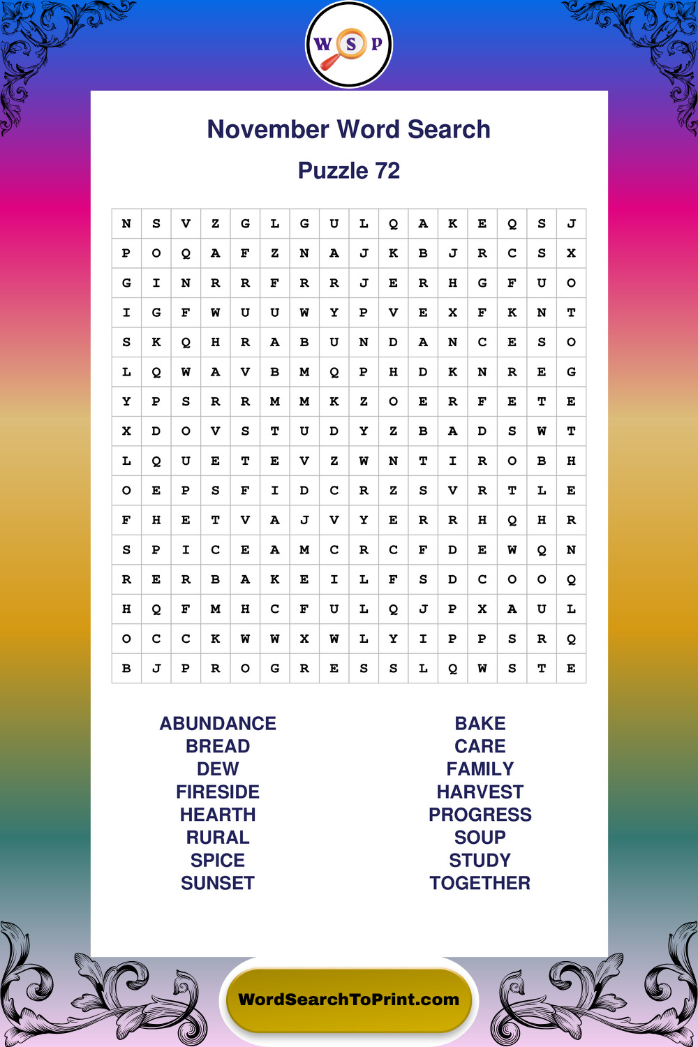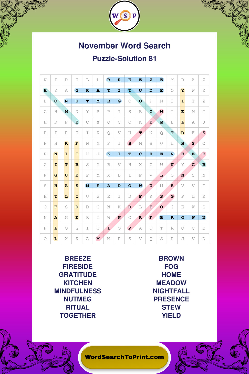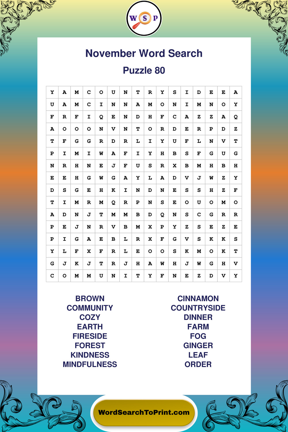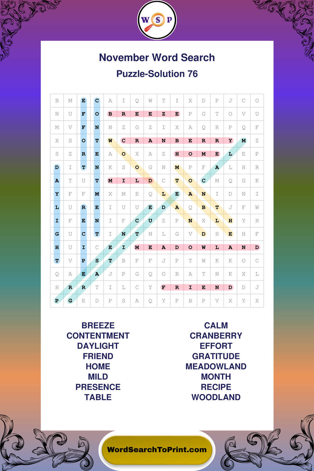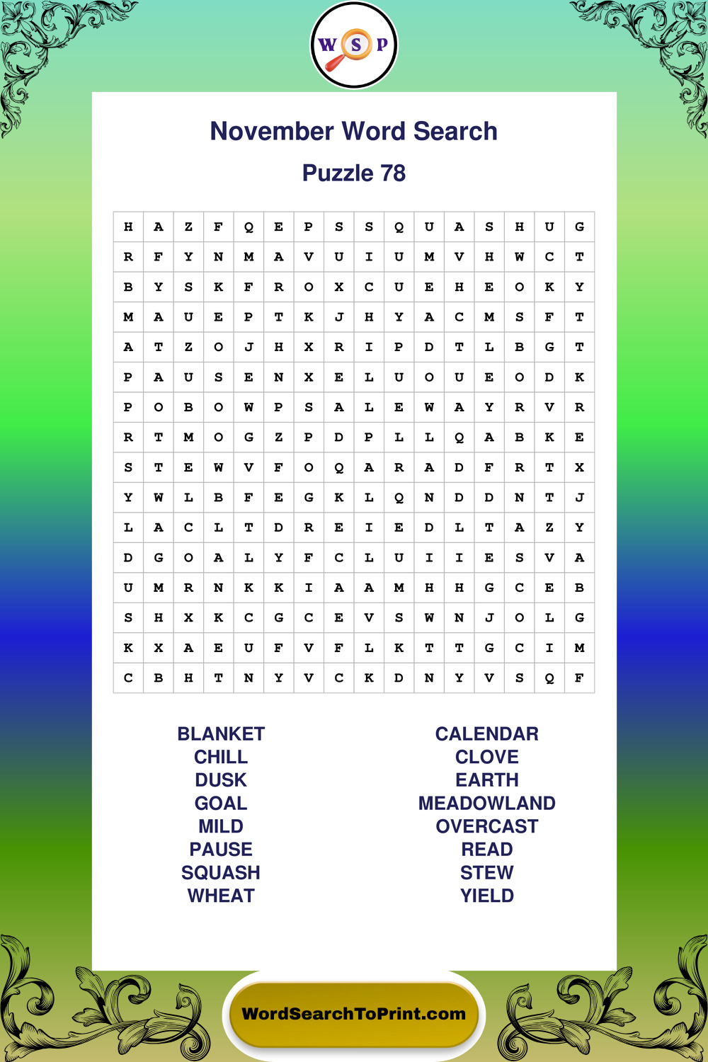 November Wordsearches