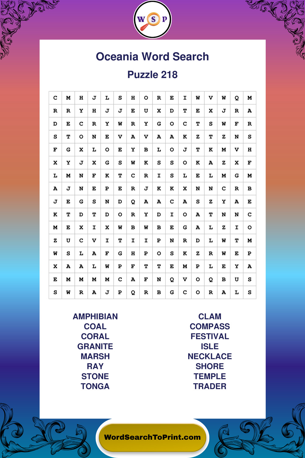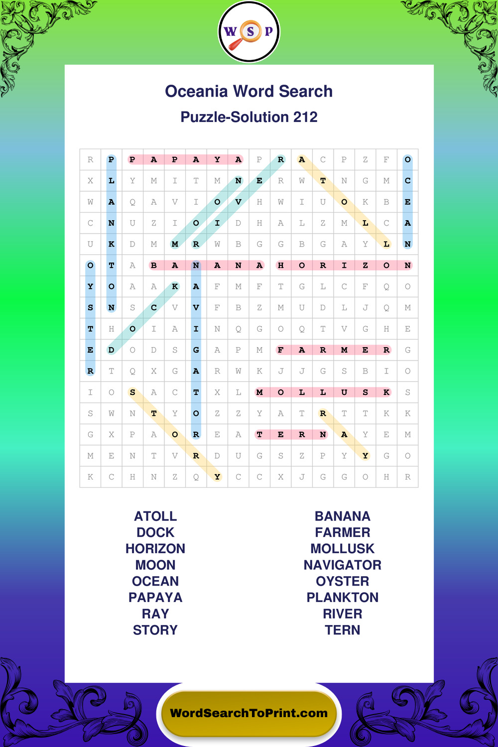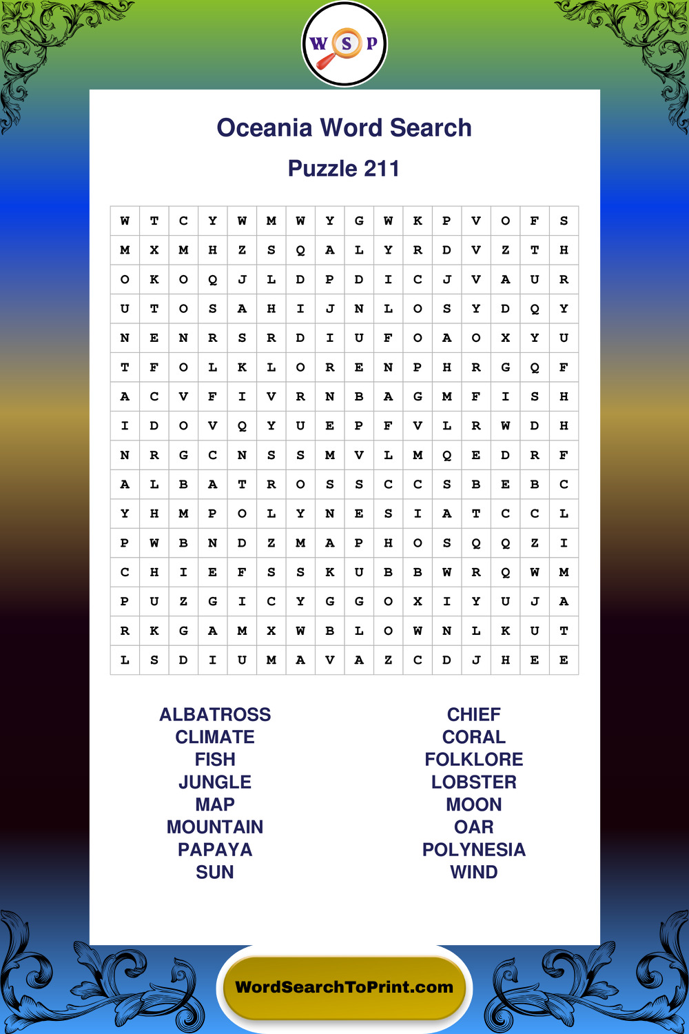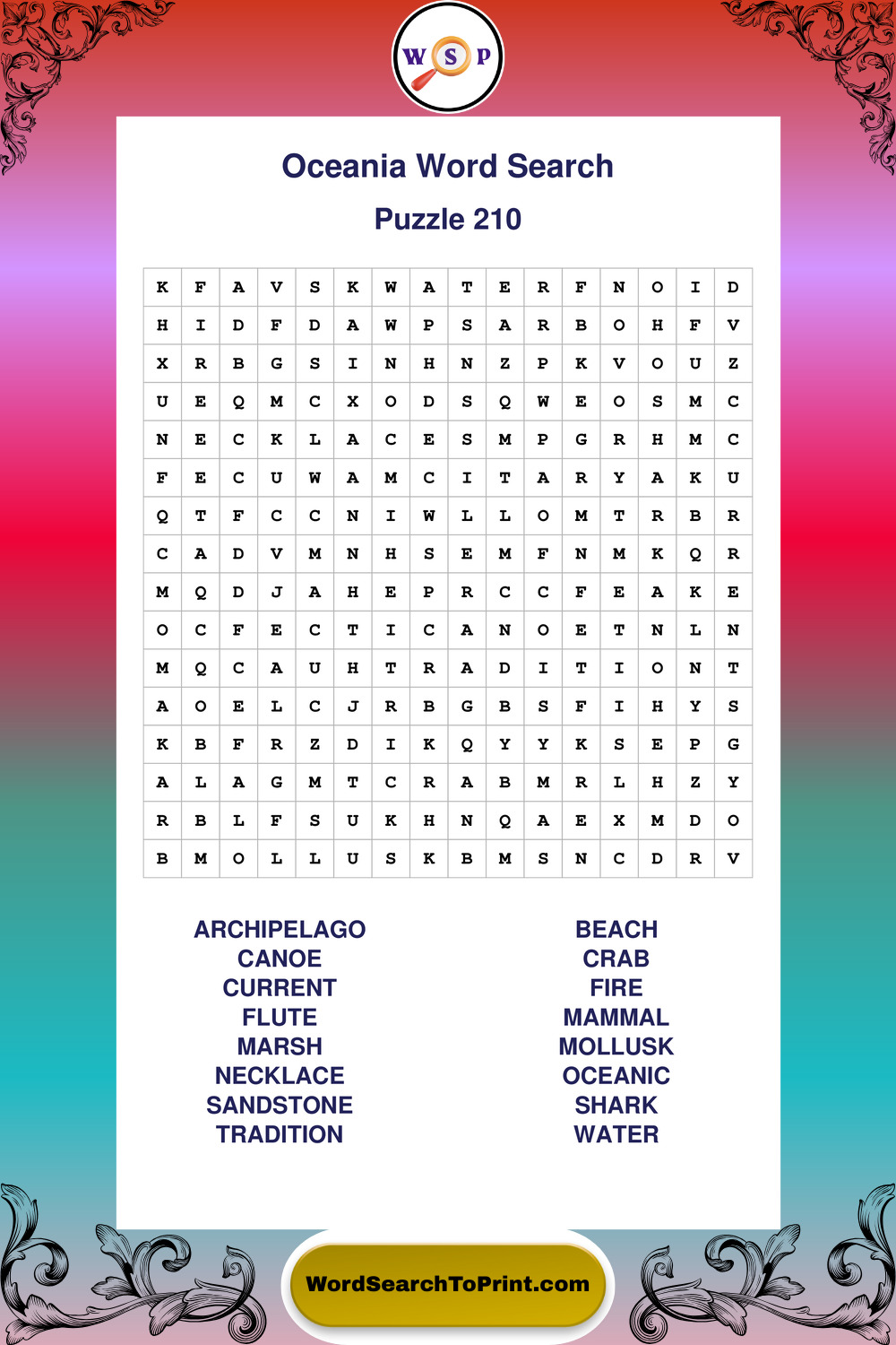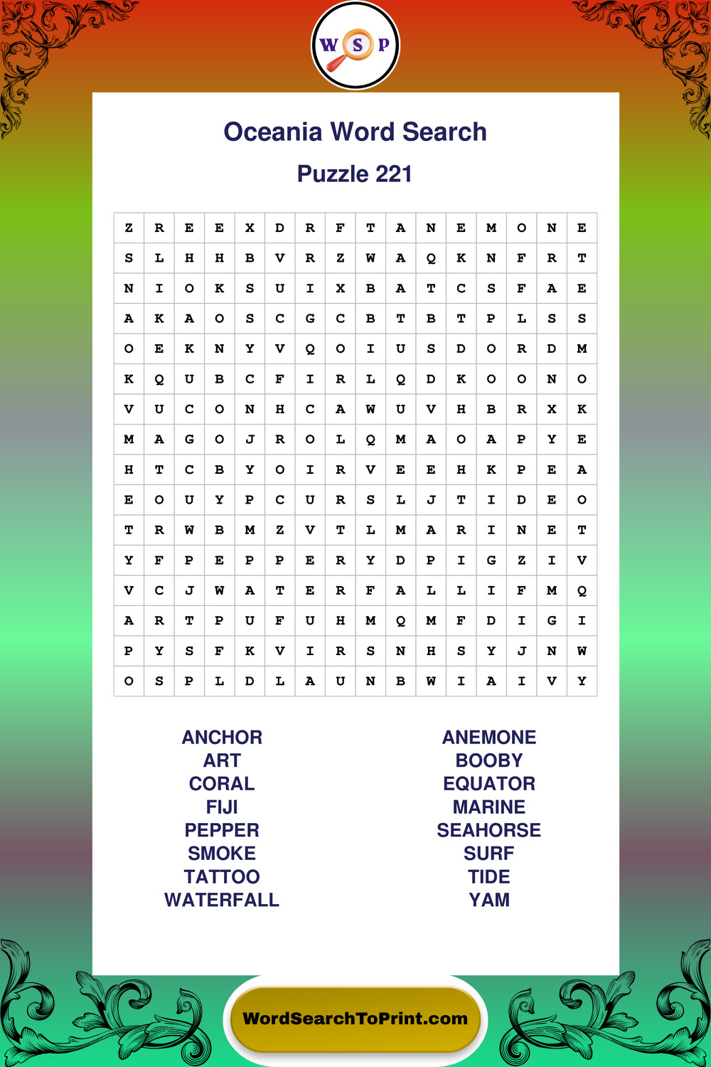 Printable Oceania Wordsearch Puzzles