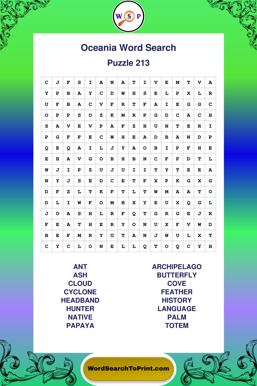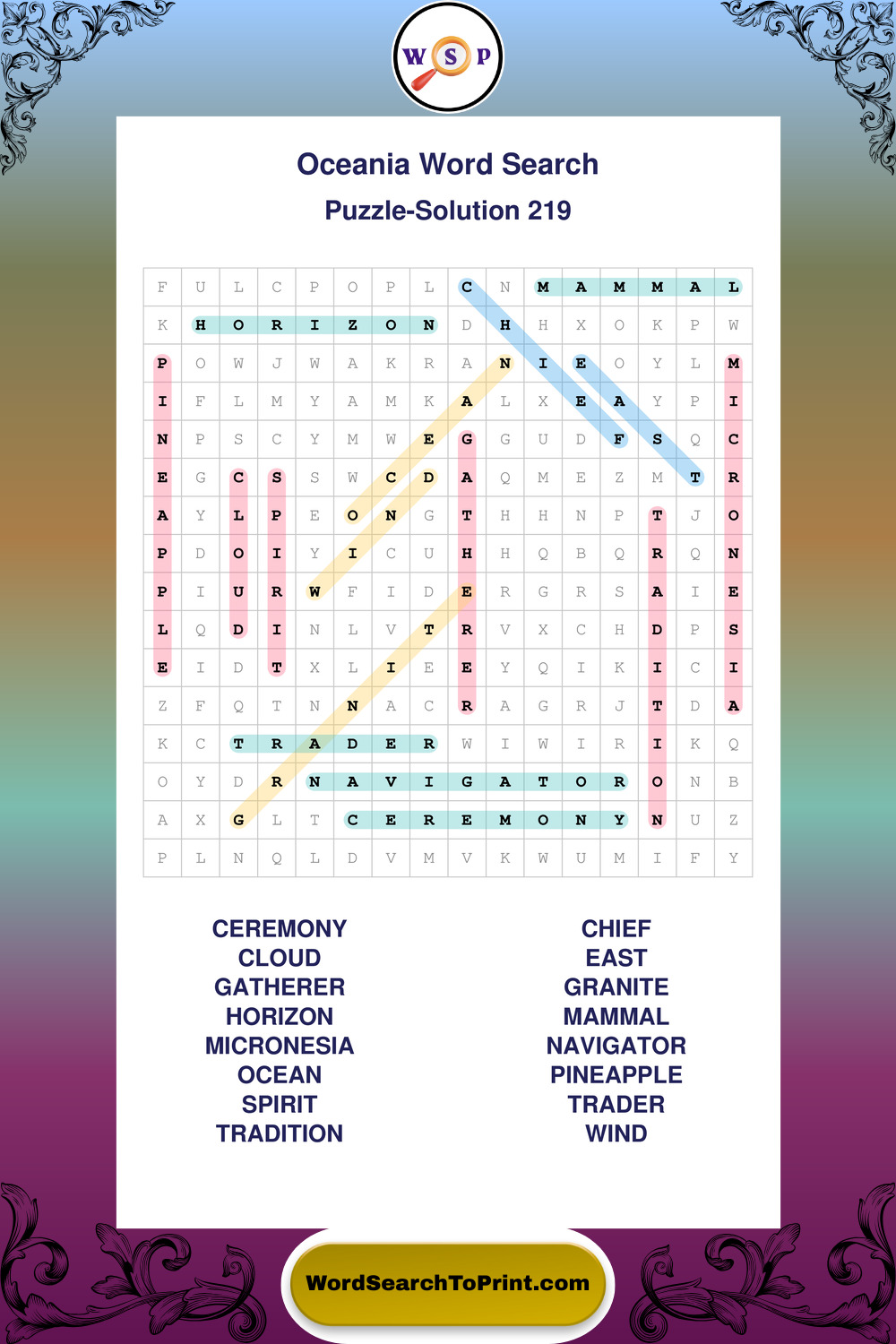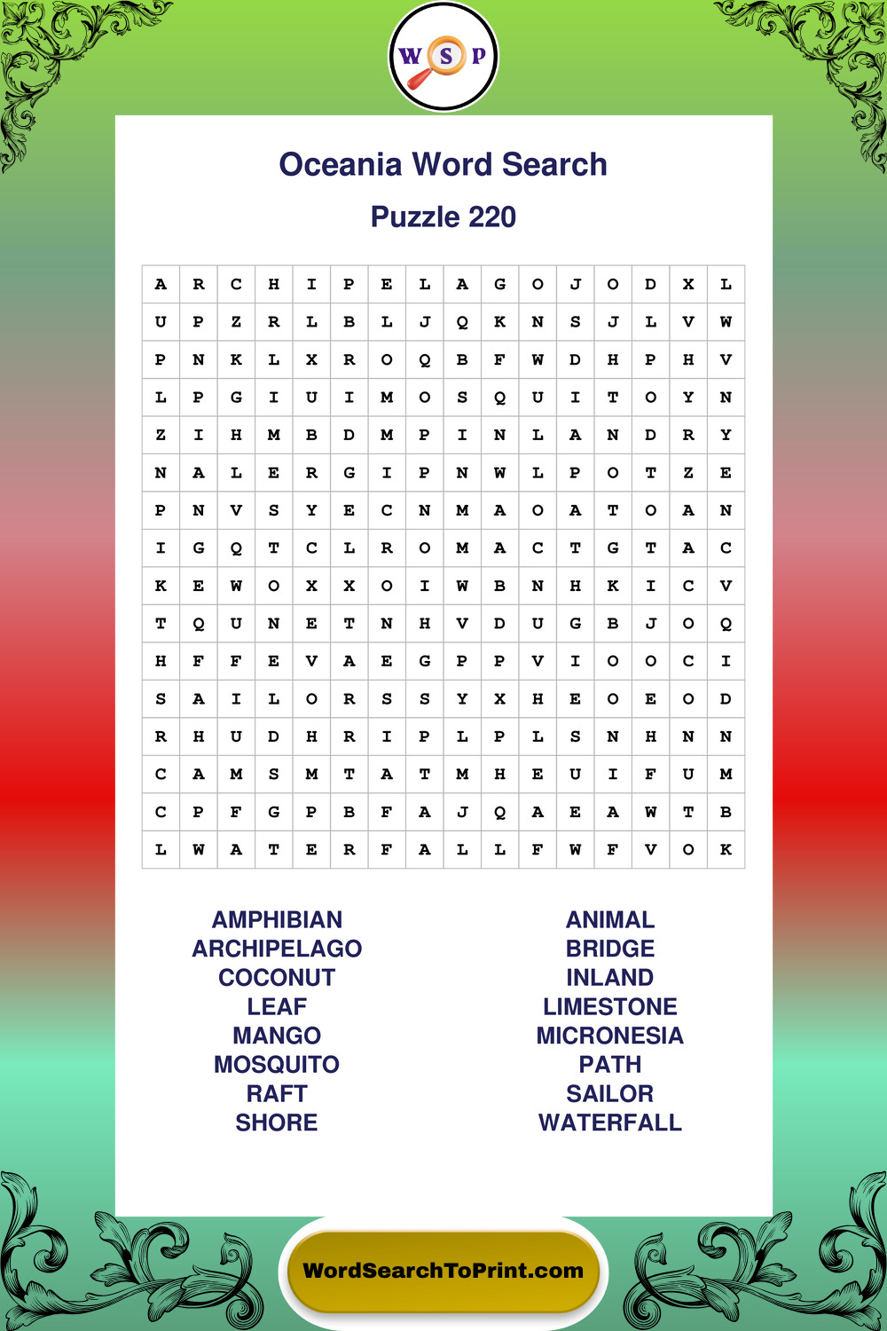 Oceania Wordsearches