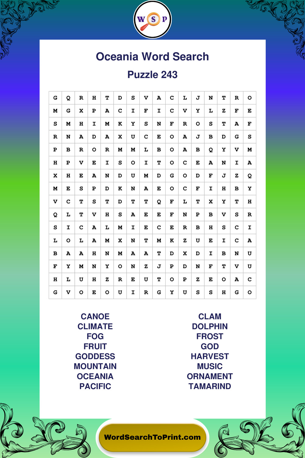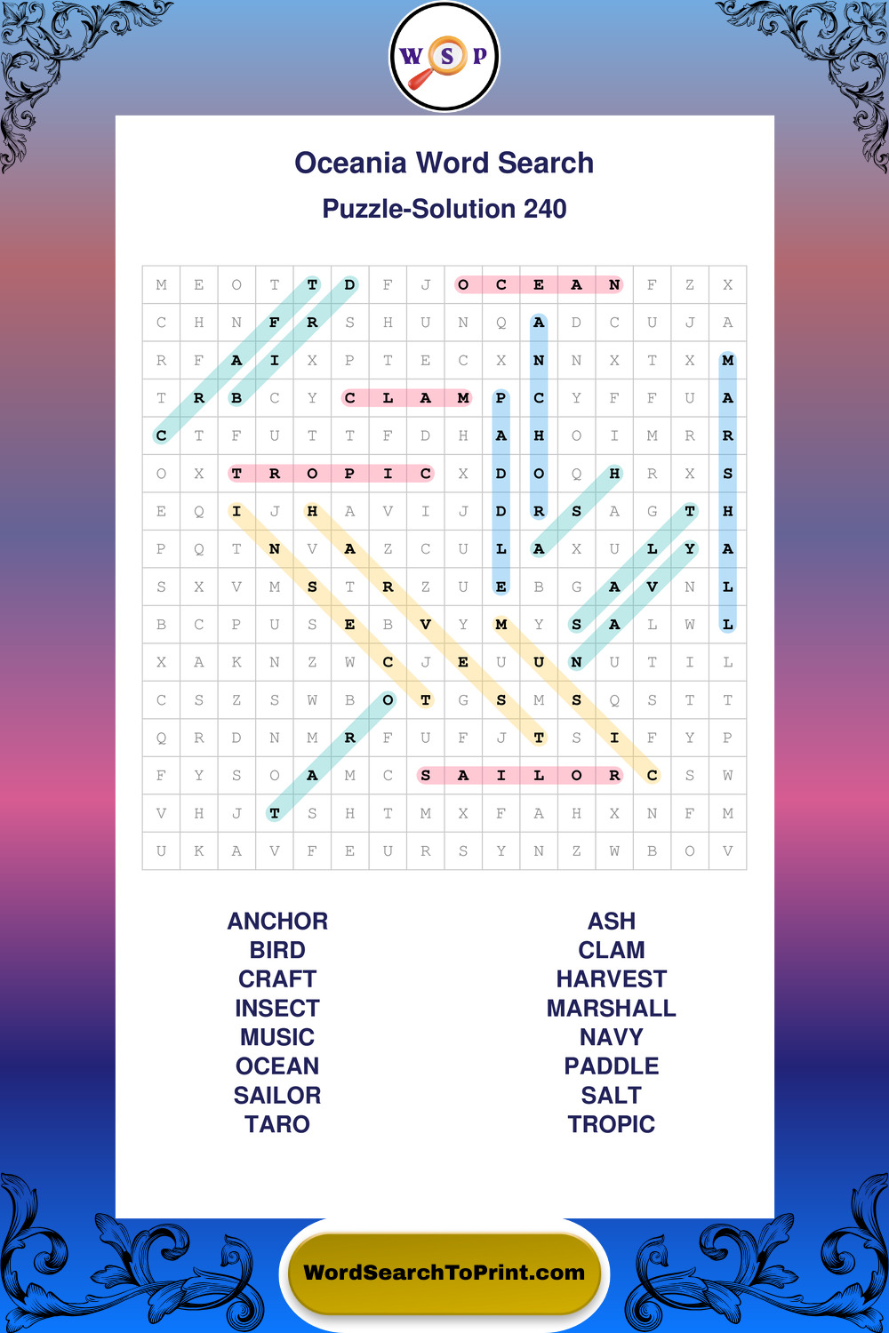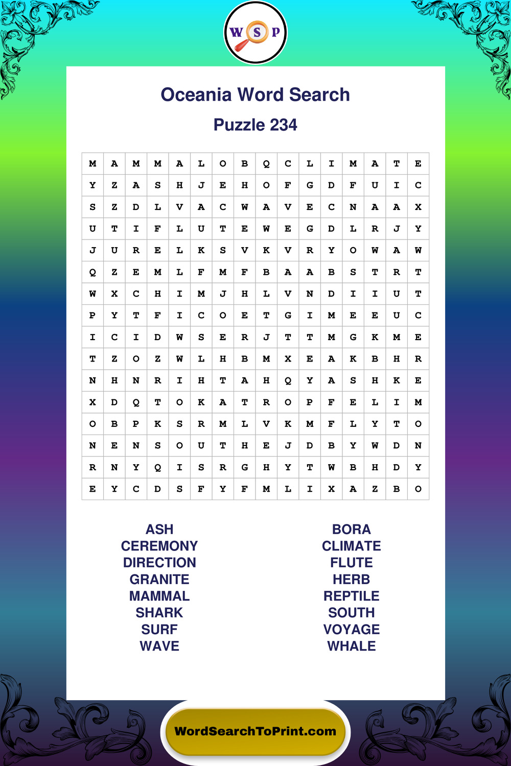 Oceania Wordsearches