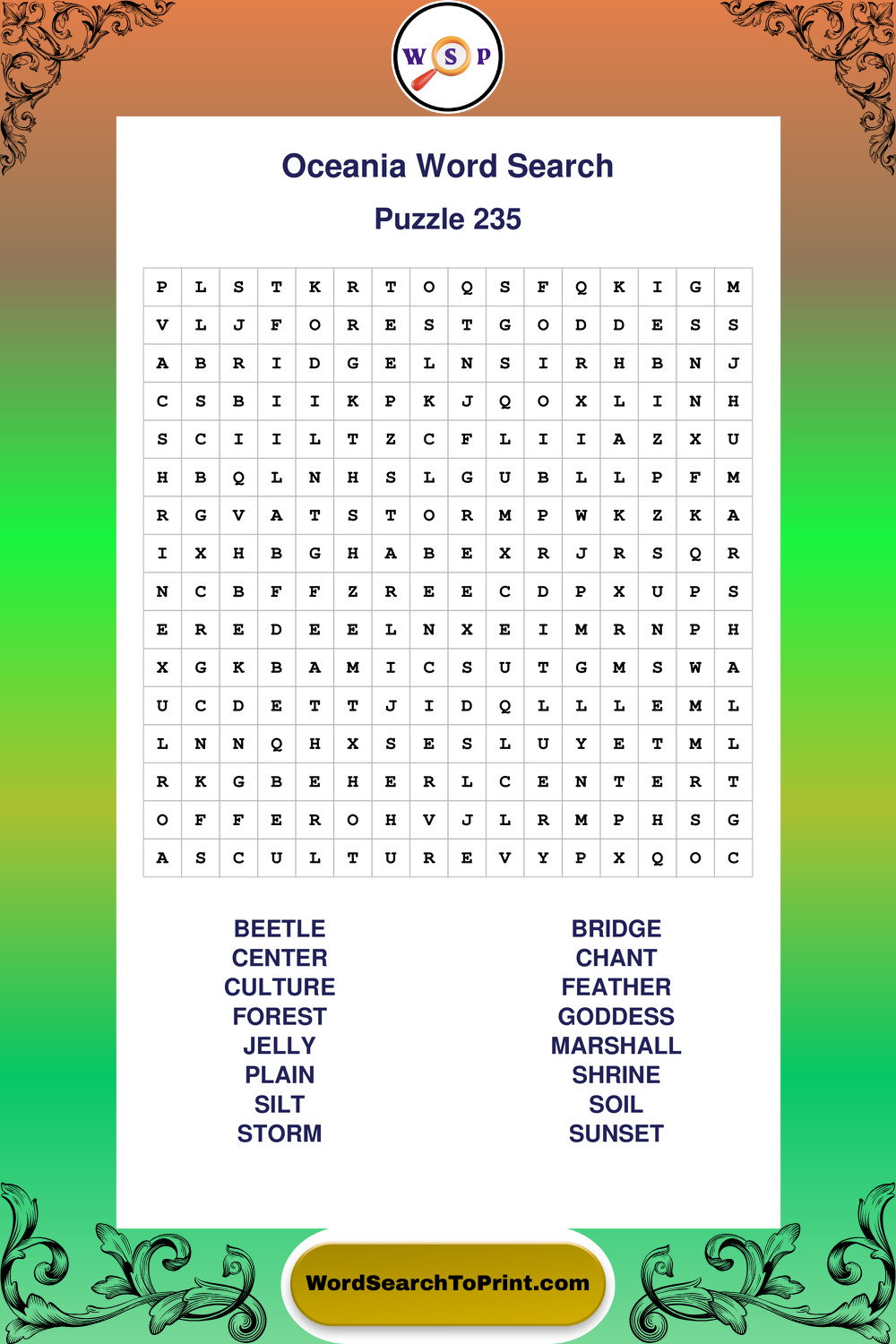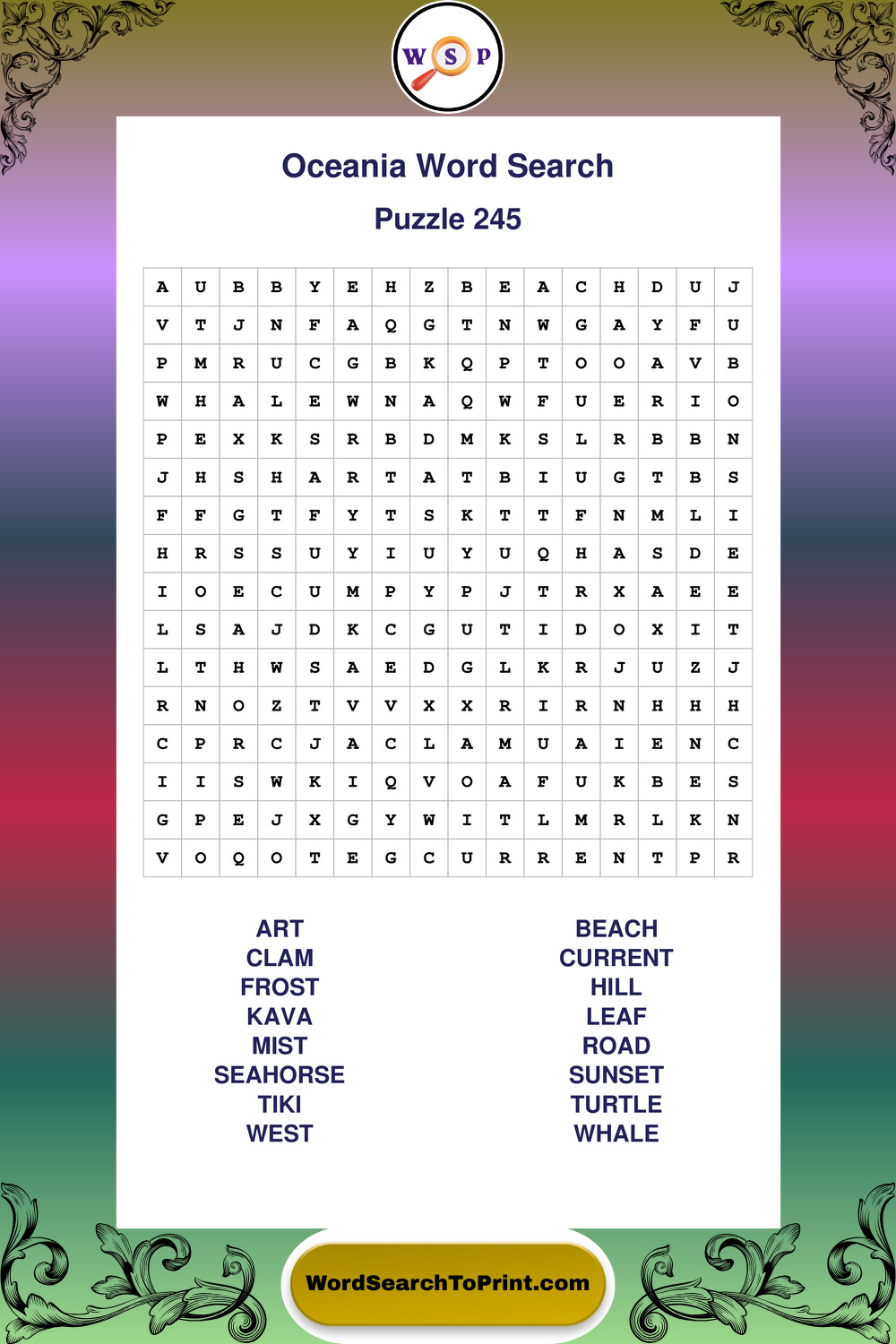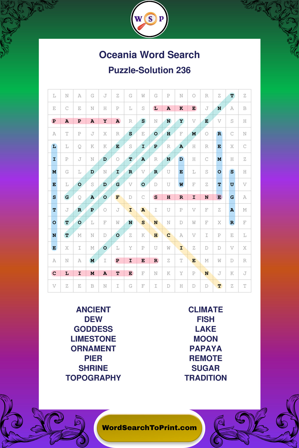 Oceania Wordsearches