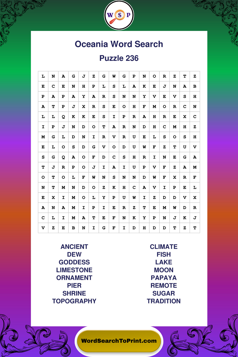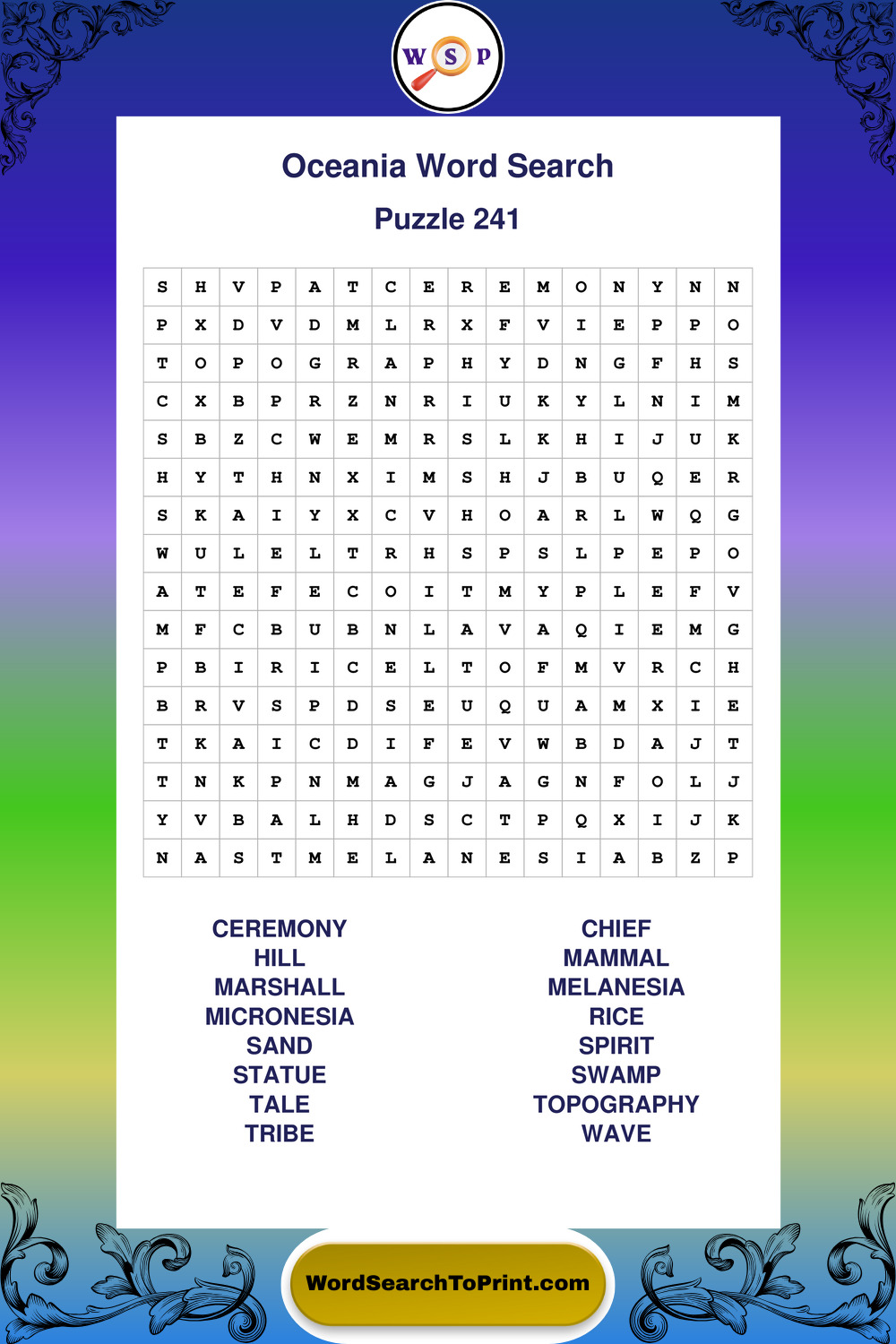 Printable Oceania Wordsearch Puzzles