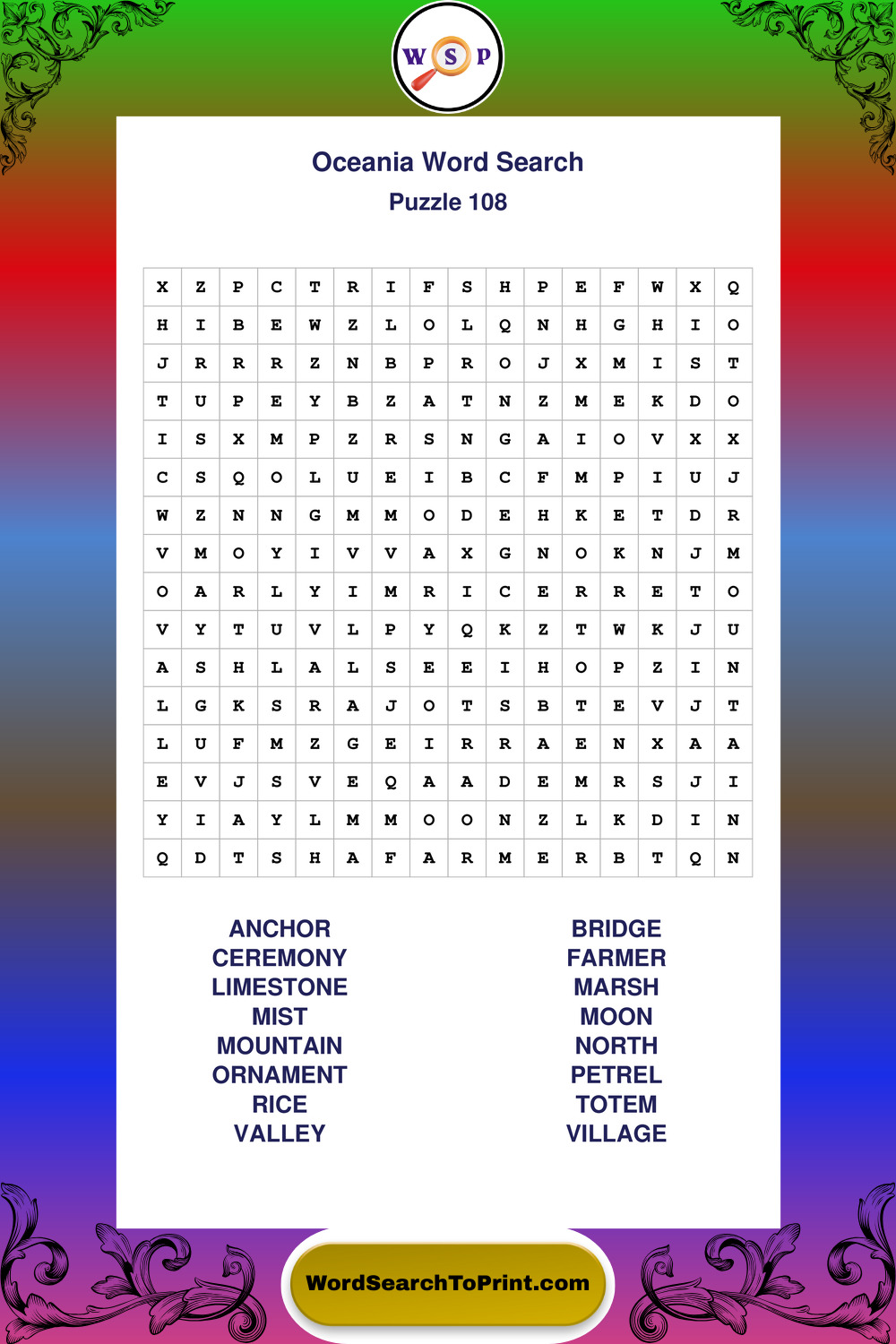 Oceania Wordsearches