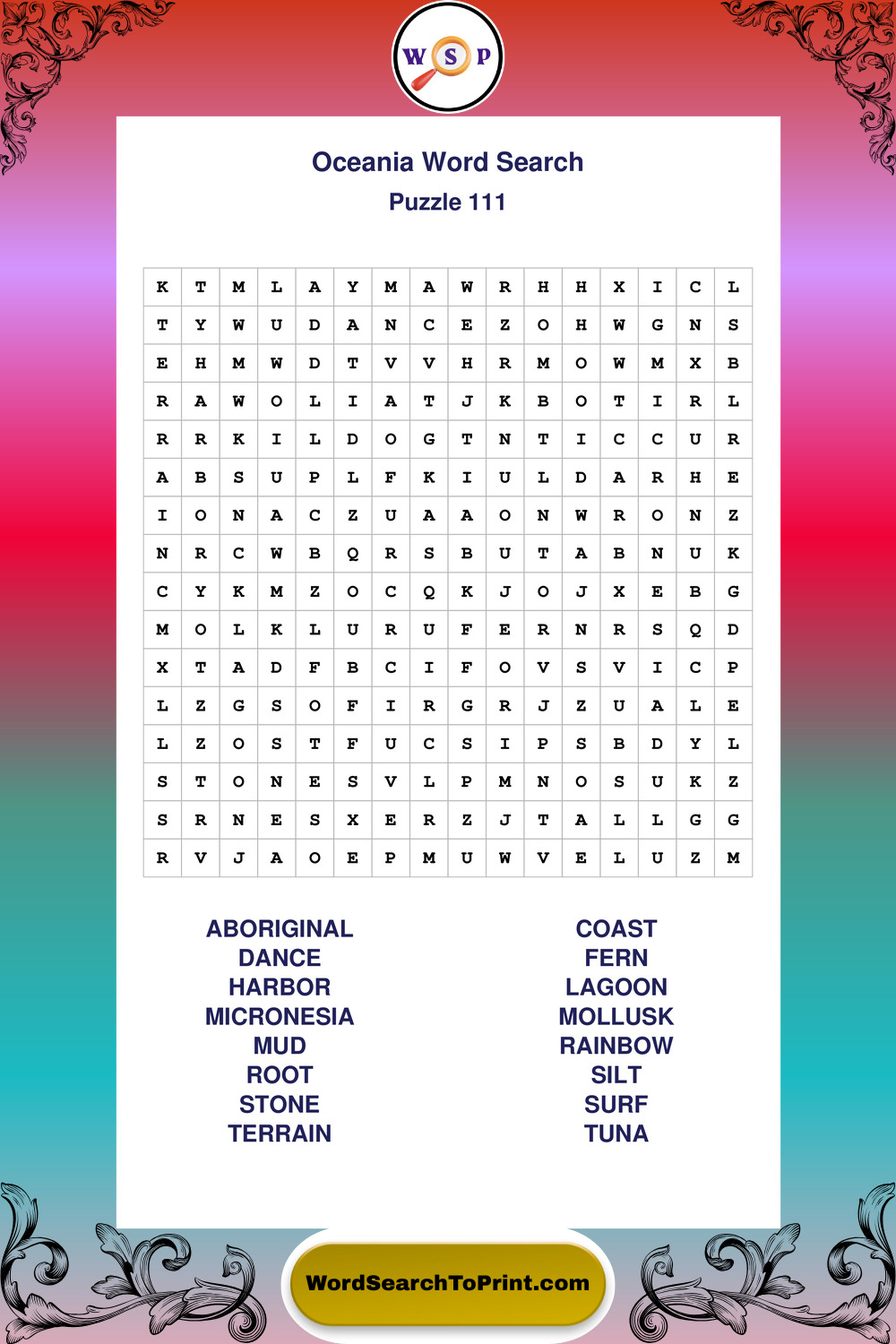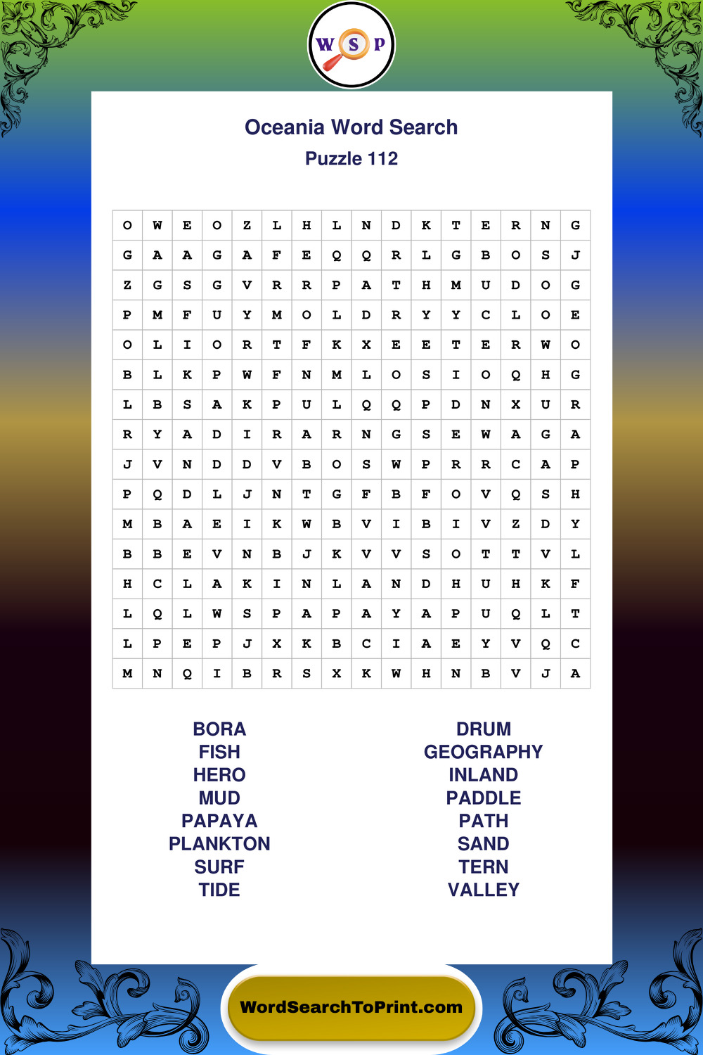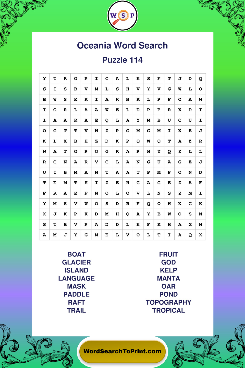 Printable Oceania Wordsearch Puzzles
