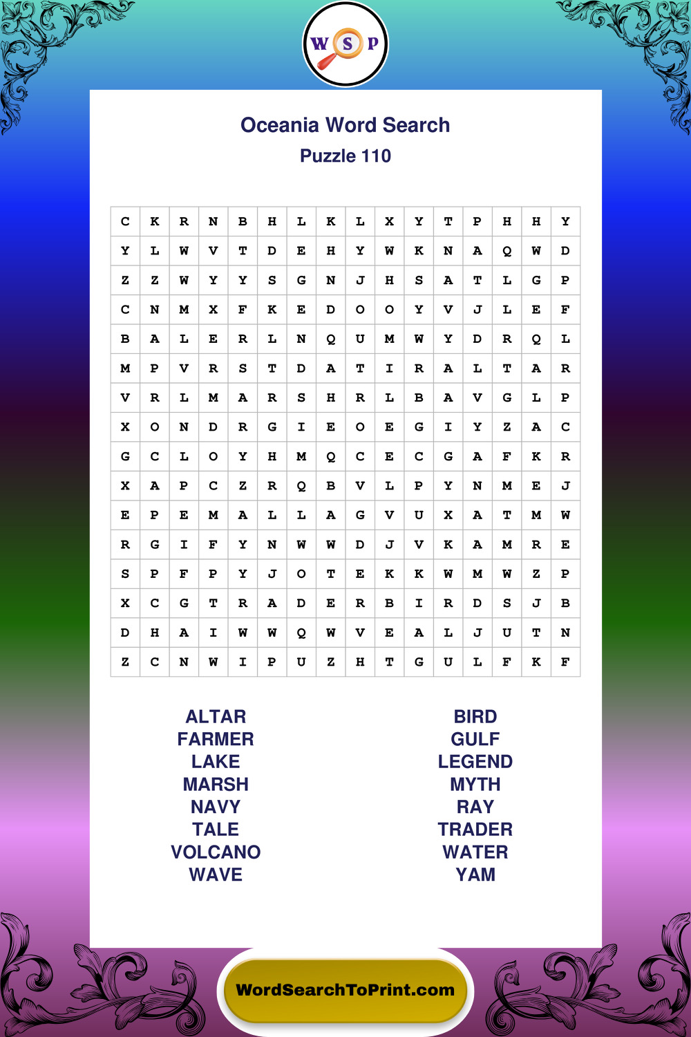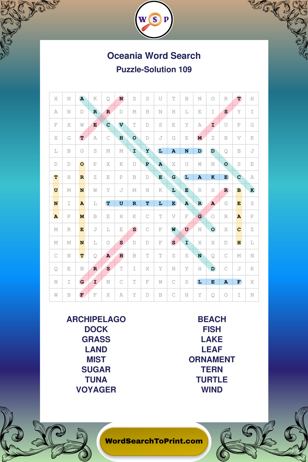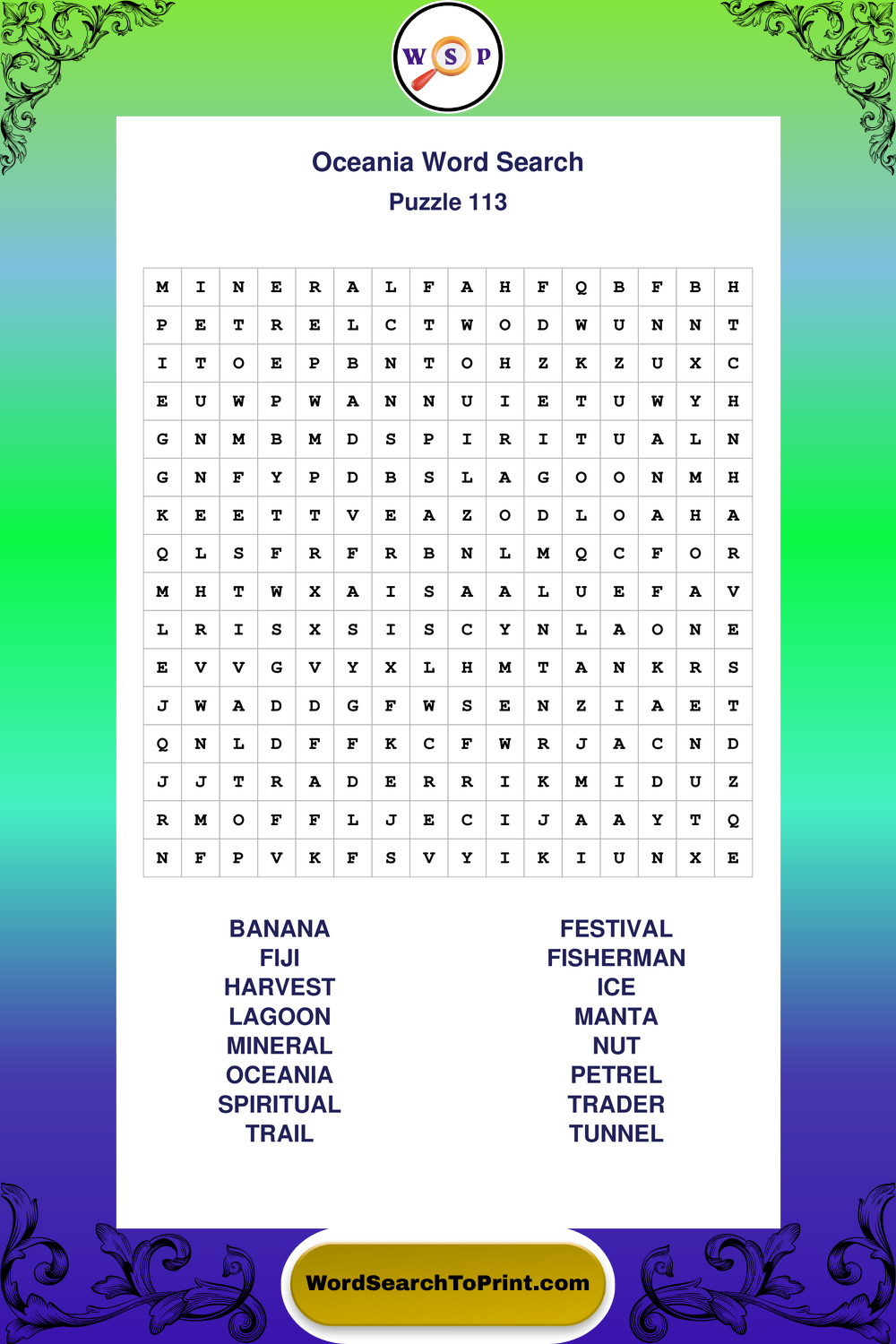 Printable Oceania Wordsearch Puzzles