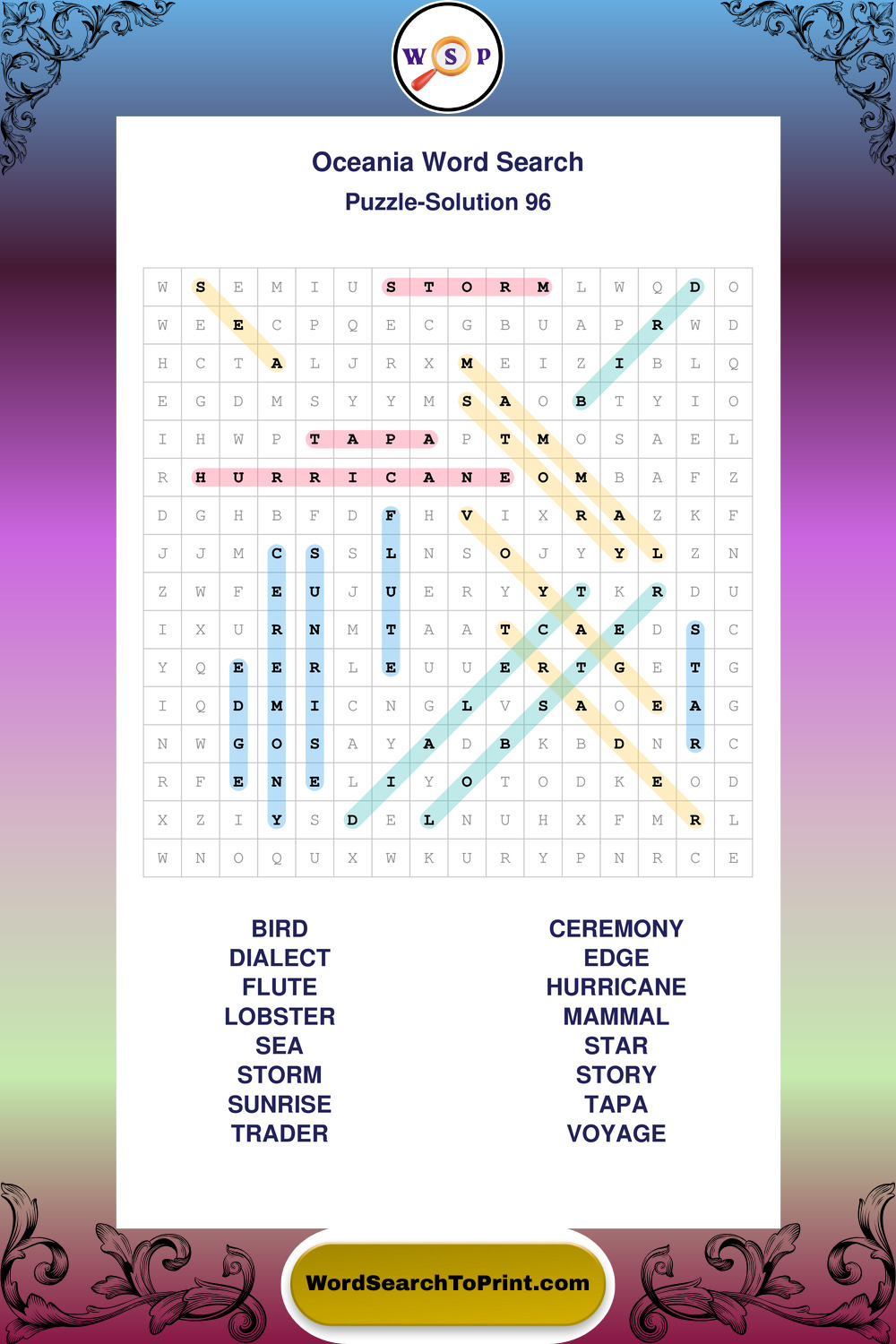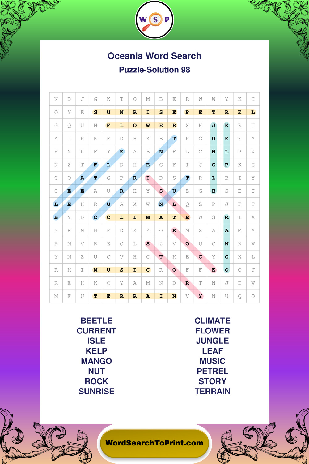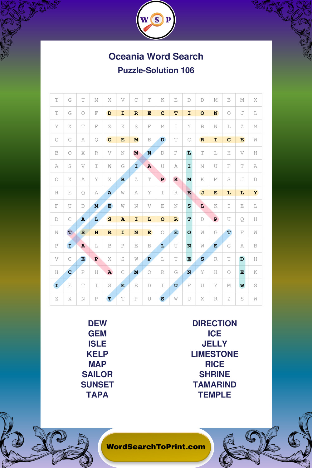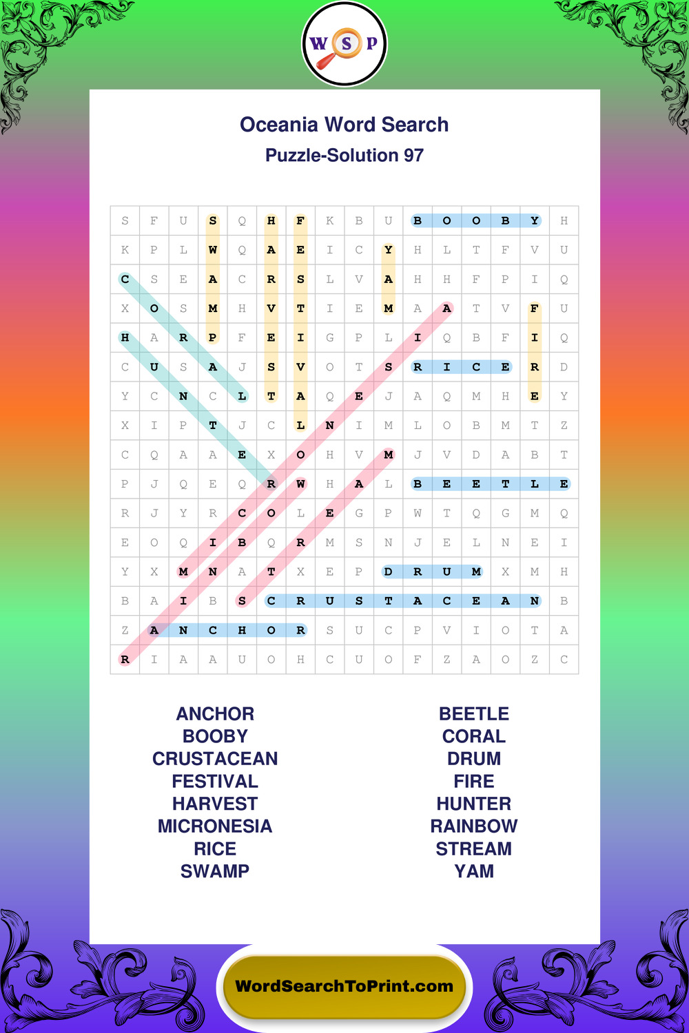 Enjoy these free large print Oceania wordsearches designed for easy reading and relaxed puzzle solving. Perfect for teens, adults, and seniors.