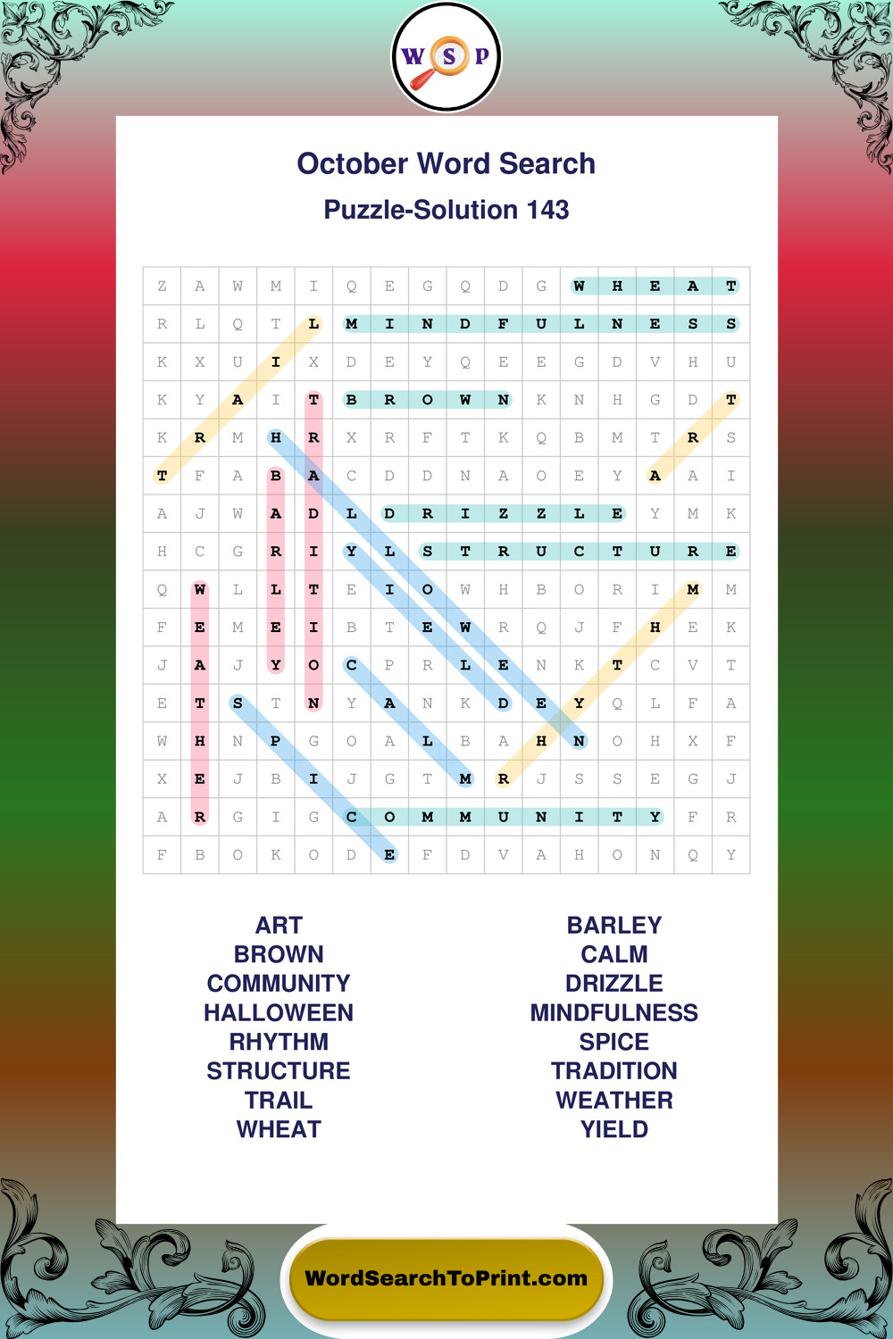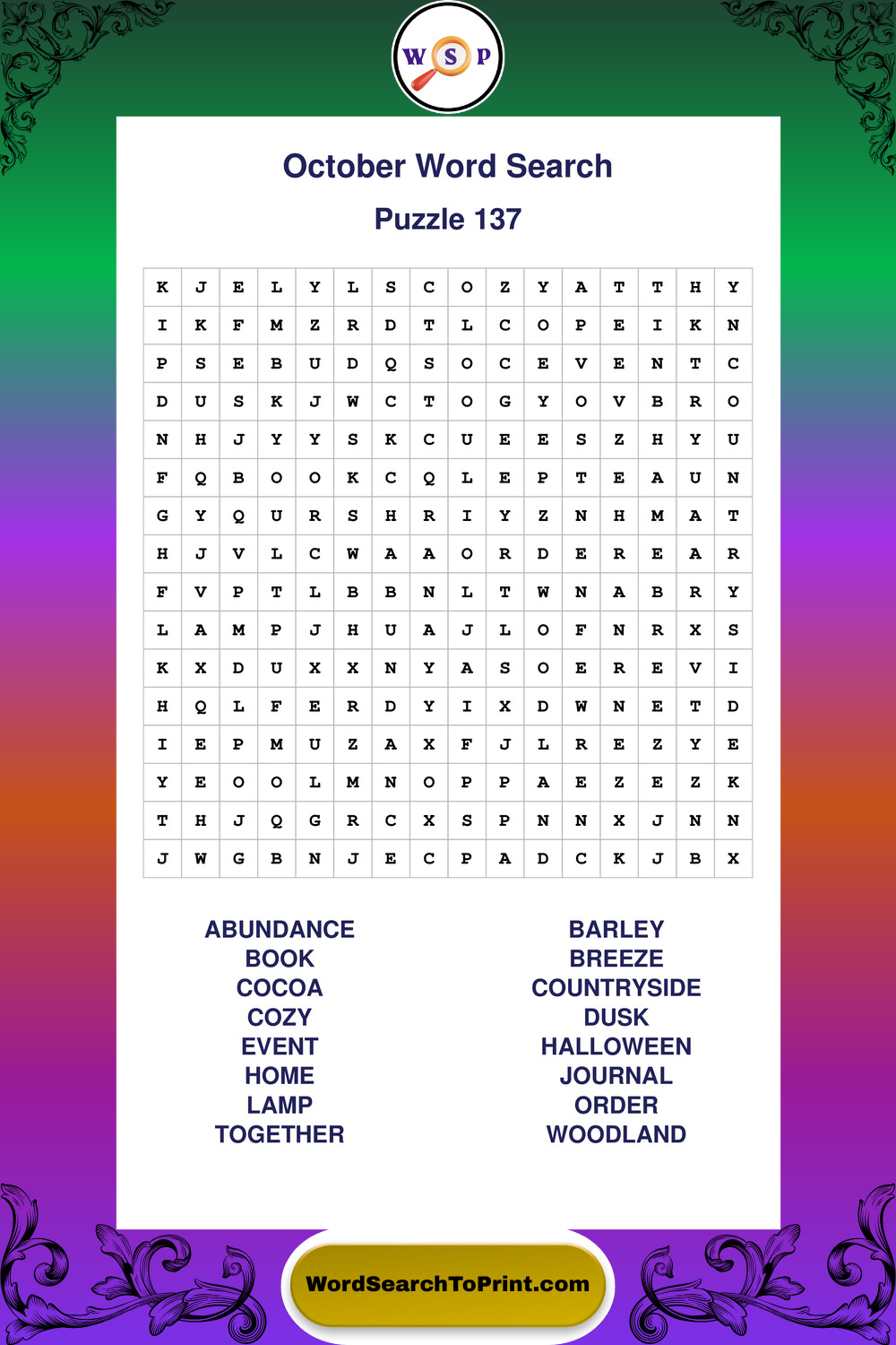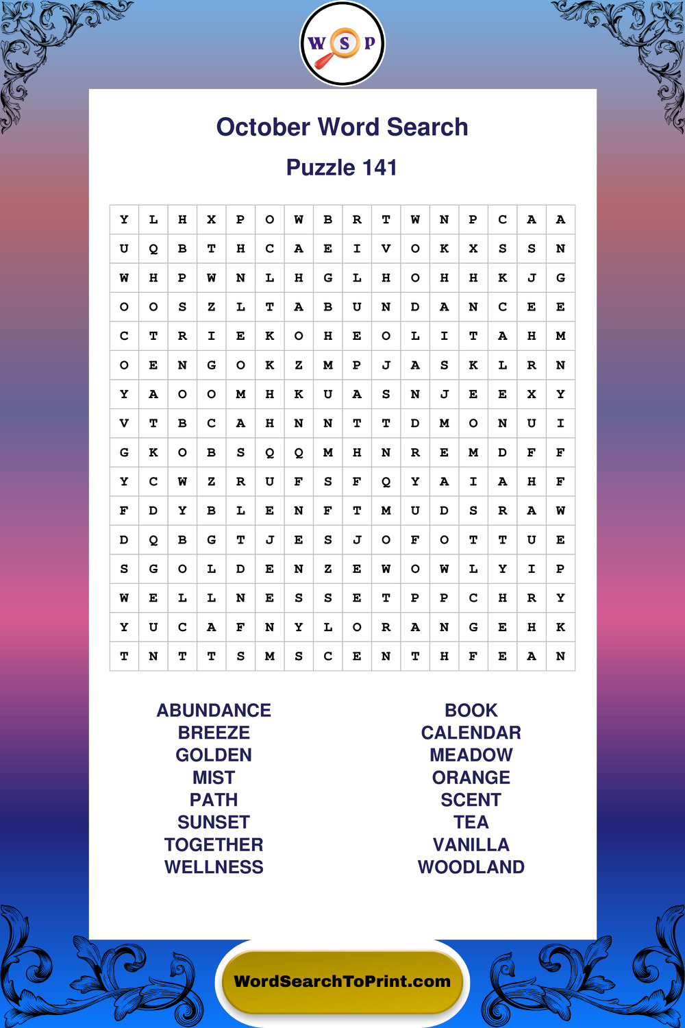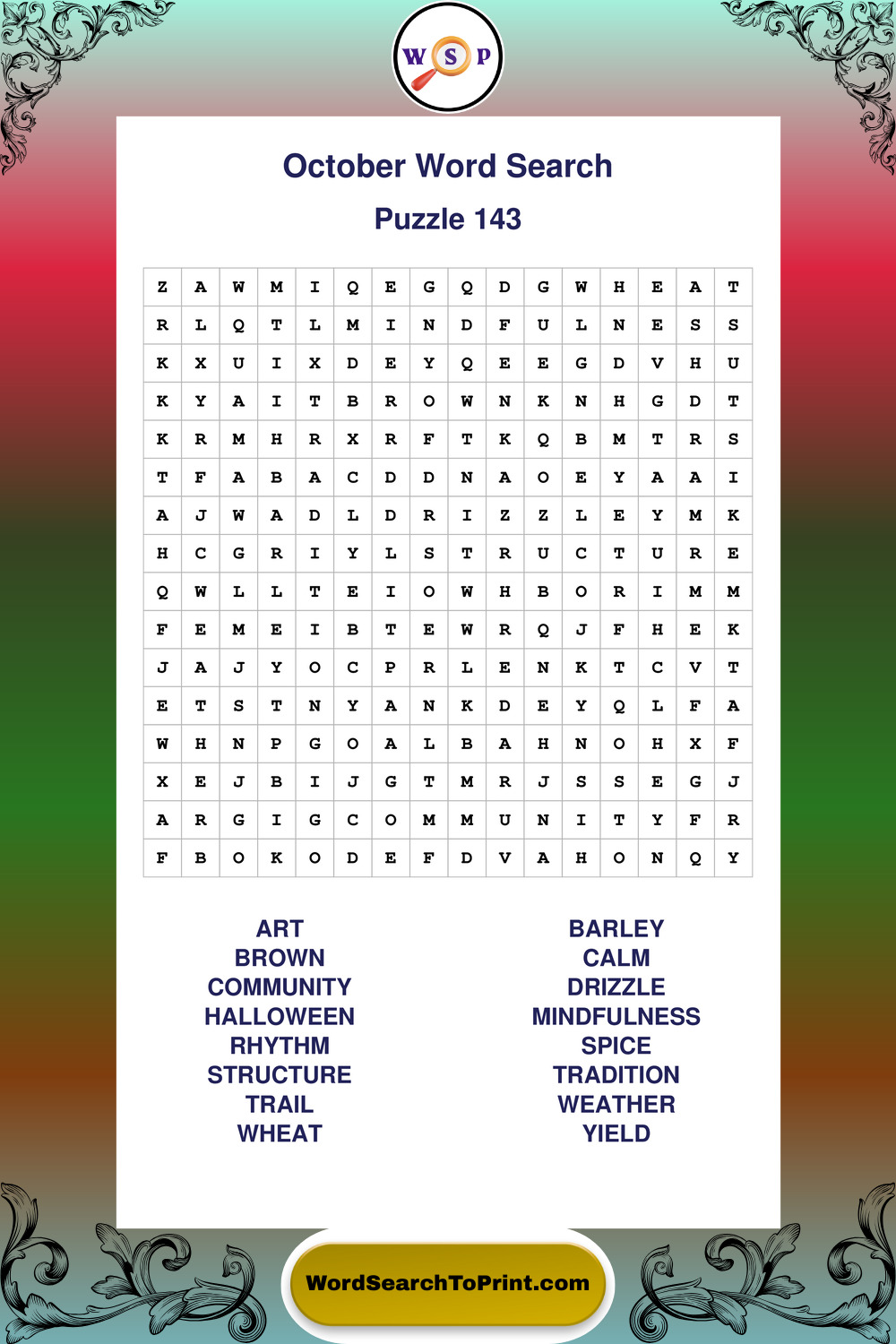 October Wordsearches