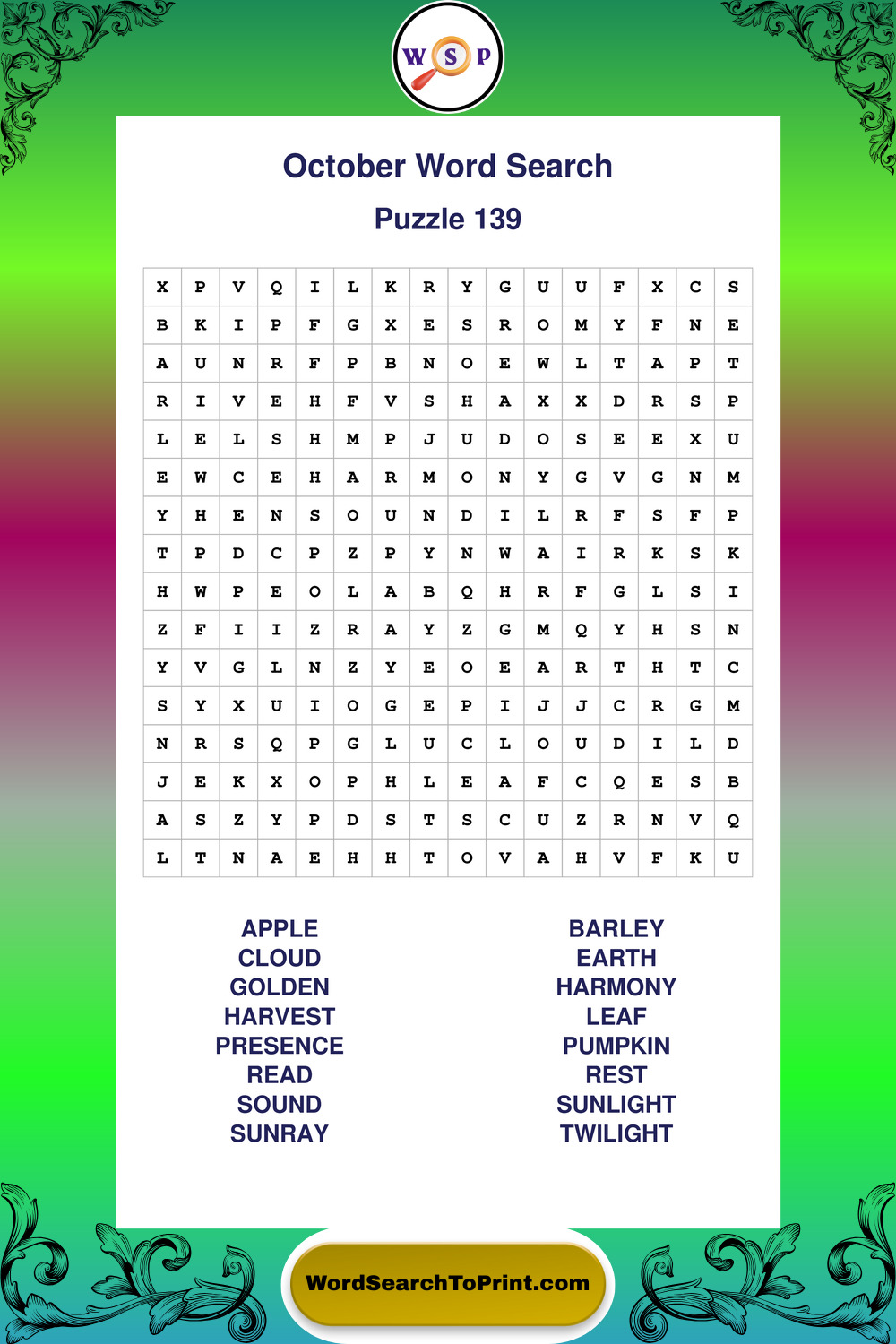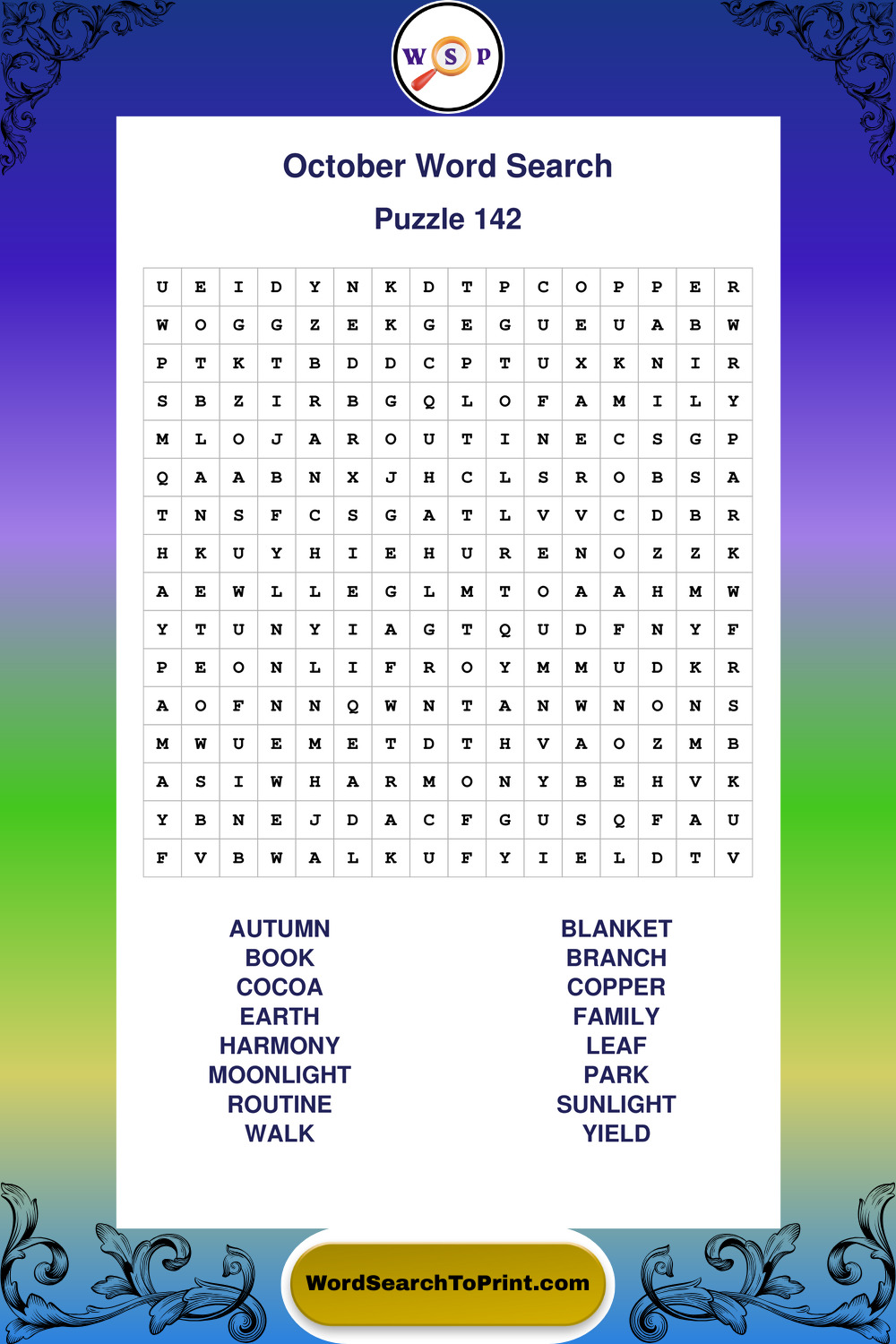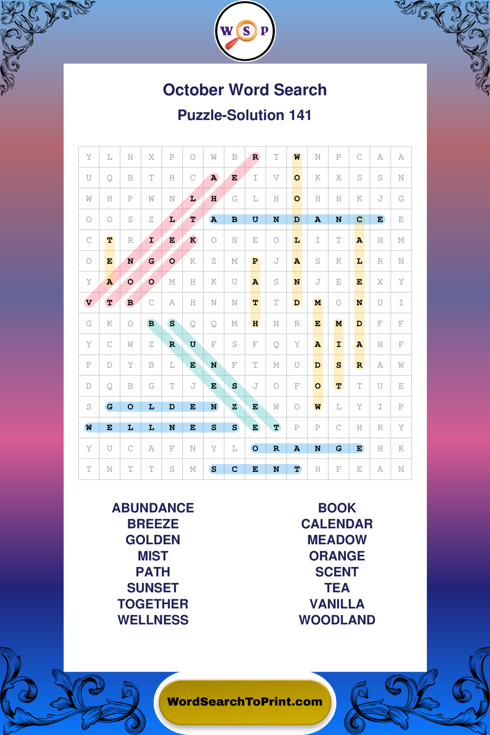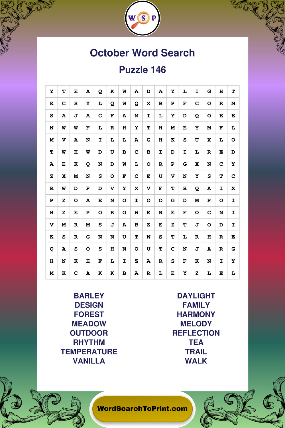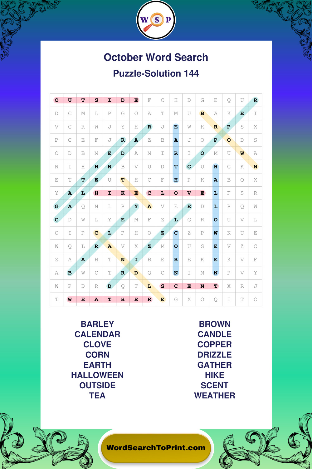 October Wordsearches