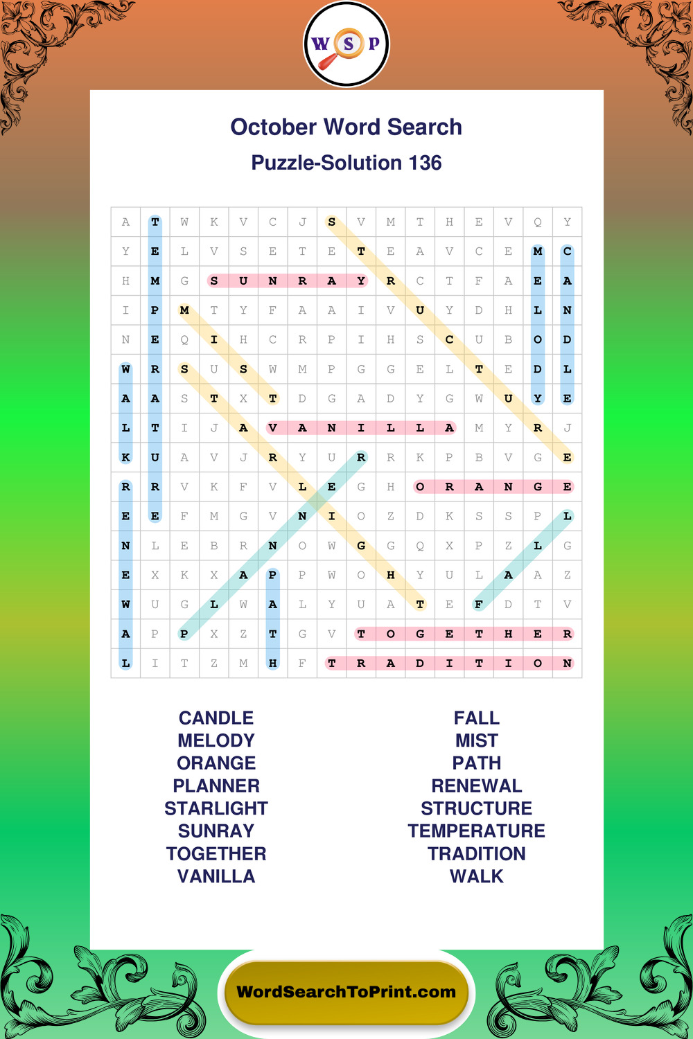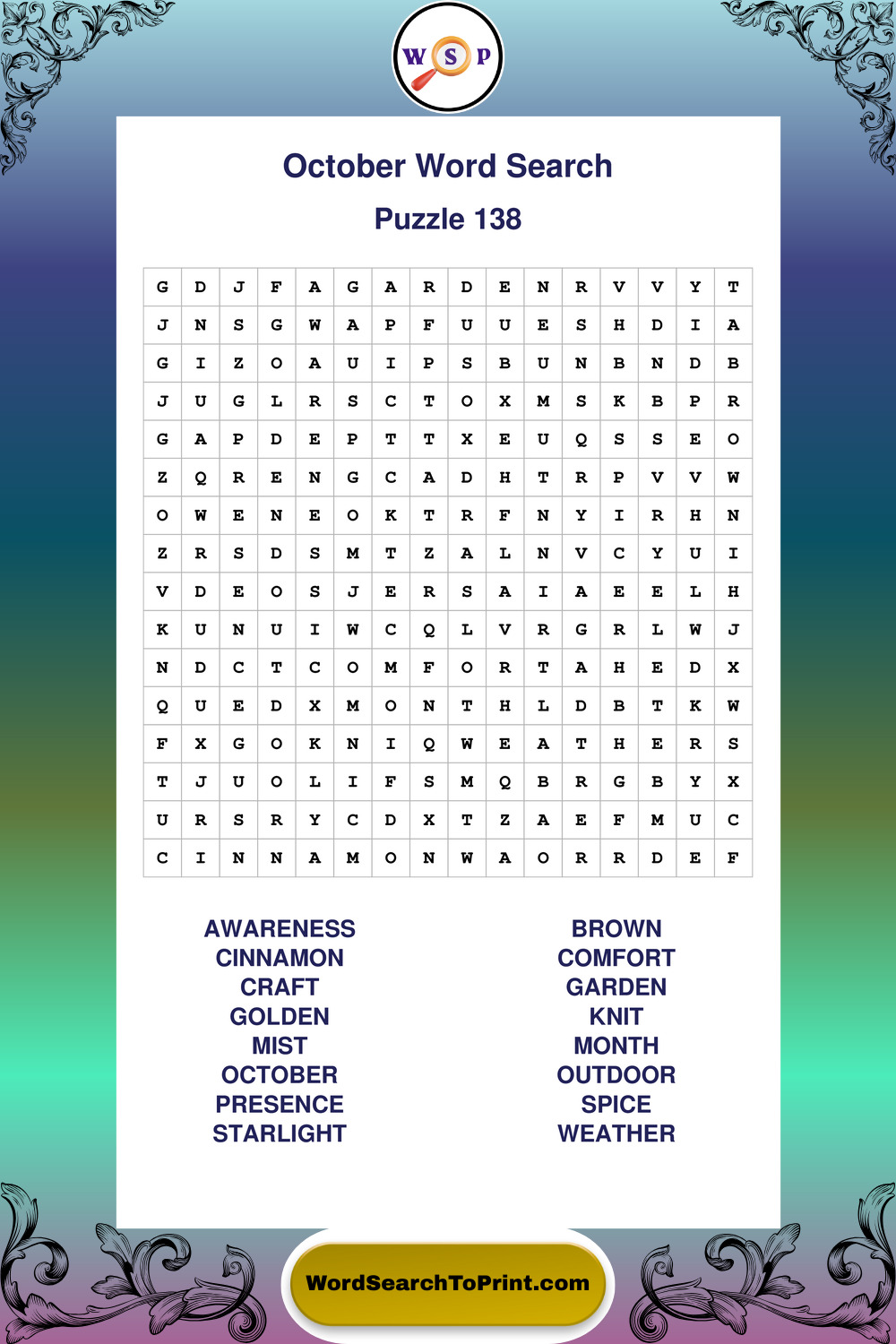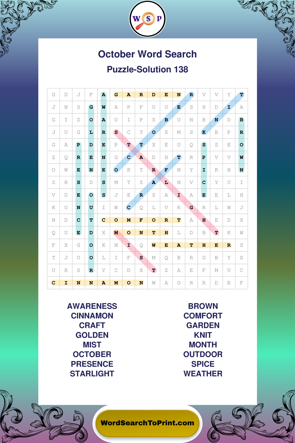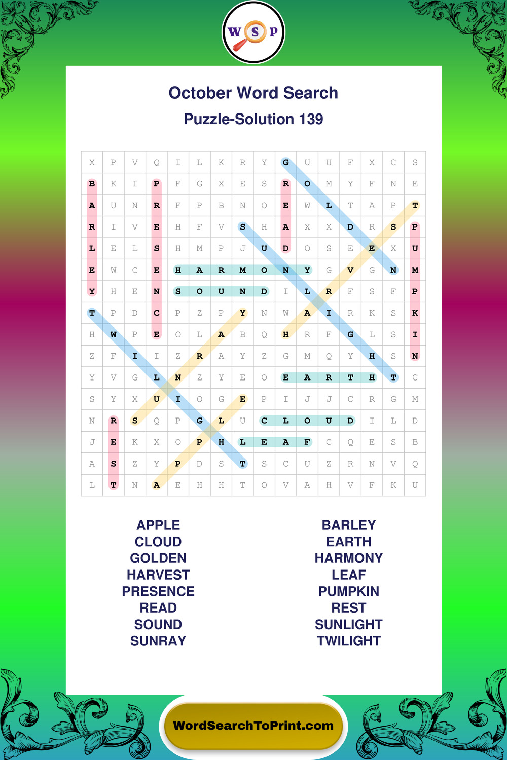 October Wordsearches