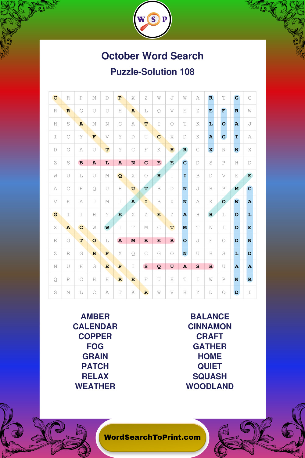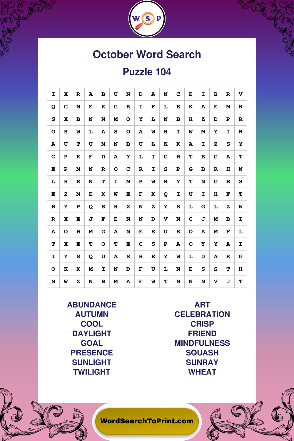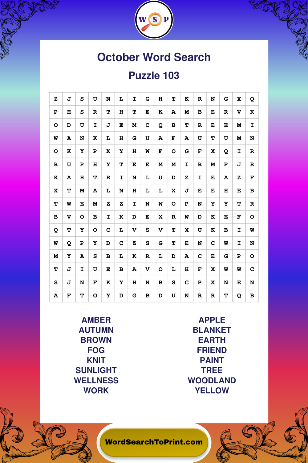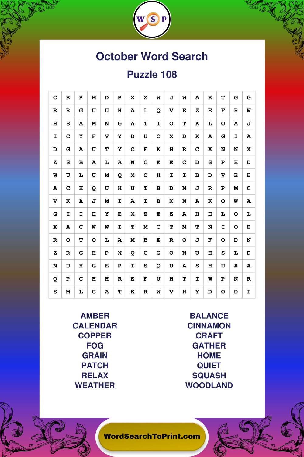 October Wordsearches