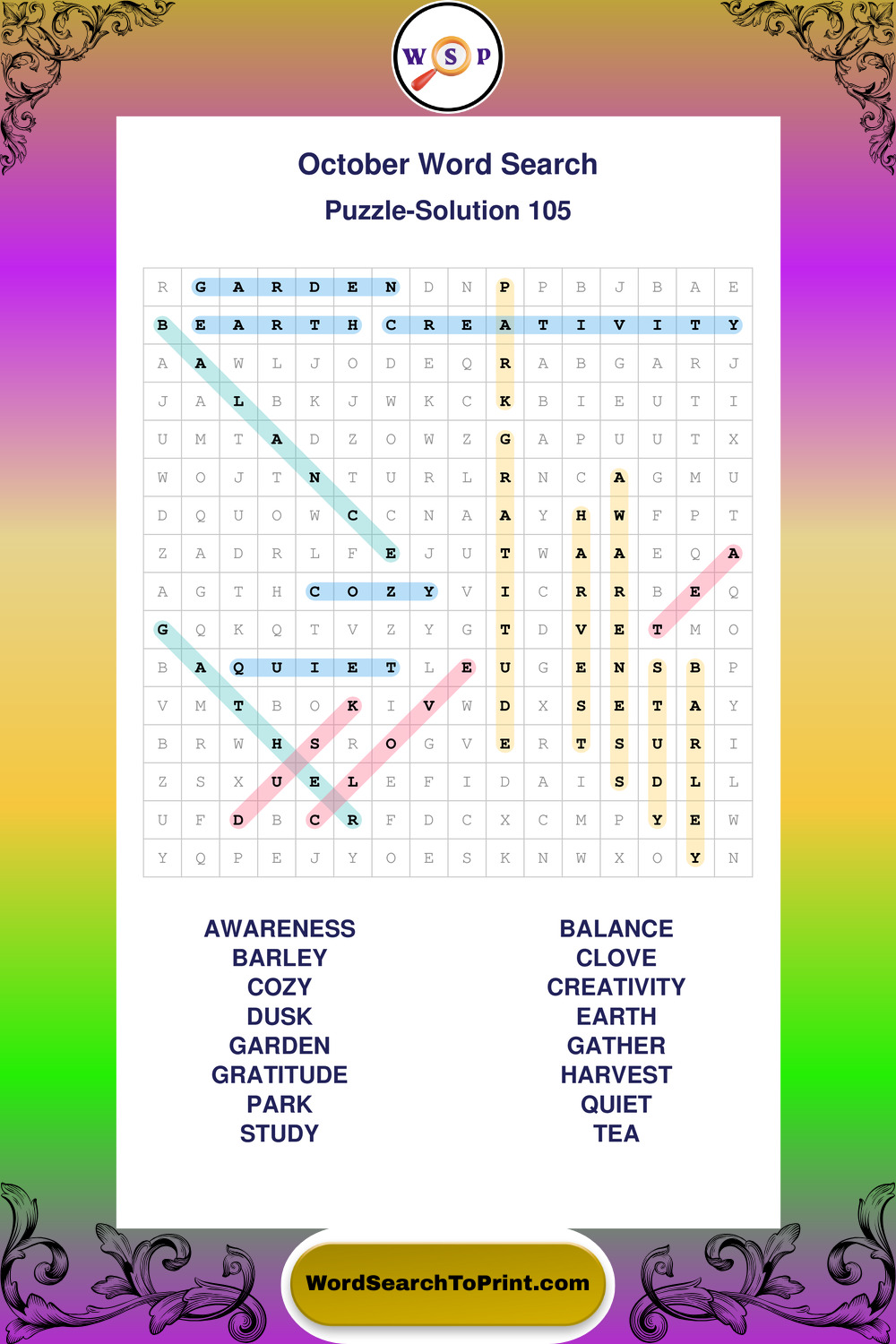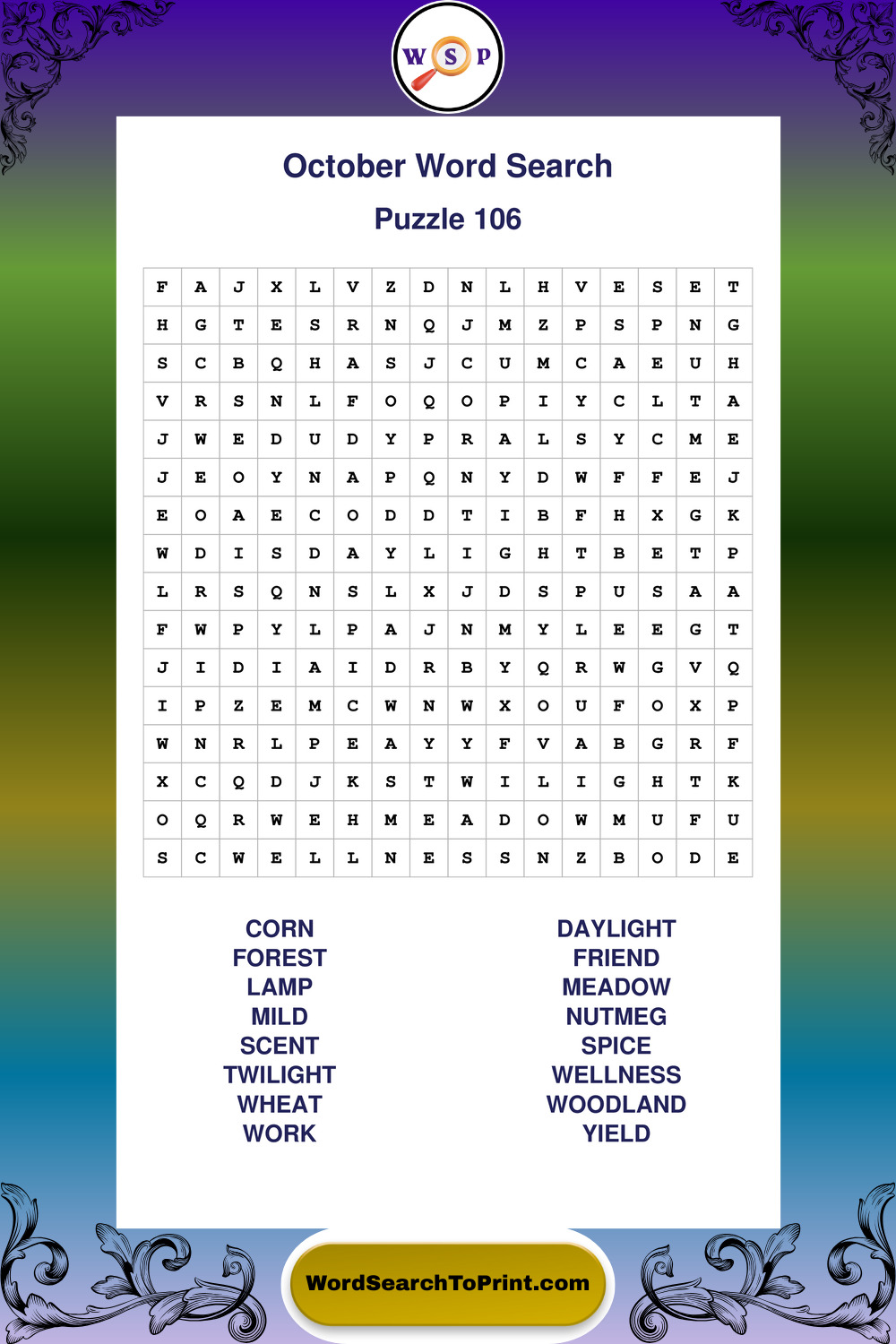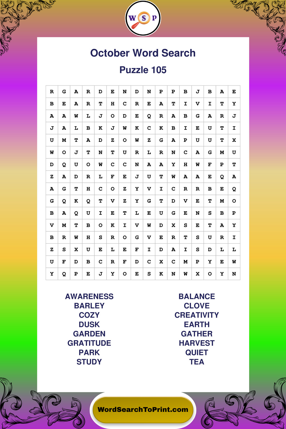 October Wordsearches