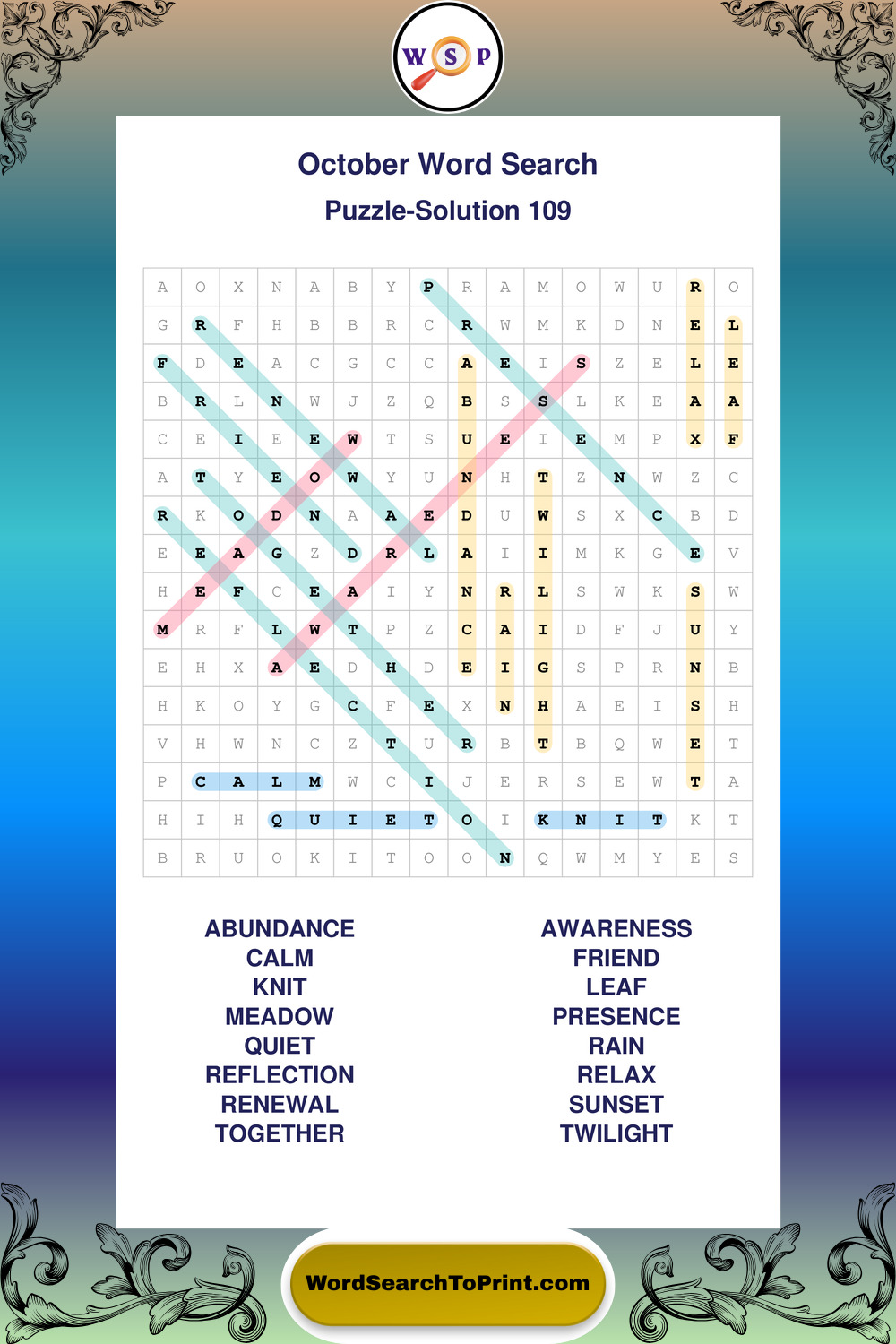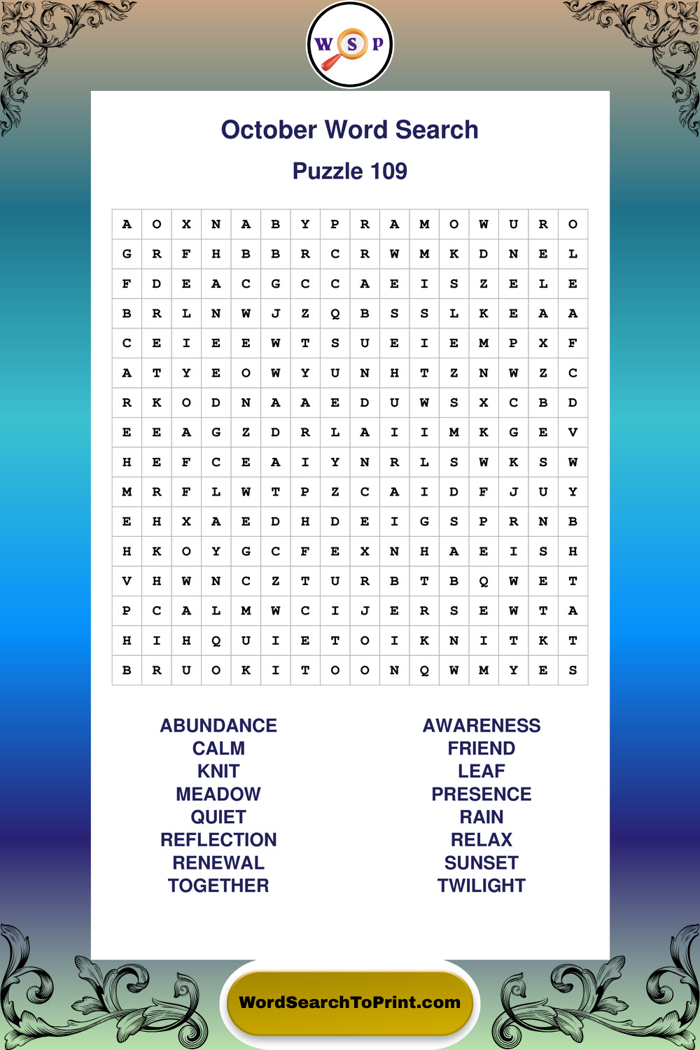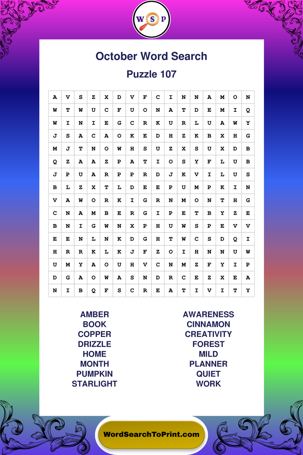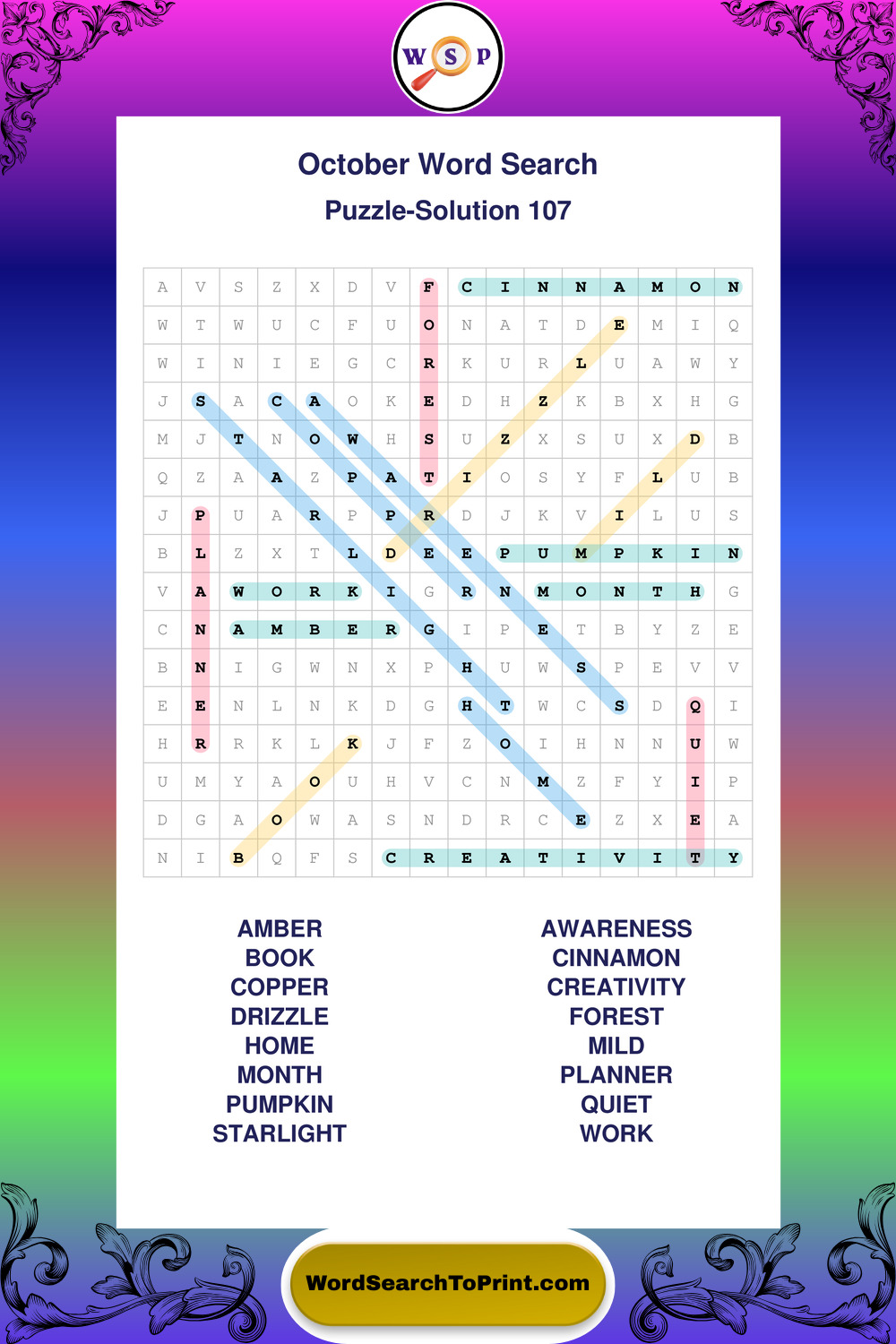 October Wordsearches