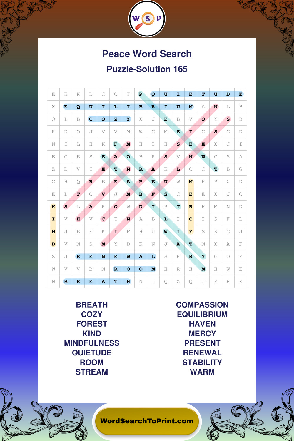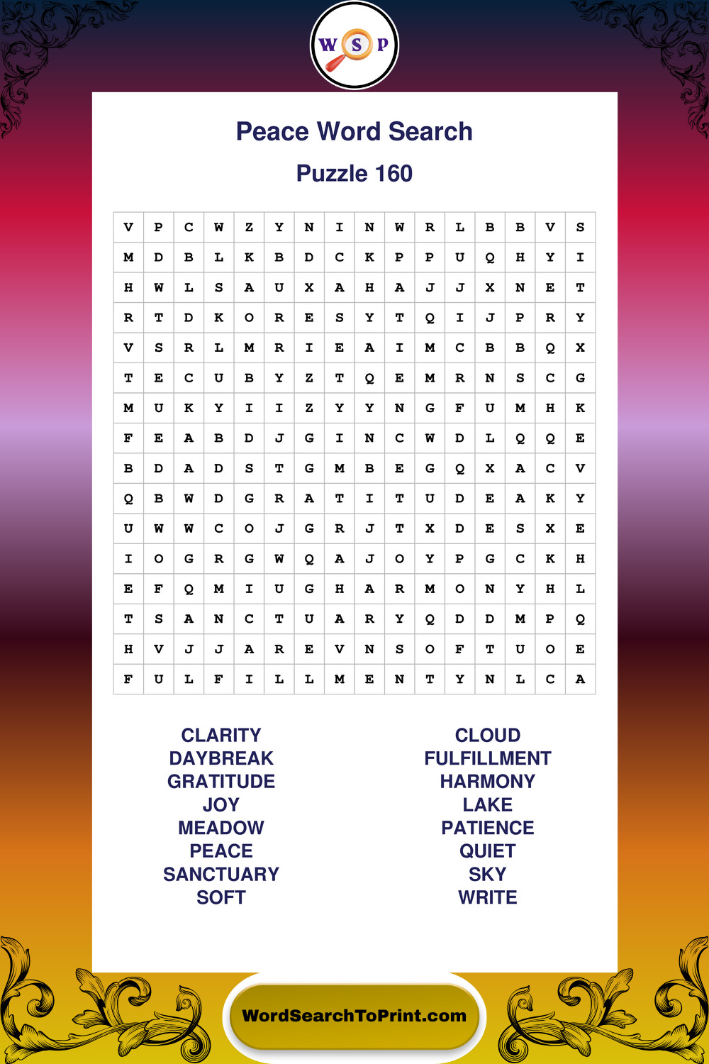 Enjoy a full set of large print Peace wordsearches perfect for quiet moments, daily routines, or casual brain exercise.