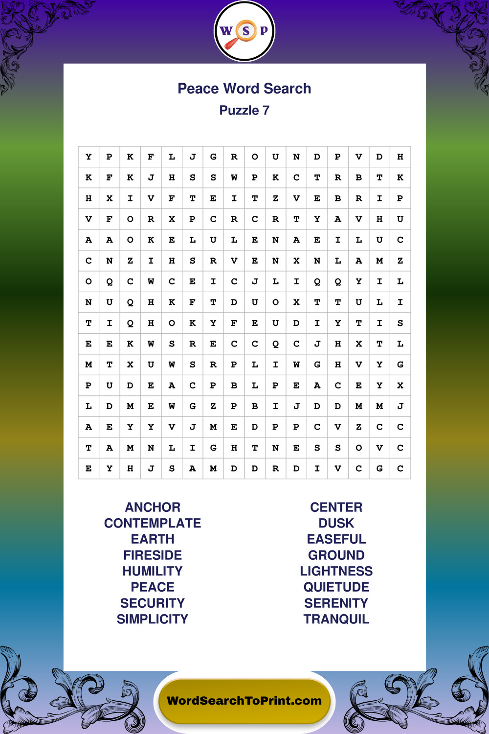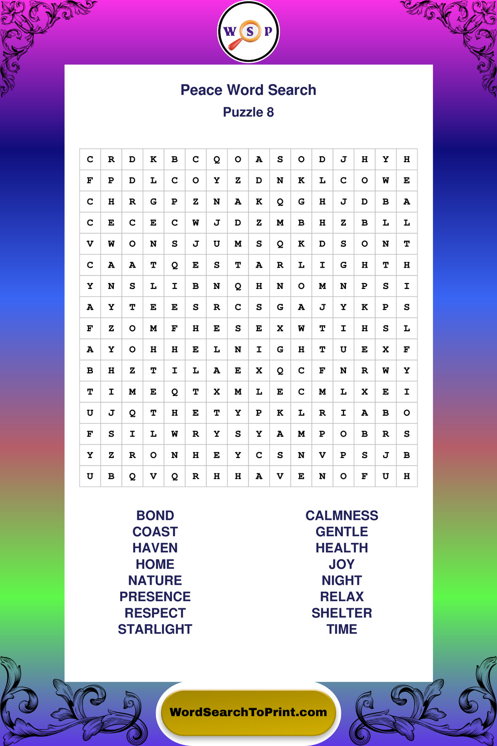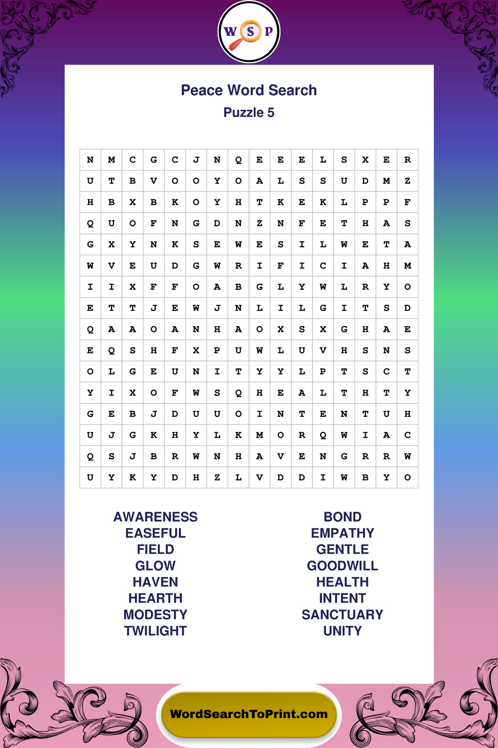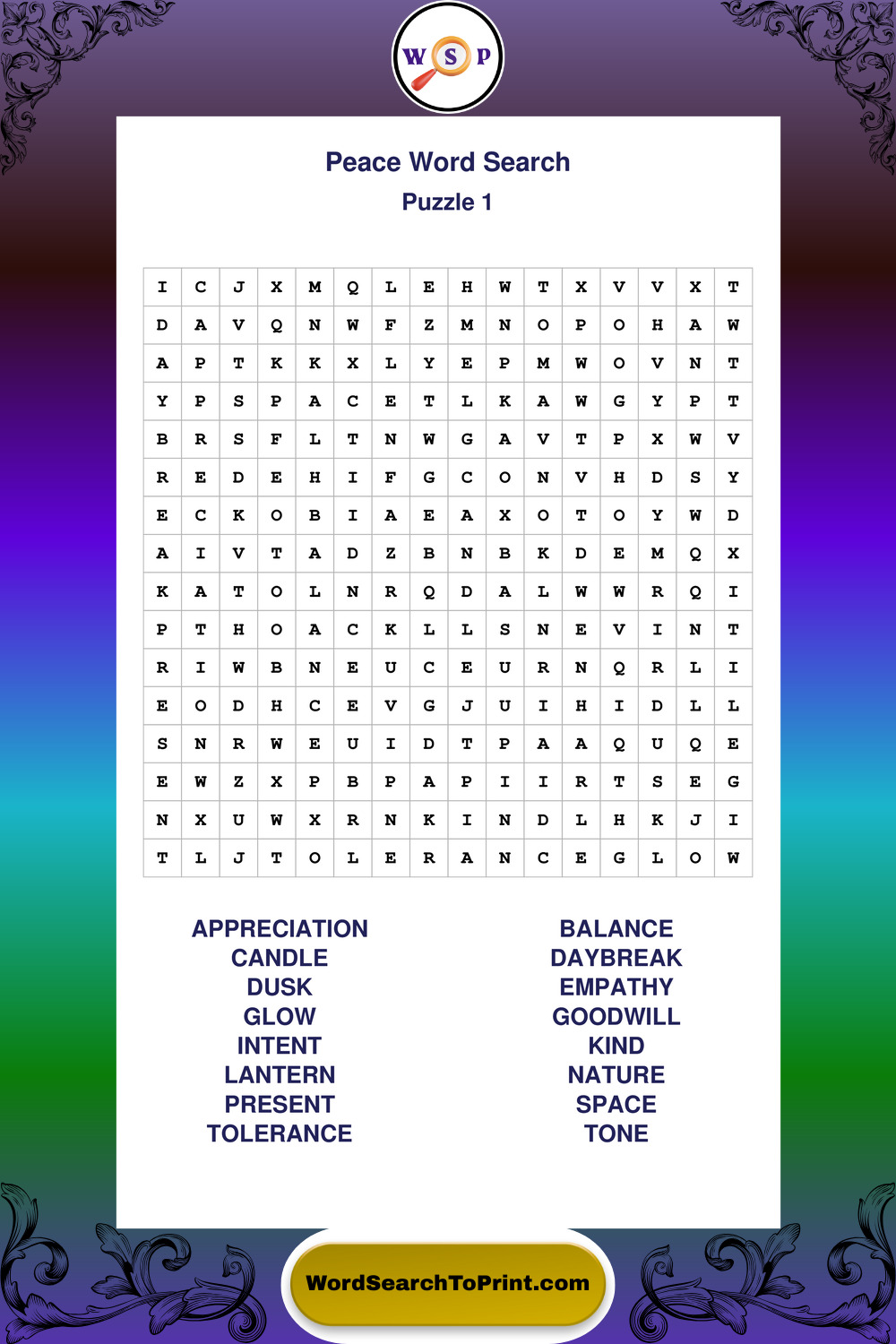 Printable Peace Wordsearch Puzzles
