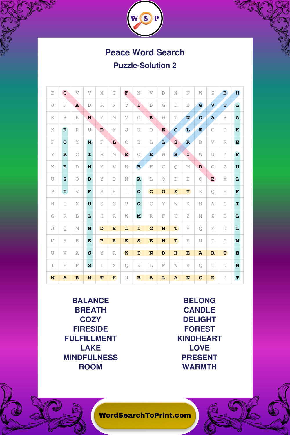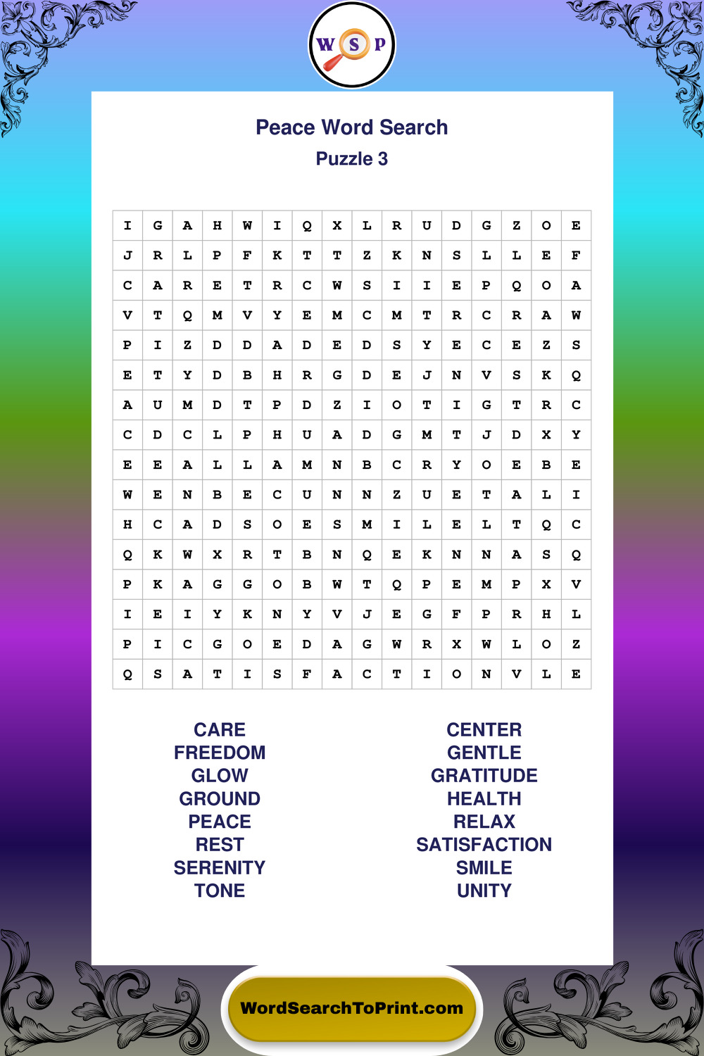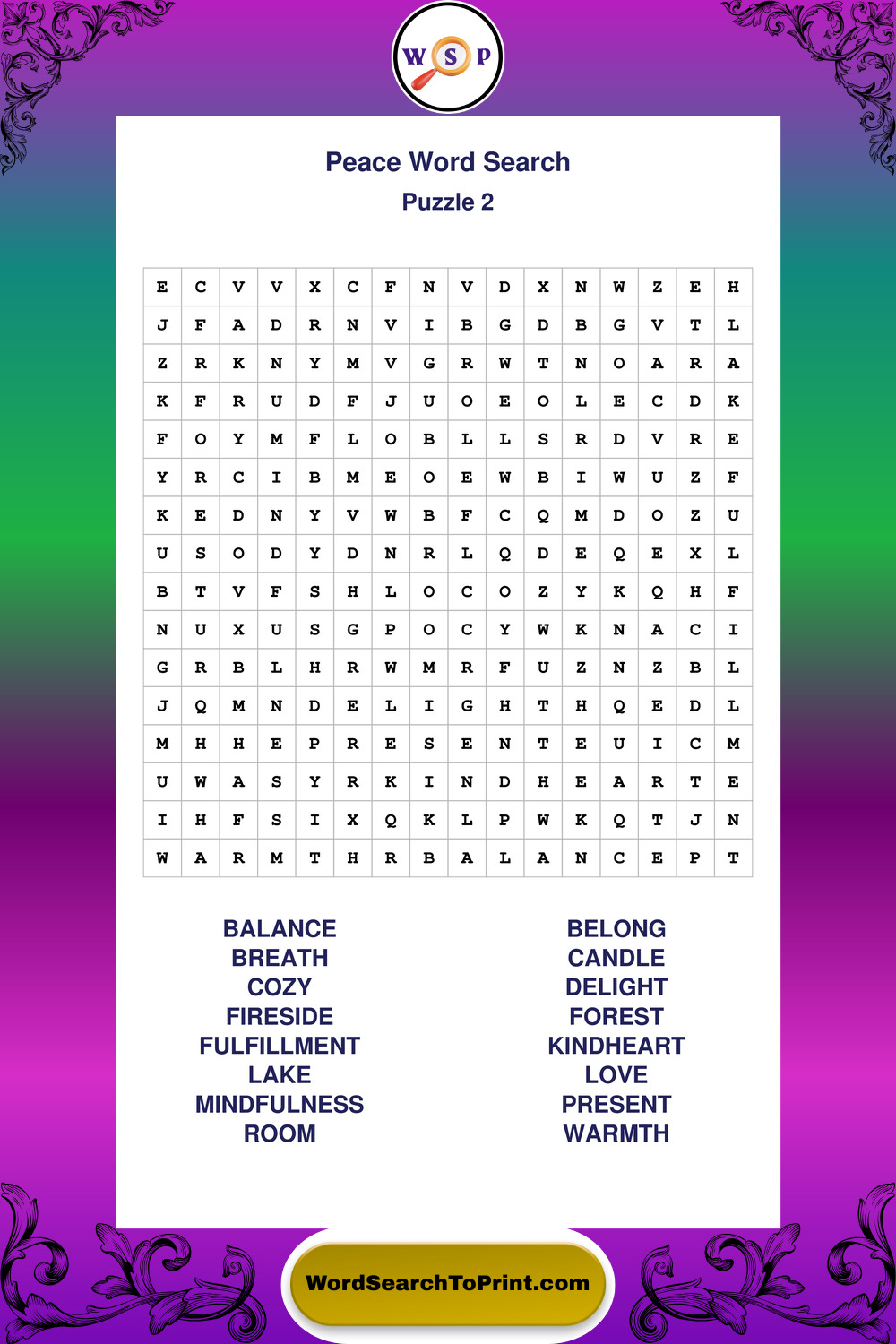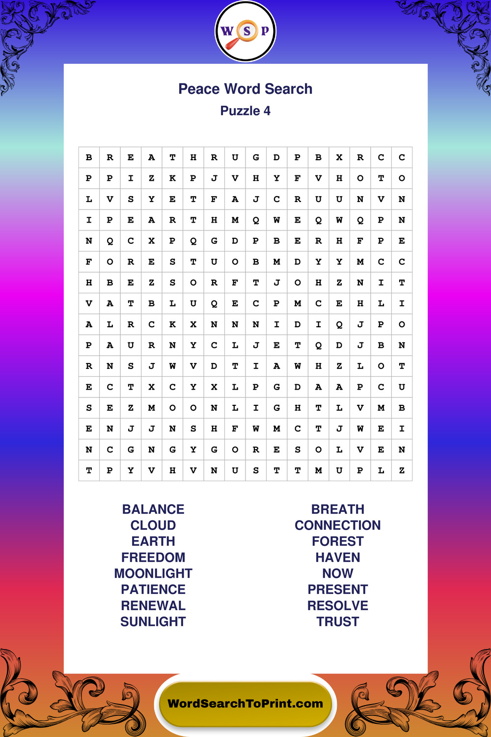 Printable Peace Wordsearch Puzzles