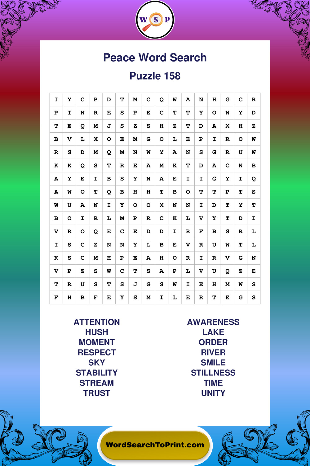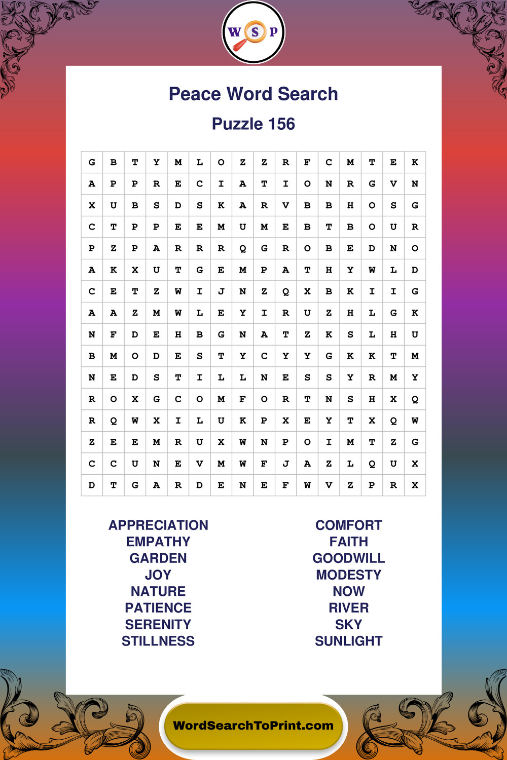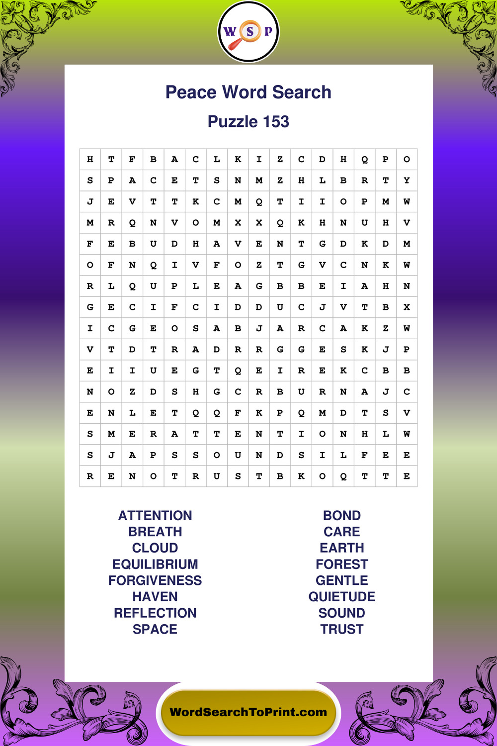 Enjoy a full set of large print Peace wordsearches perfect for quiet moments, daily routines, or casual brain exercise.
