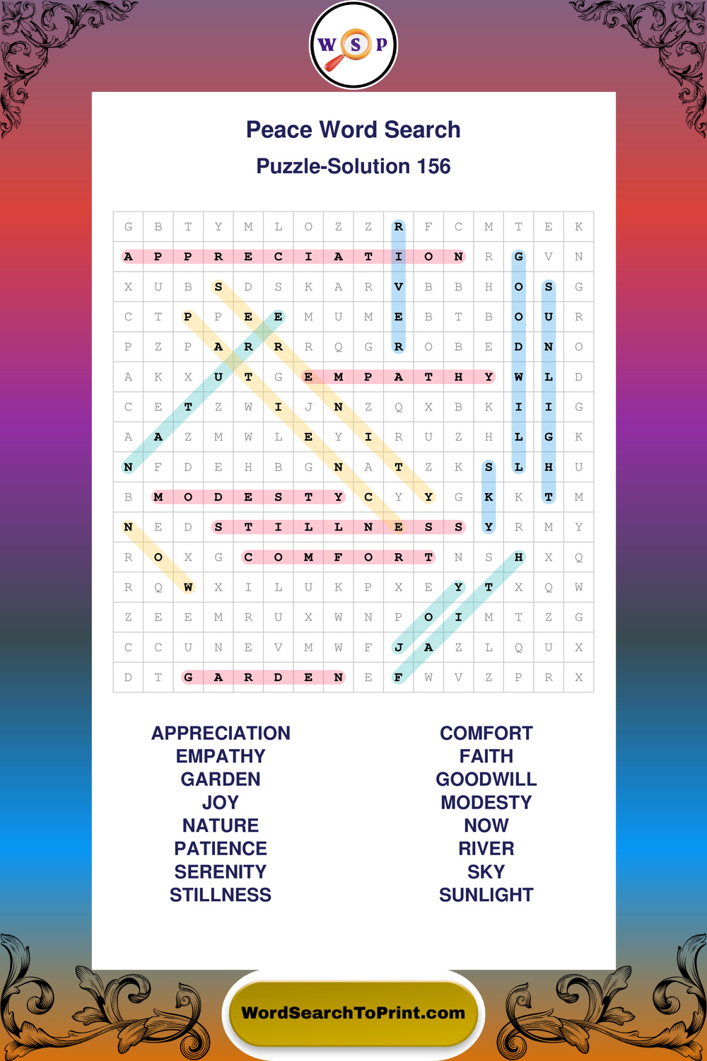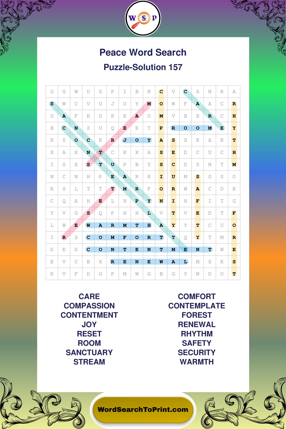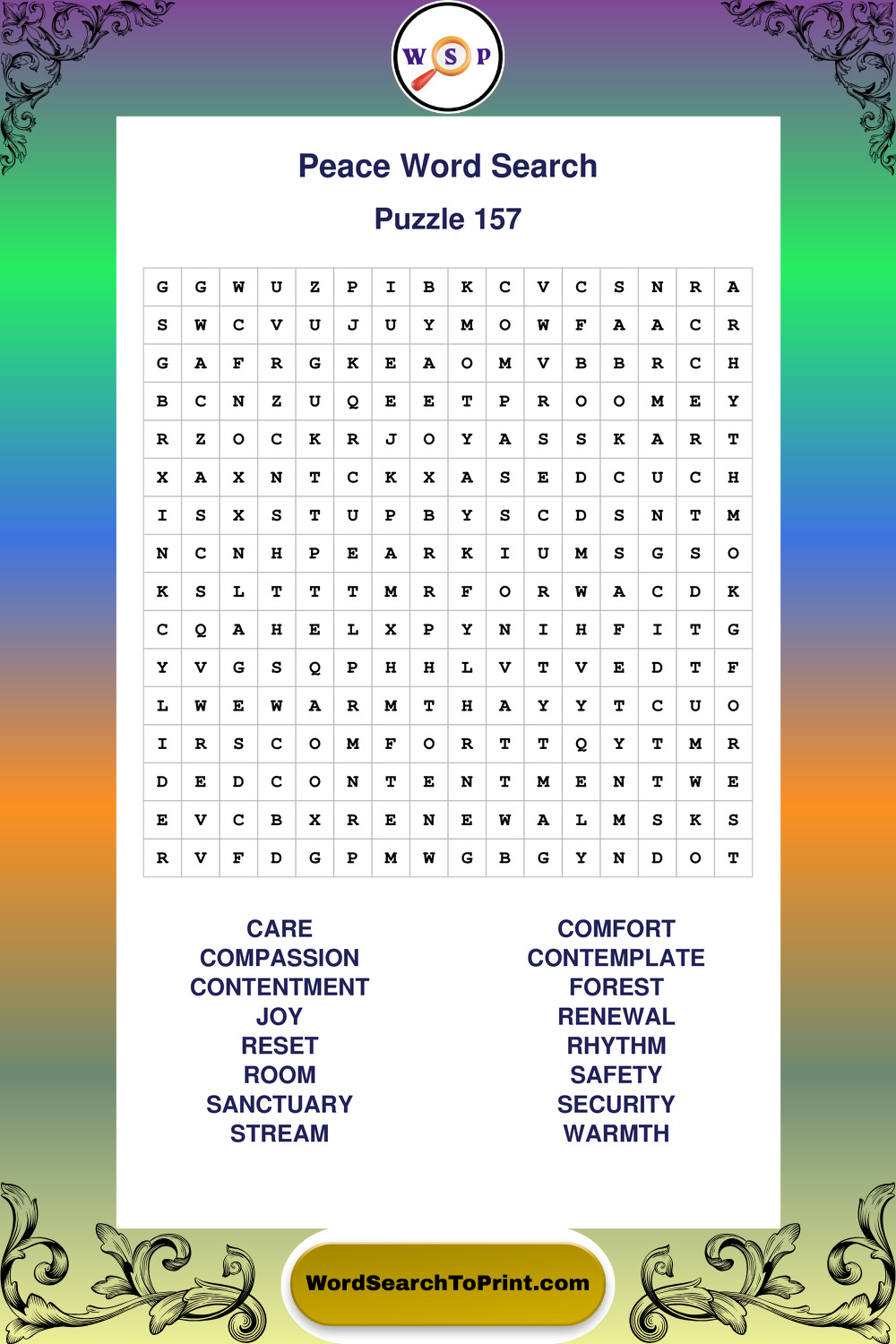 Enjoy a full set of large print Peace wordsearches perfect for quiet moments, daily routines, or casual brain exercise.
