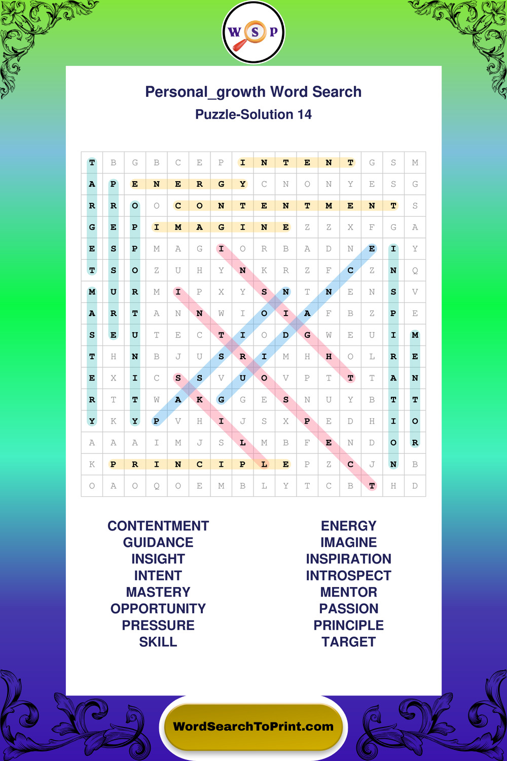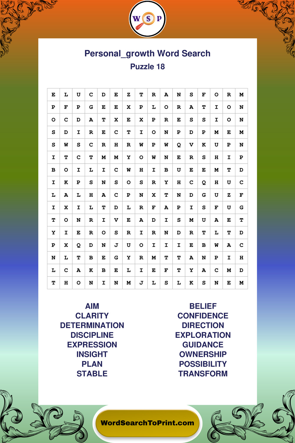 Printable Personal Growth Wordsearch Puzzles