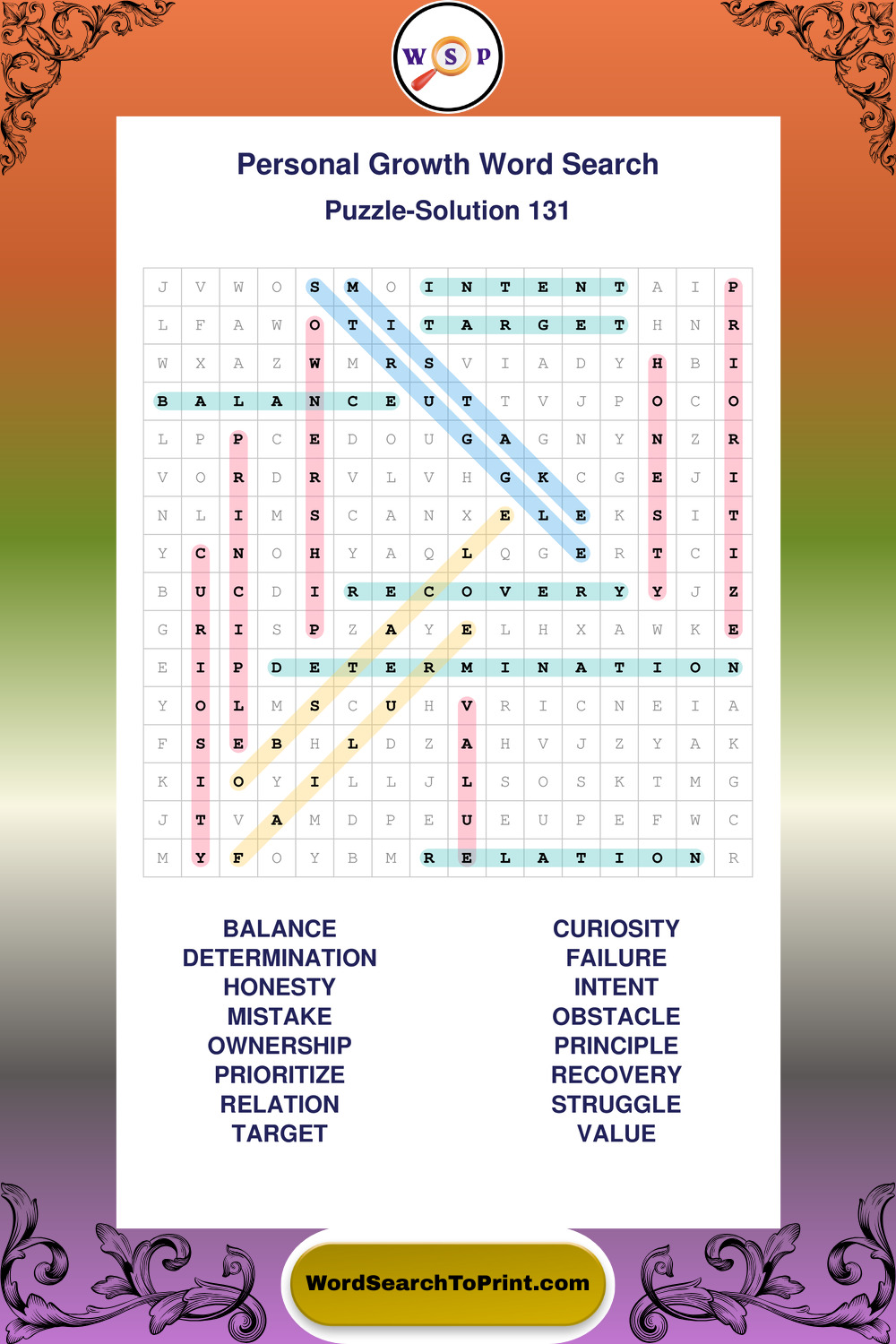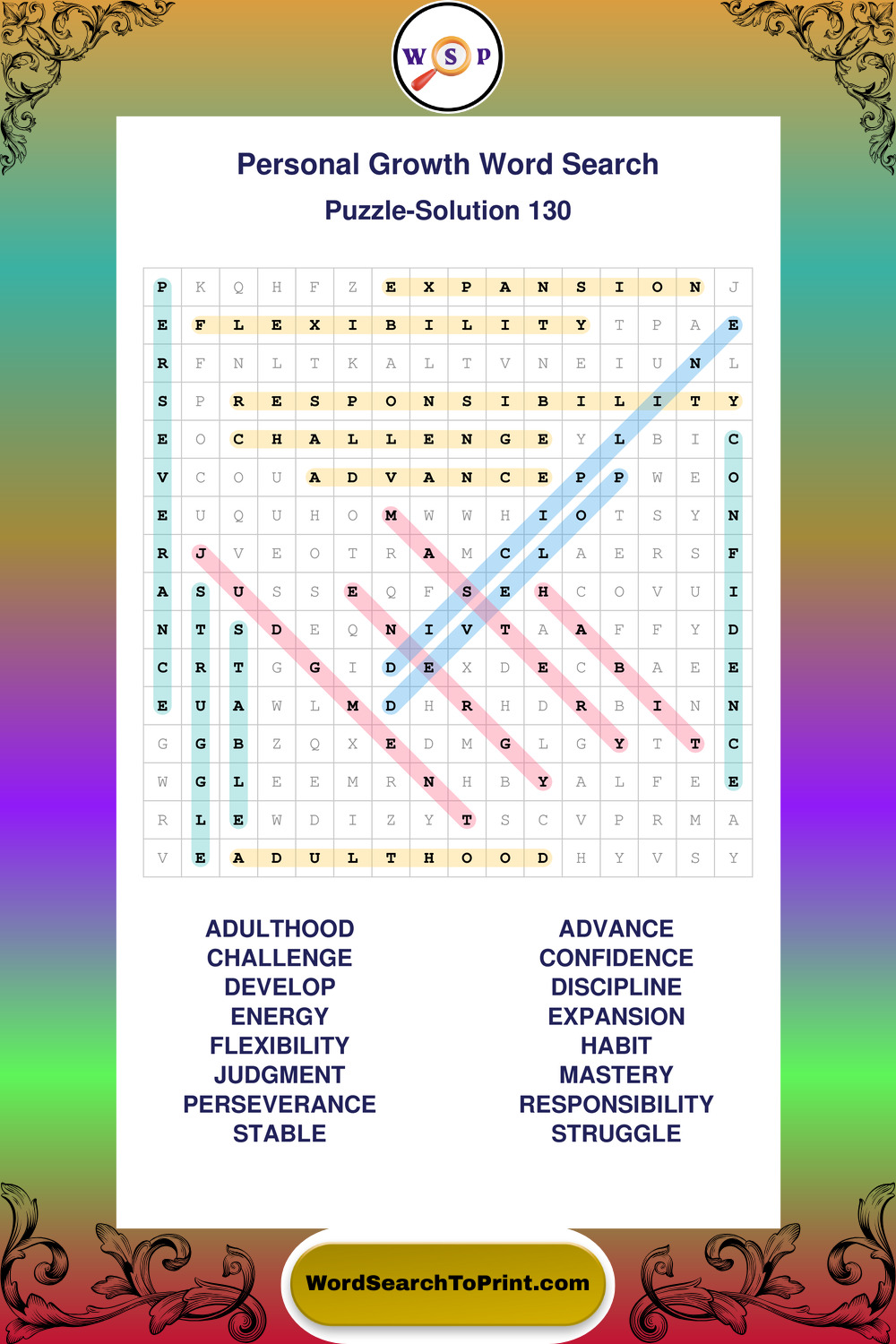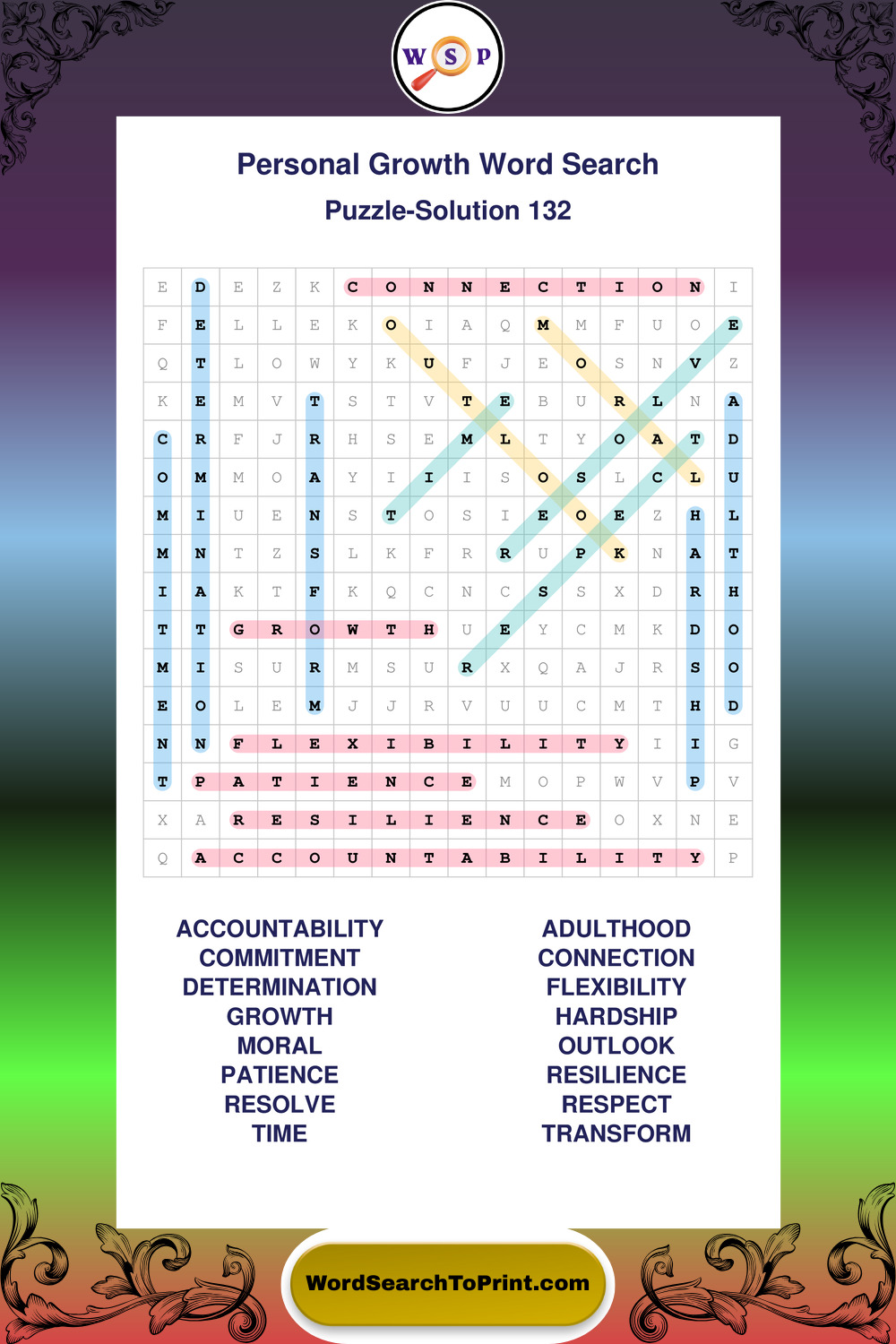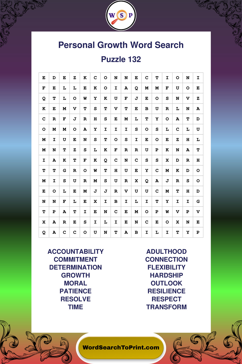 Printable Personal Growth Wordsearch Puzzles