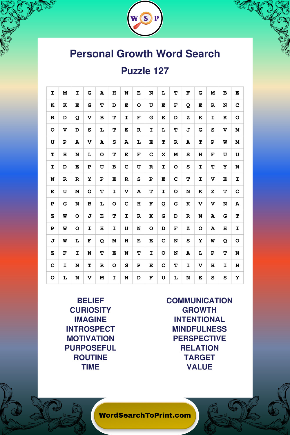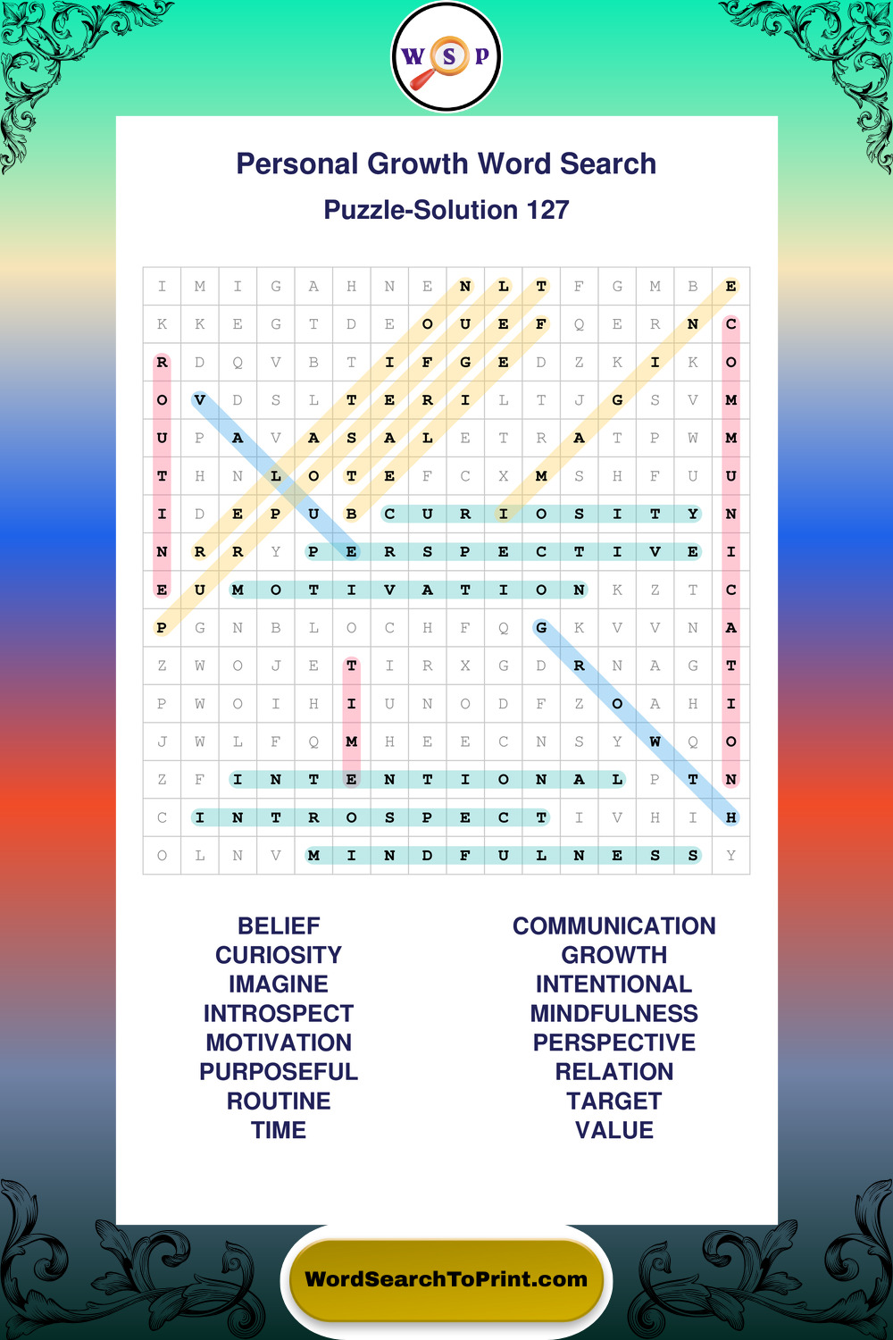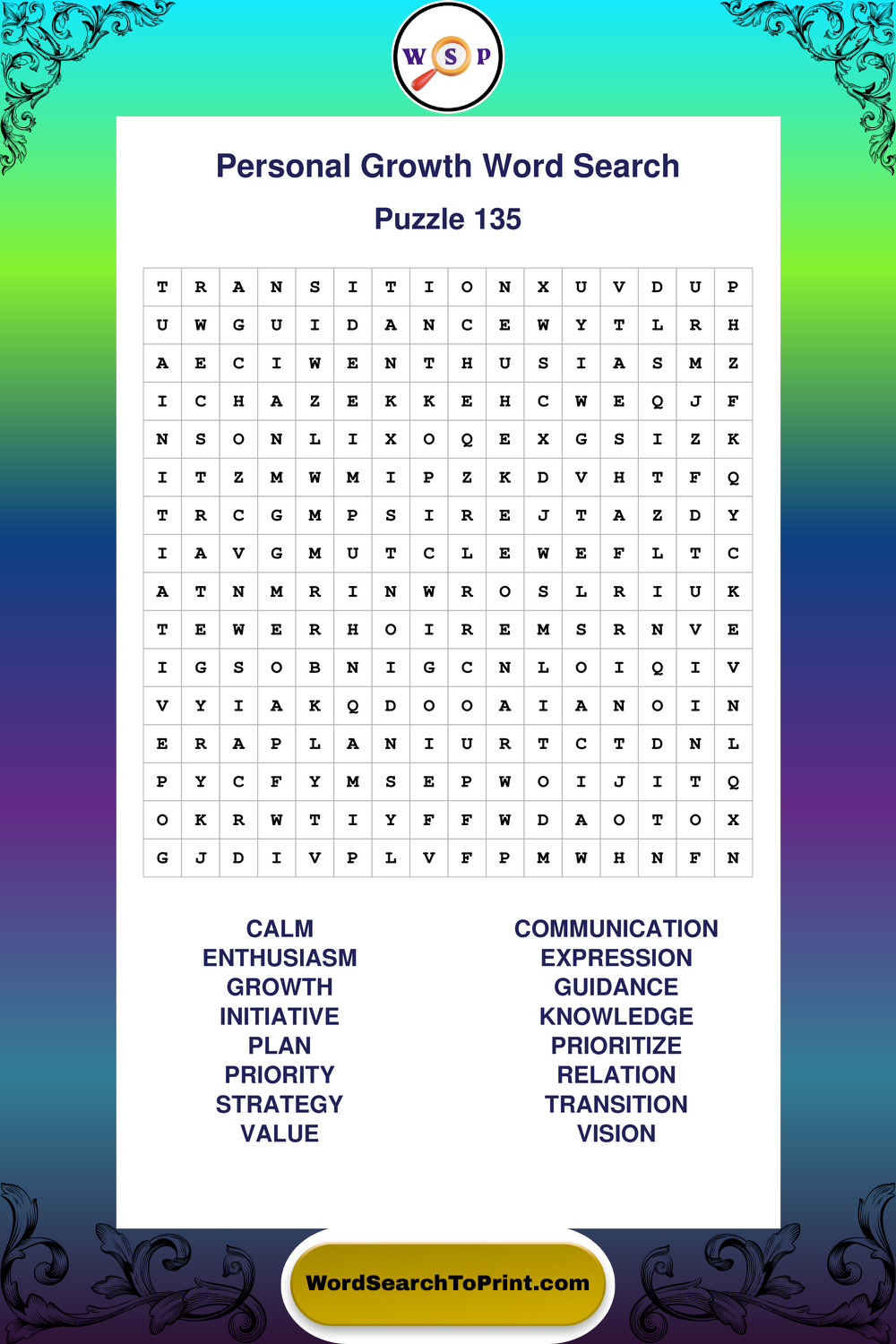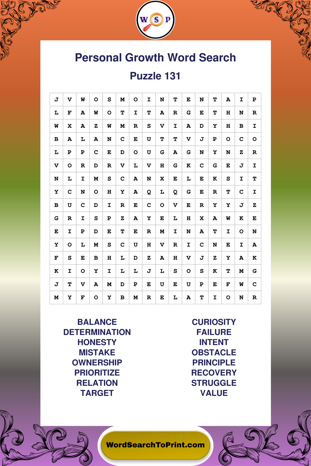 Printable Personal Growth Wordsearch Puzzles