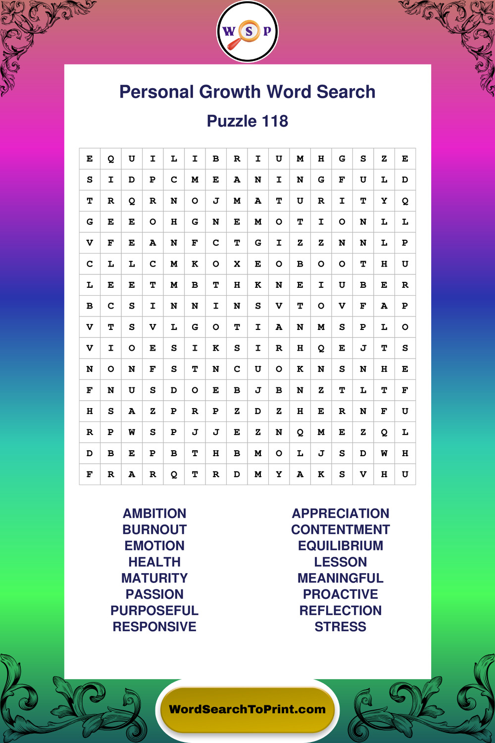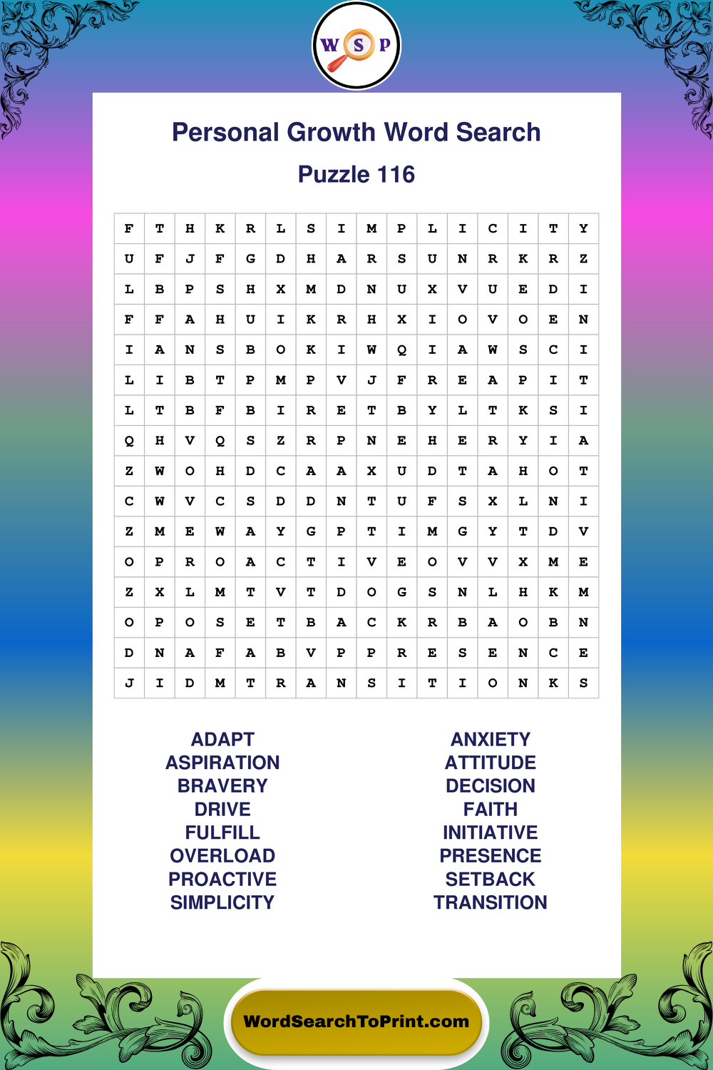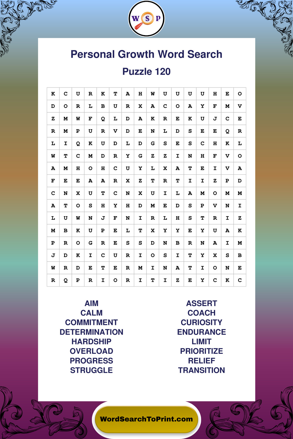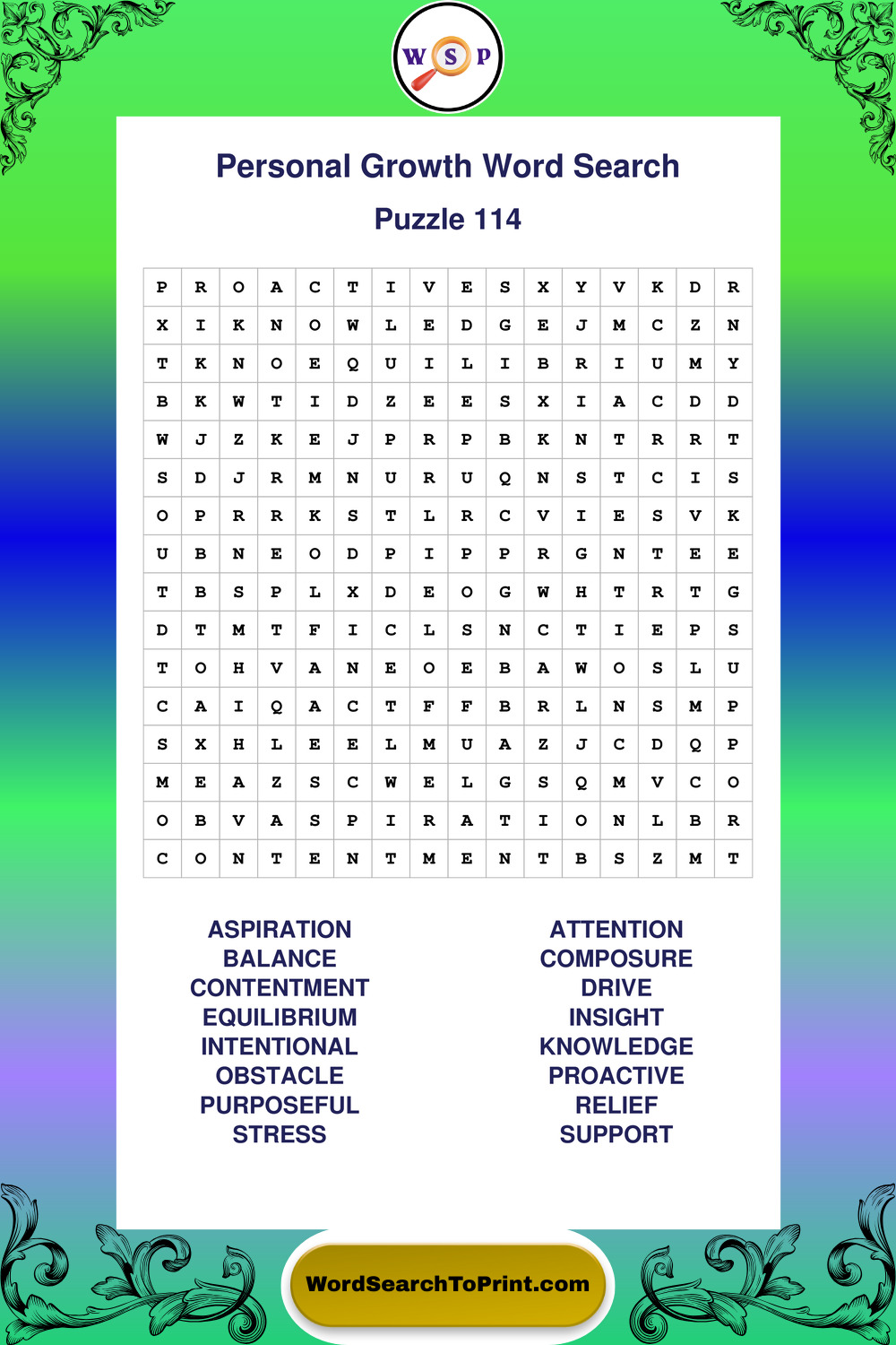 Discover large print Personal Growth wordsearches designed to support relaxed thinking and comfortable reading.
