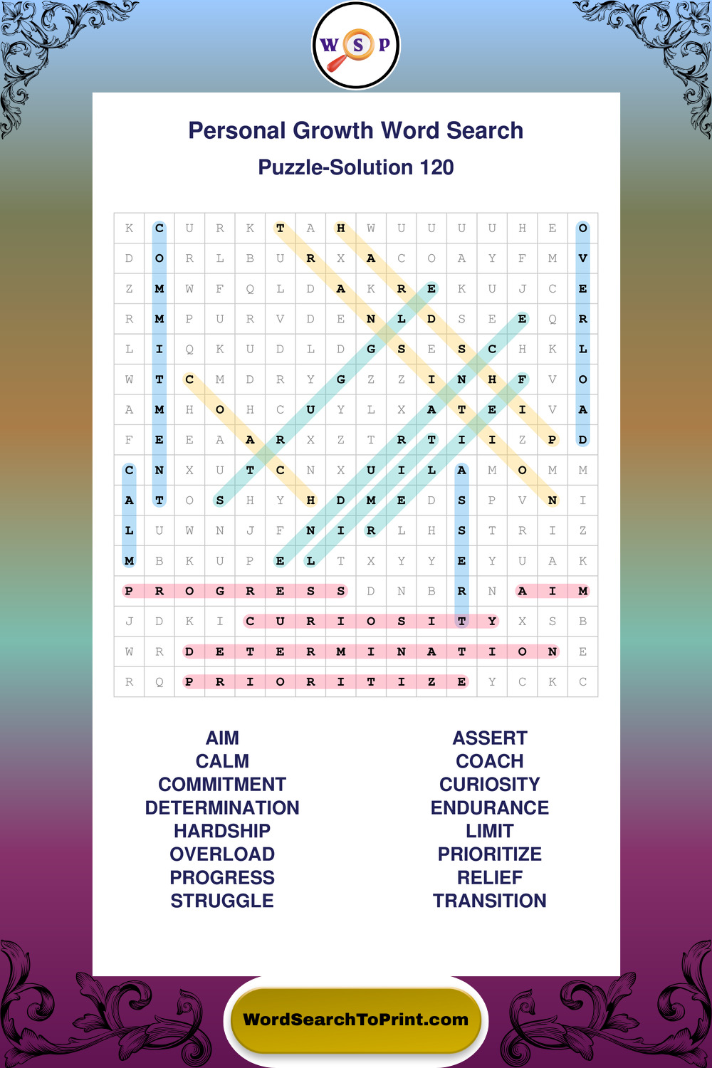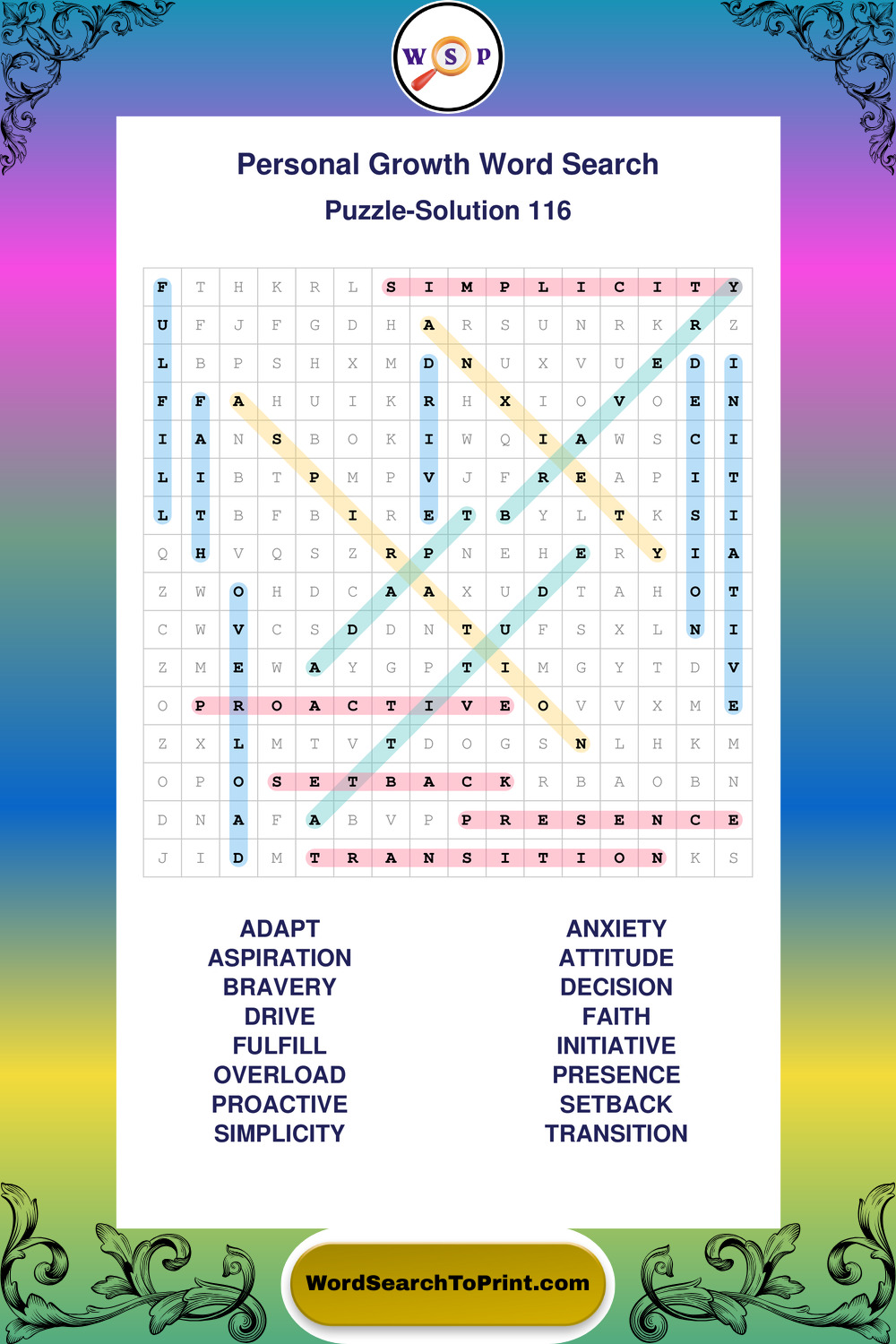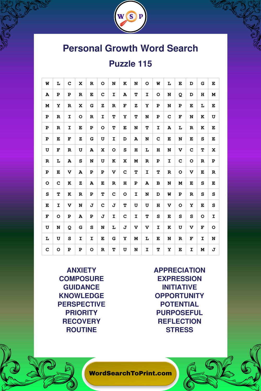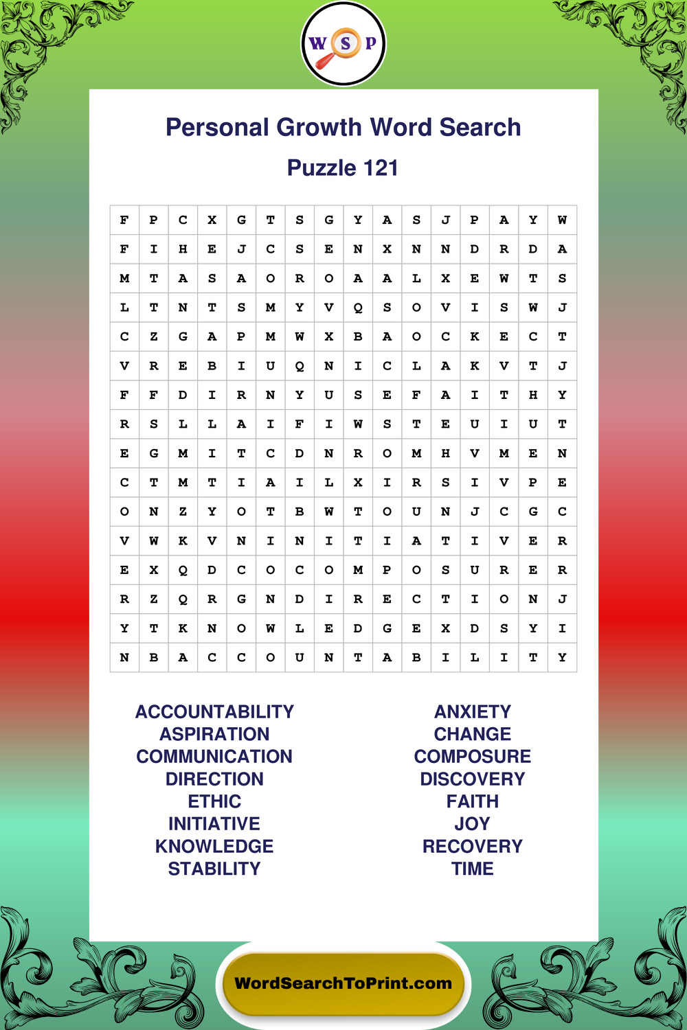Discover large print Personal Growth wordsearches designed to support relaxed thinking and comfortable reading.