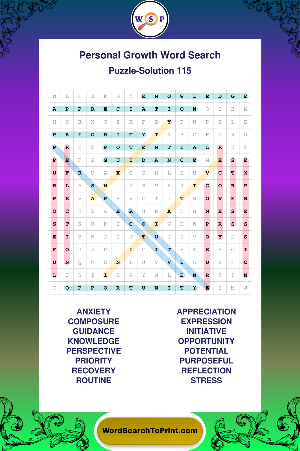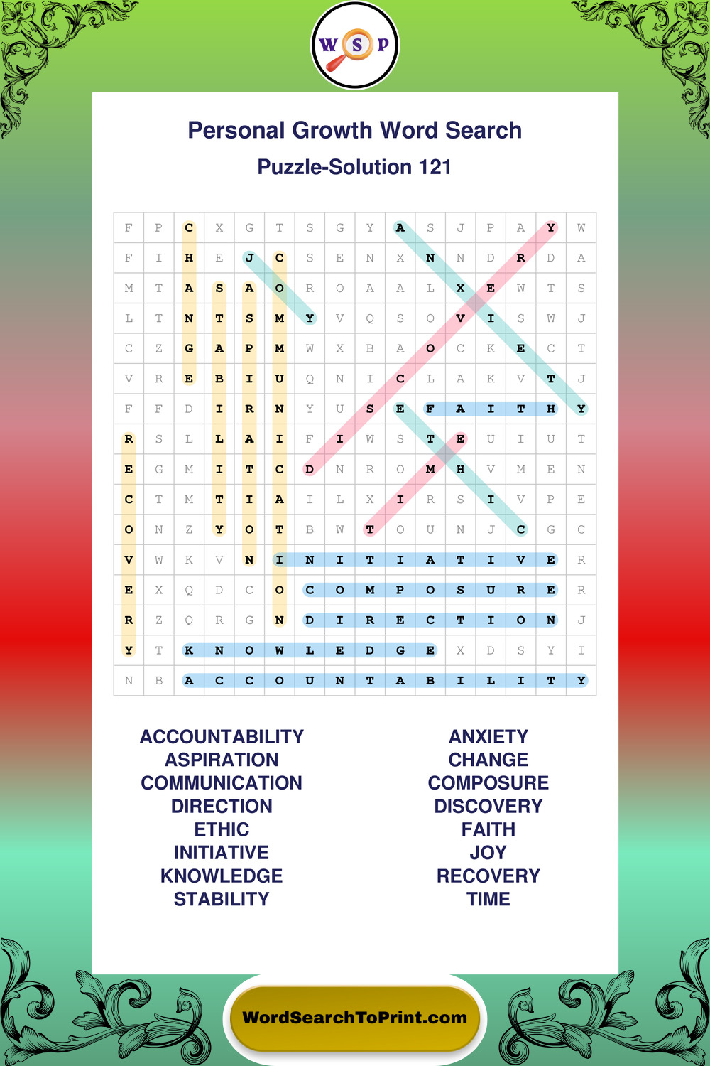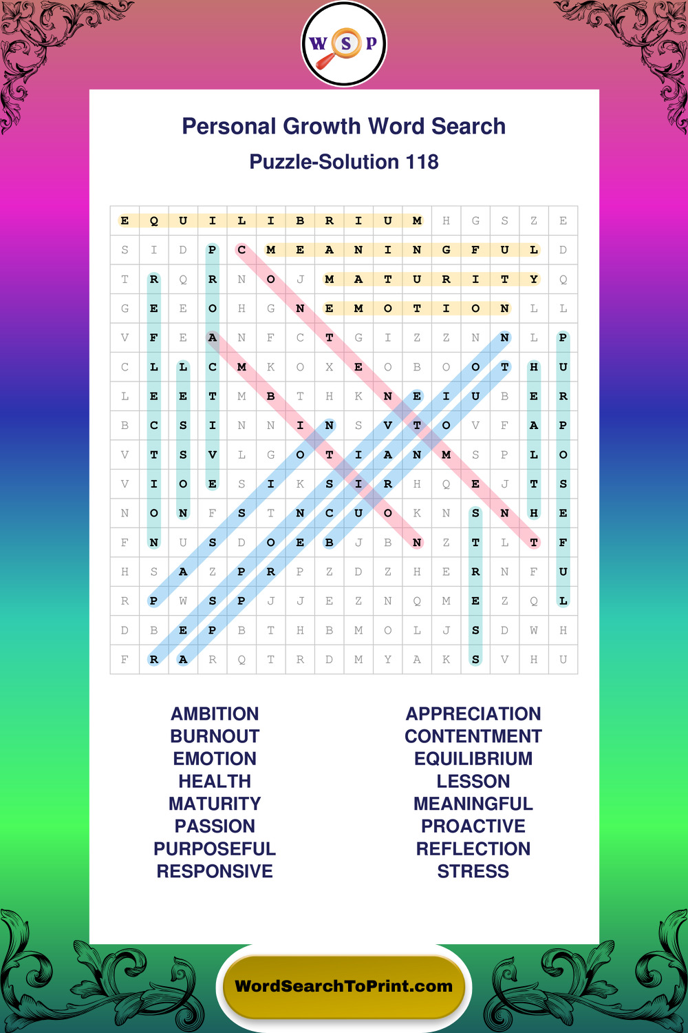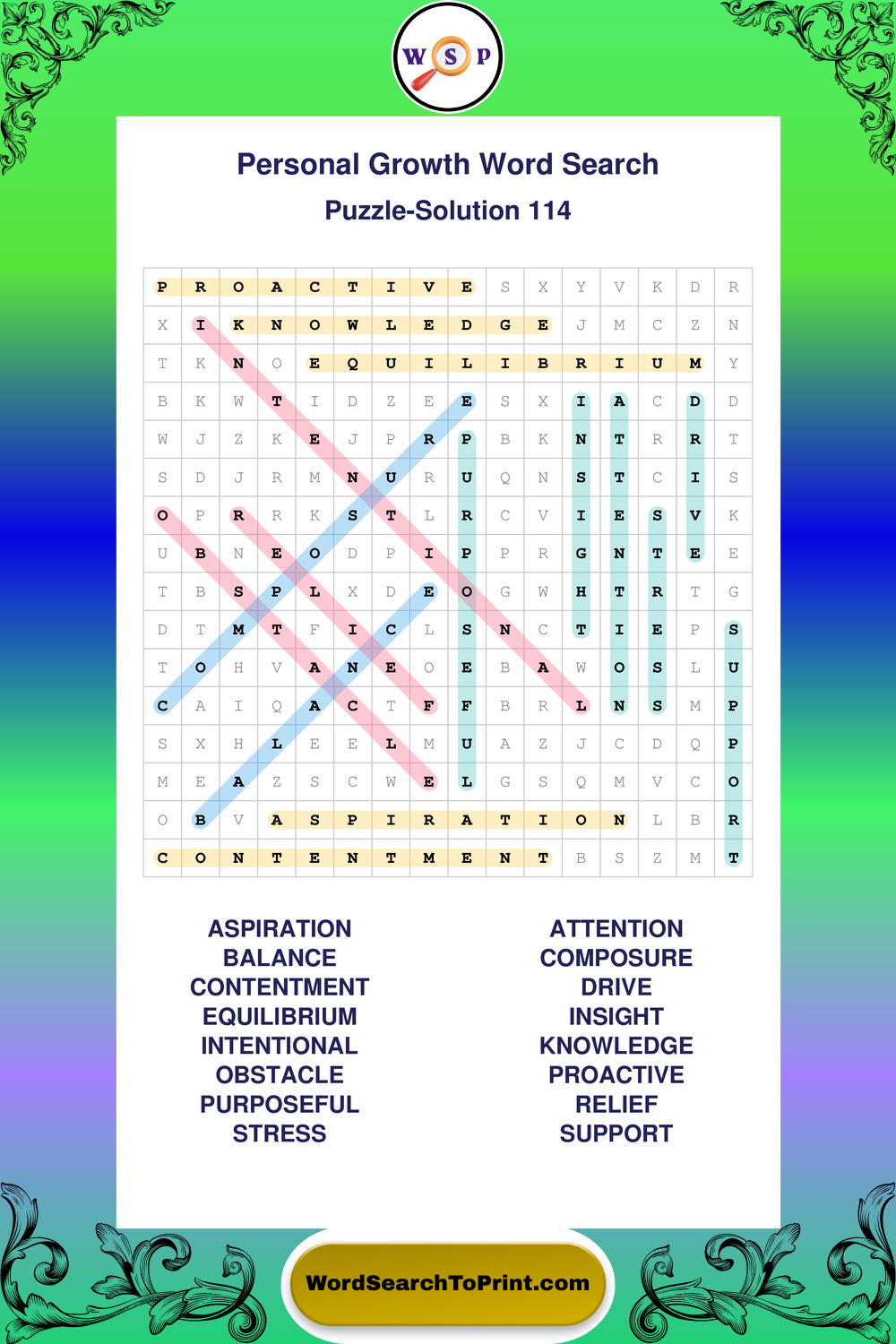 Discover large print Personal Growth wordsearches designed to support relaxed thinking and comfortable reading.