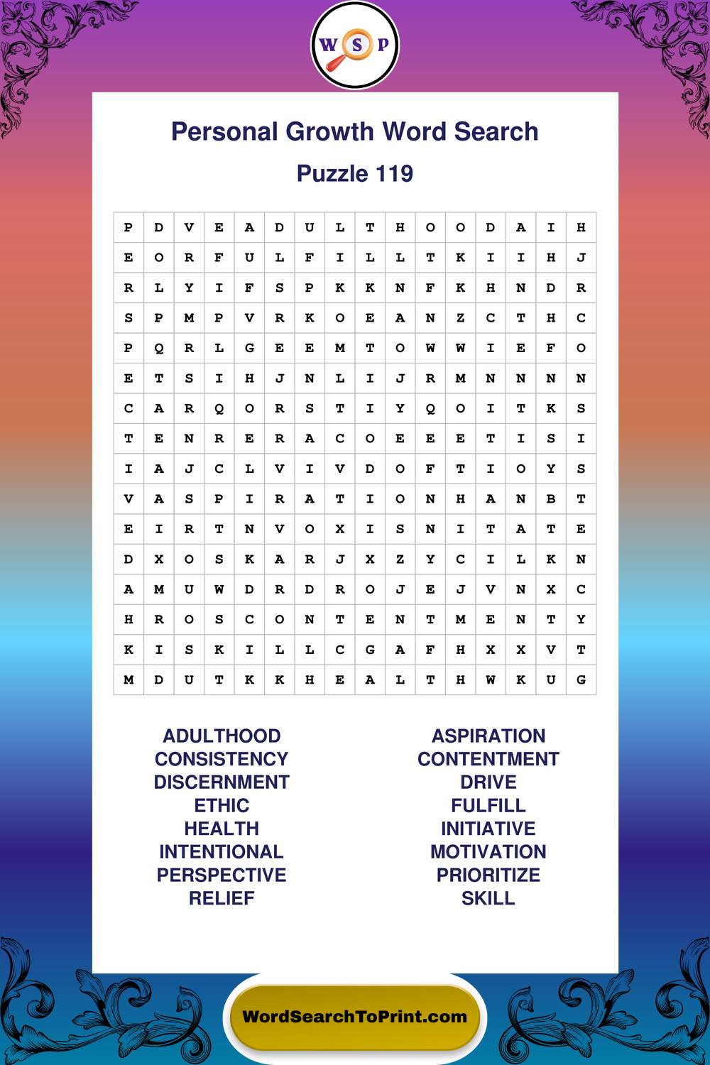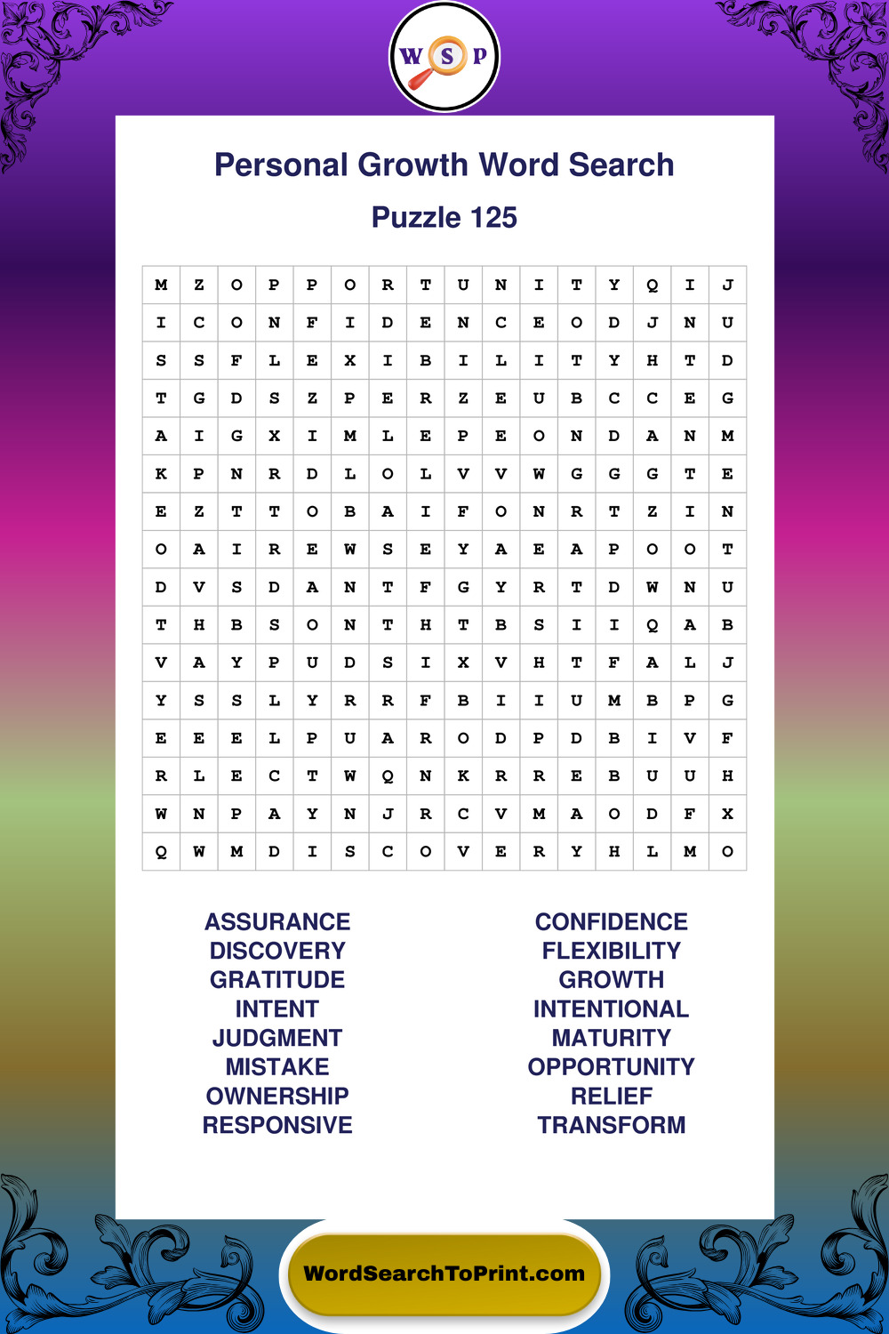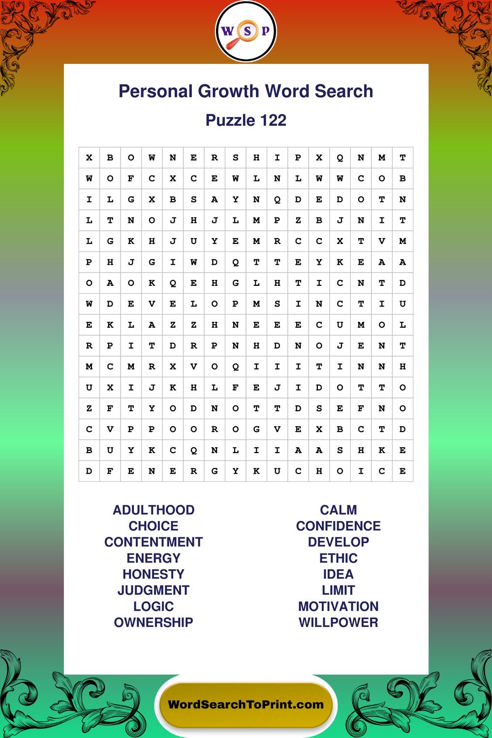 These puzzles focus on motivation, goal setting, life lessons, inspiration, and personal development concepts. They offer a structured and engaging way to explore this topic while strengthening concentration and vocabulary recognition. You may also enjoy our Life Lessons word search puzzles.