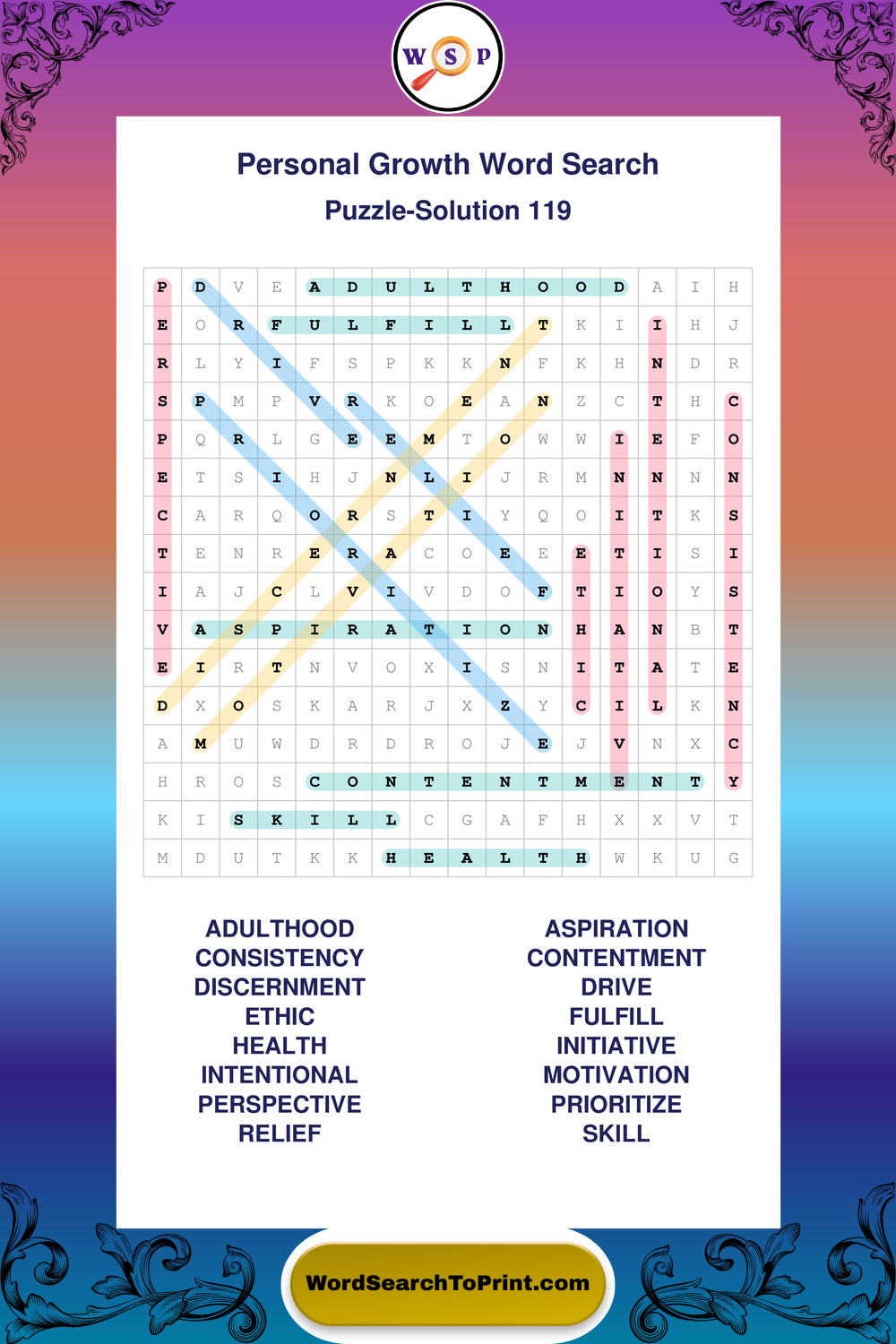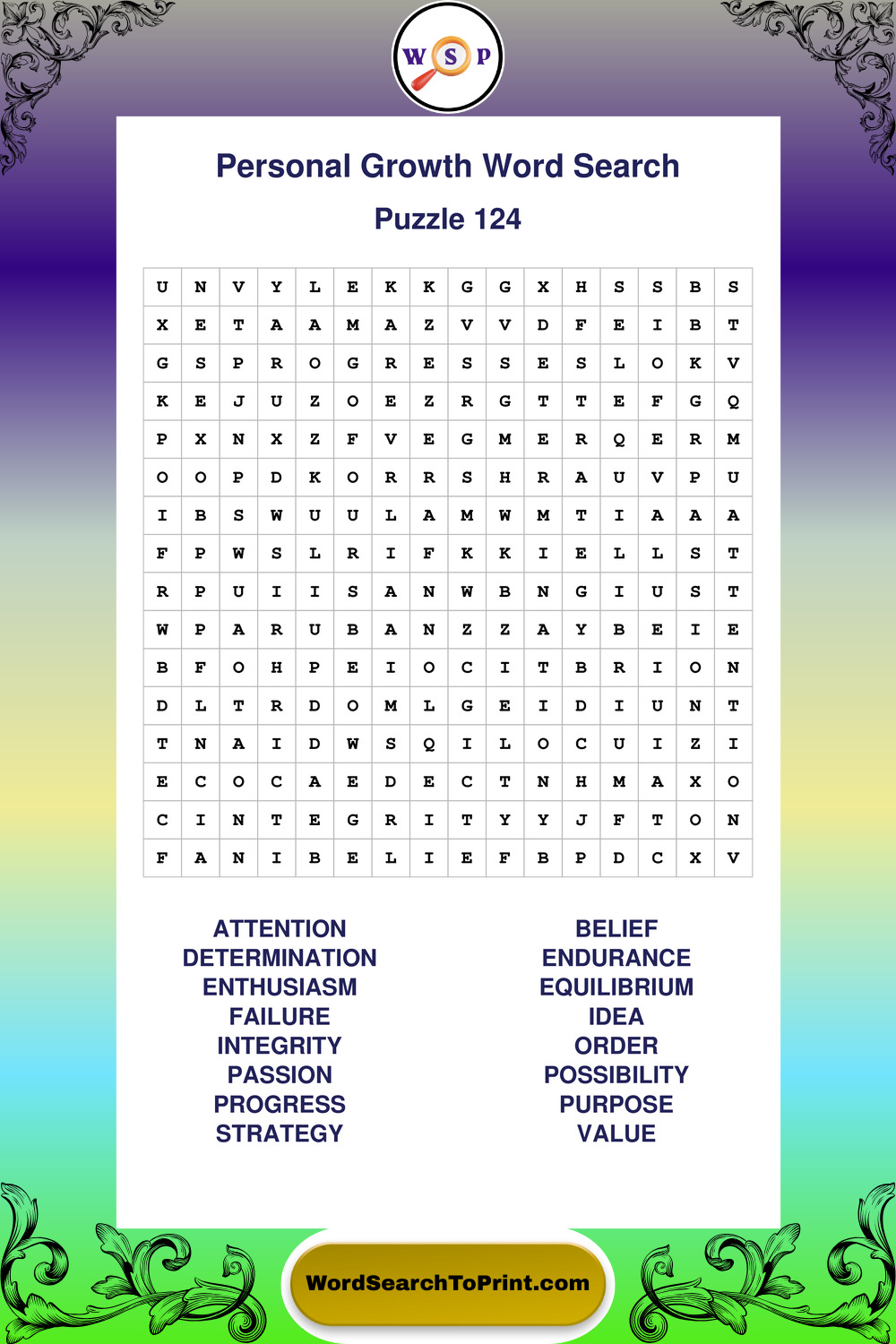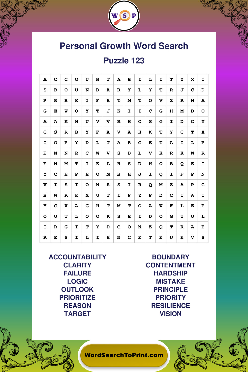 These puzzles focus on motivation, goal setting, life lessons, inspiration, and personal development concepts. They offer a structured and engaging way to explore this topic while strengthening concentration and vocabulary recognition. You may also enjoy our Life Lessons word search puzzles.