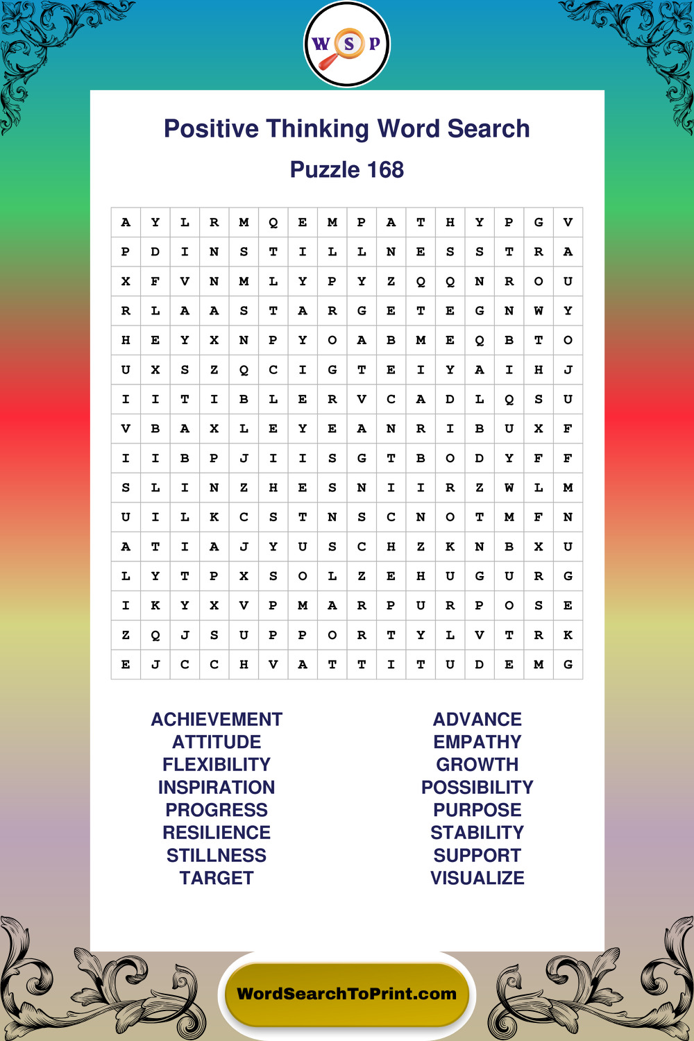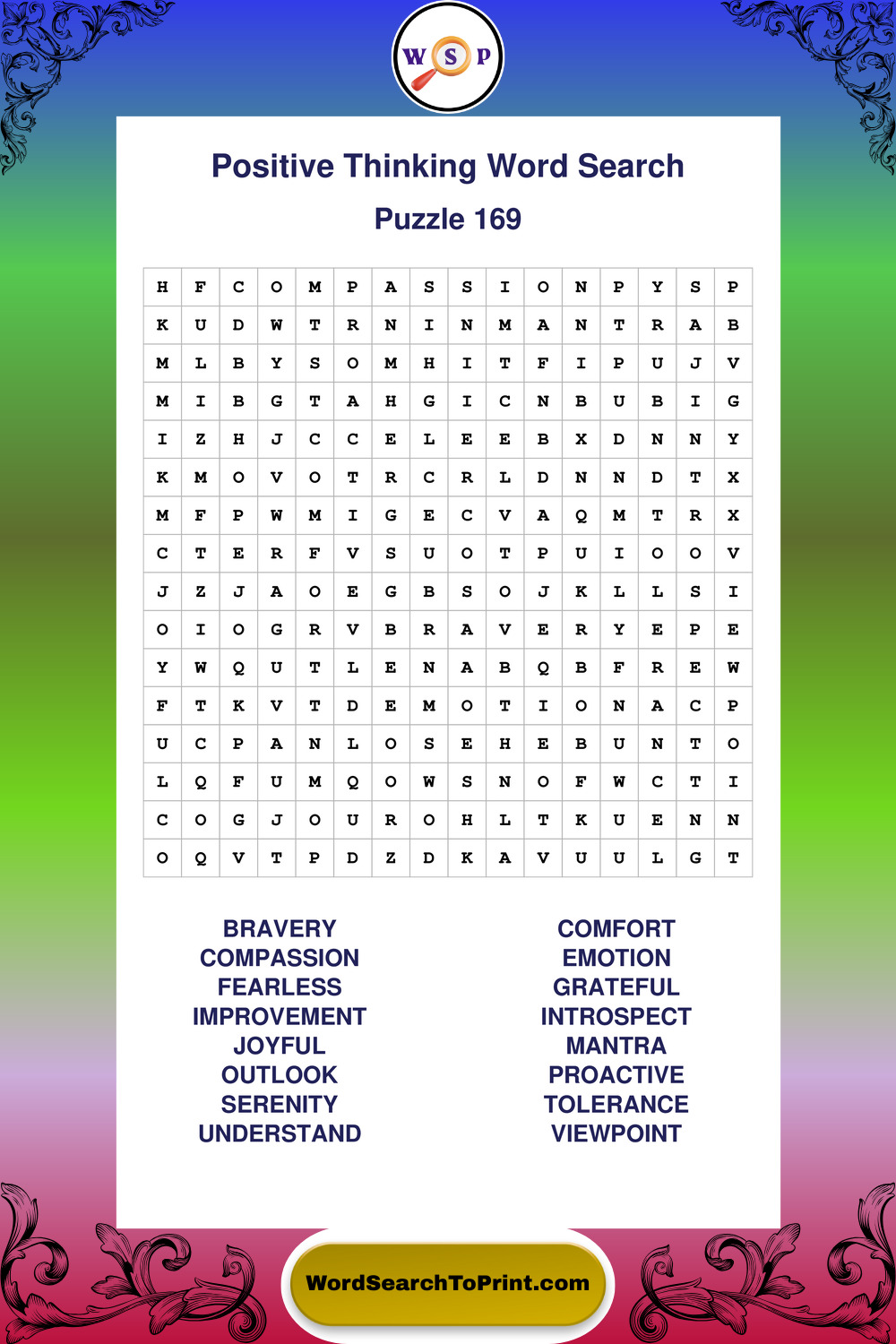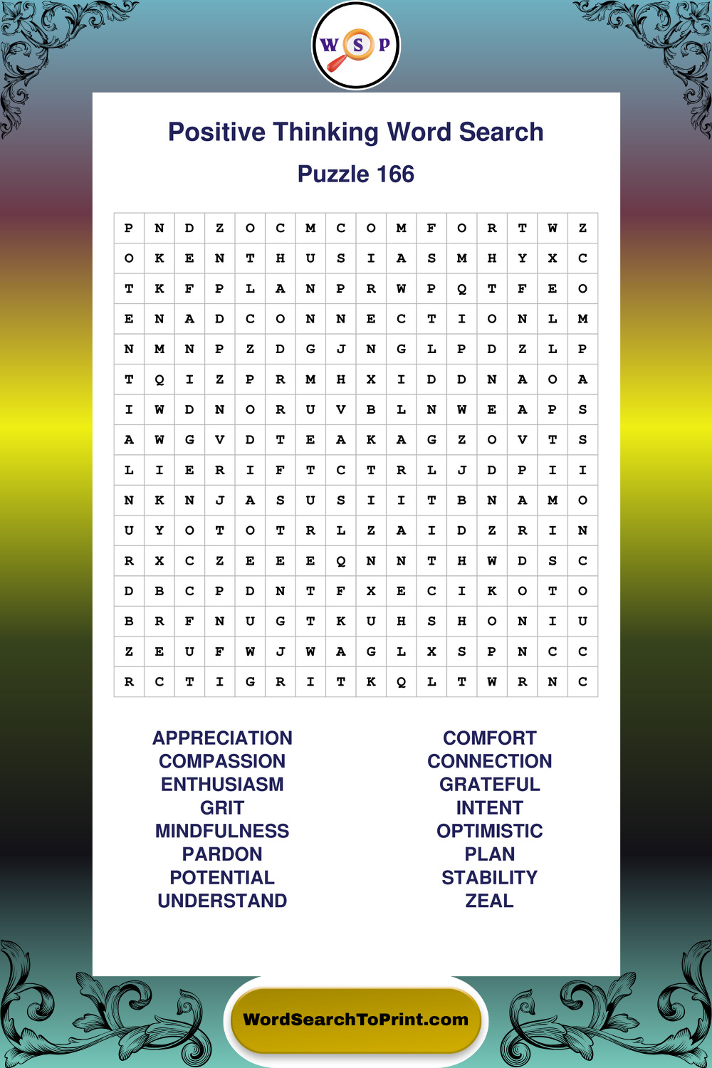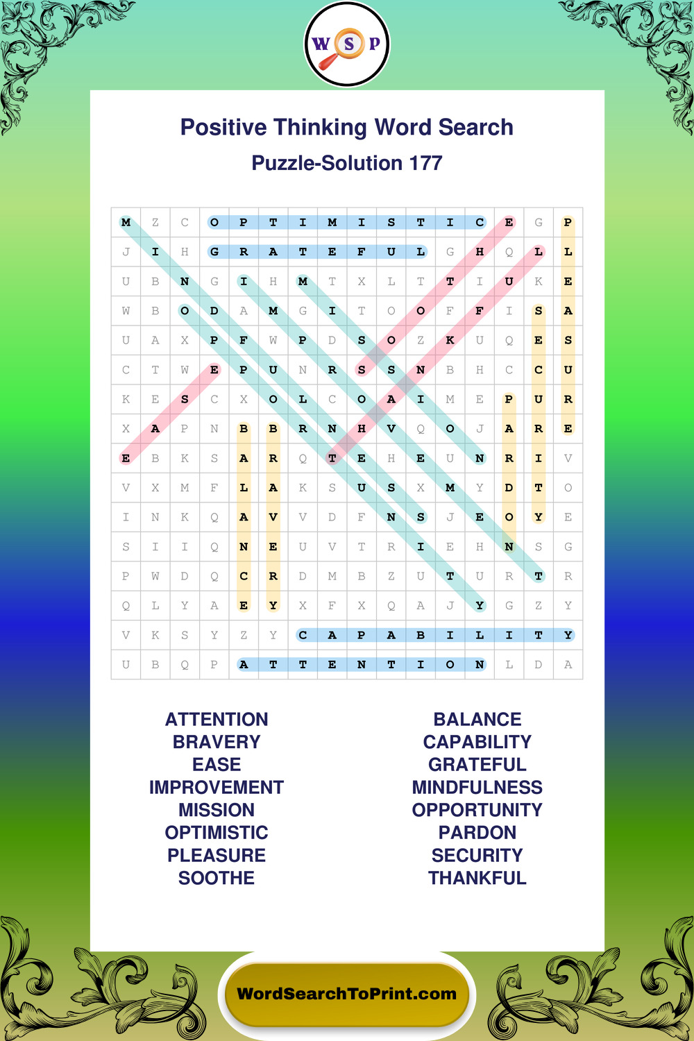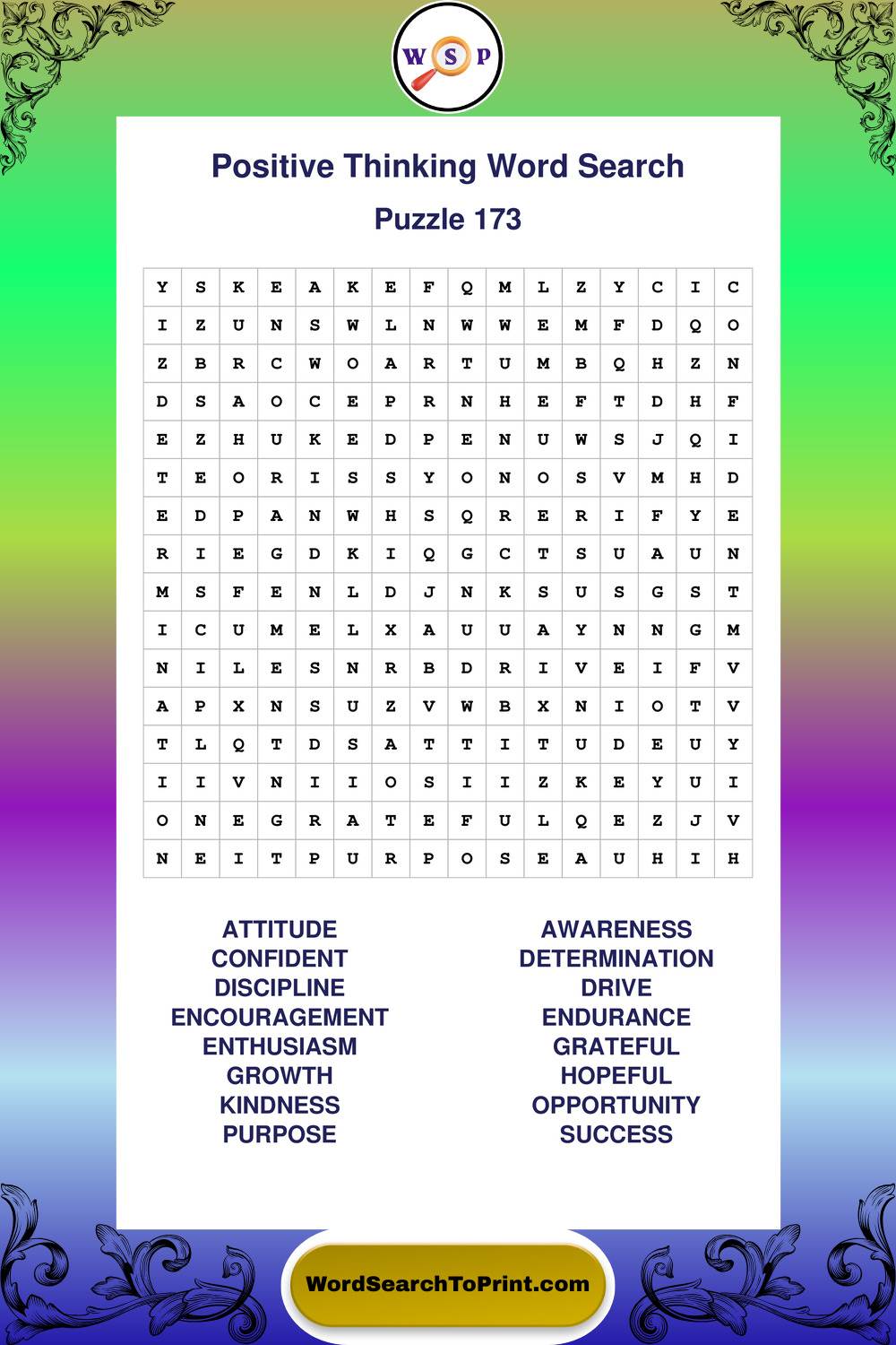 Enjoy large print Positive Thinking wordsearches that balance clarity, simplicity, and enjoyable mental activity.