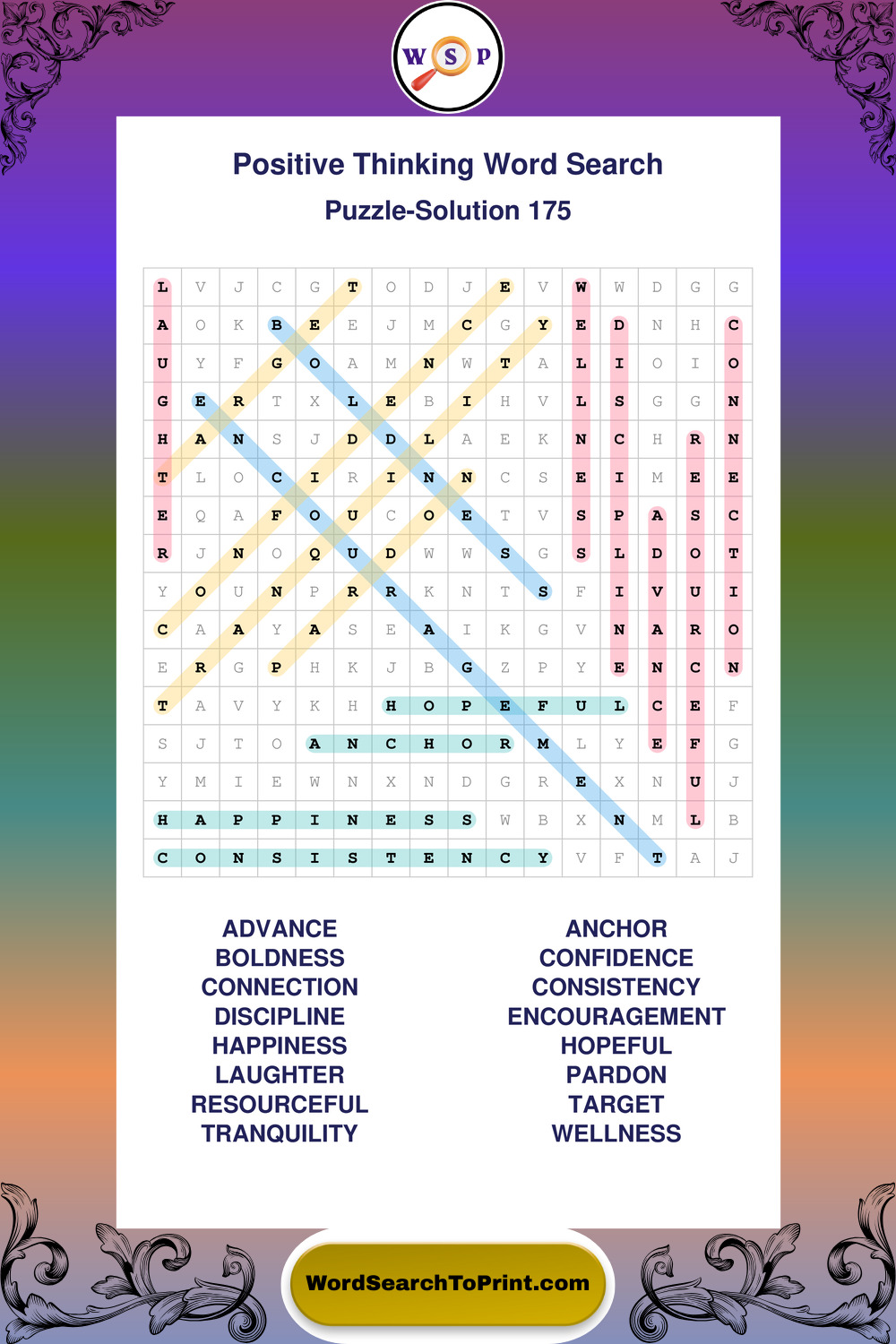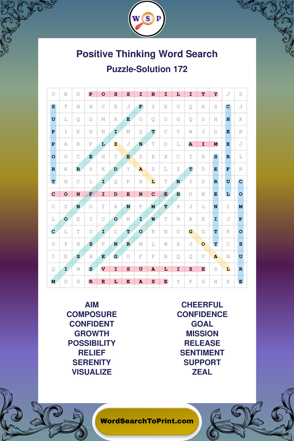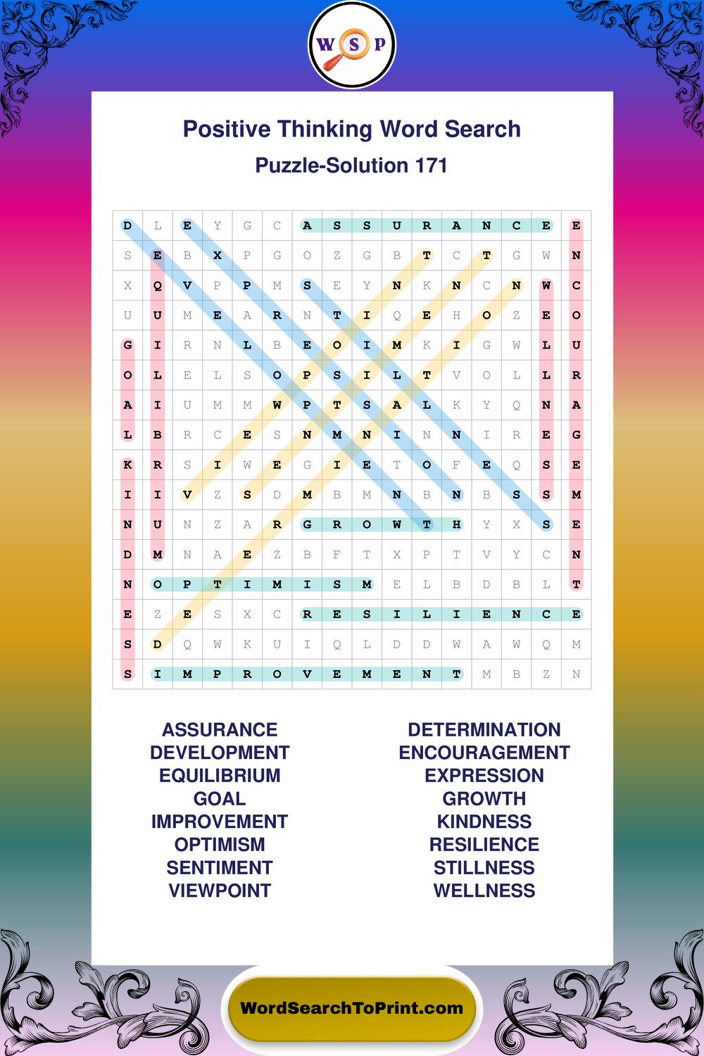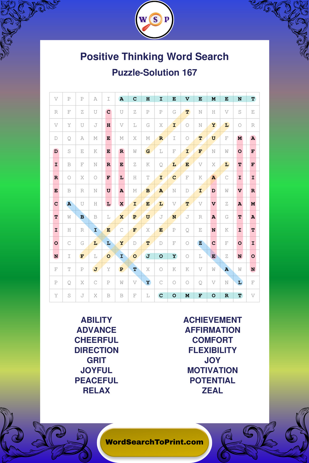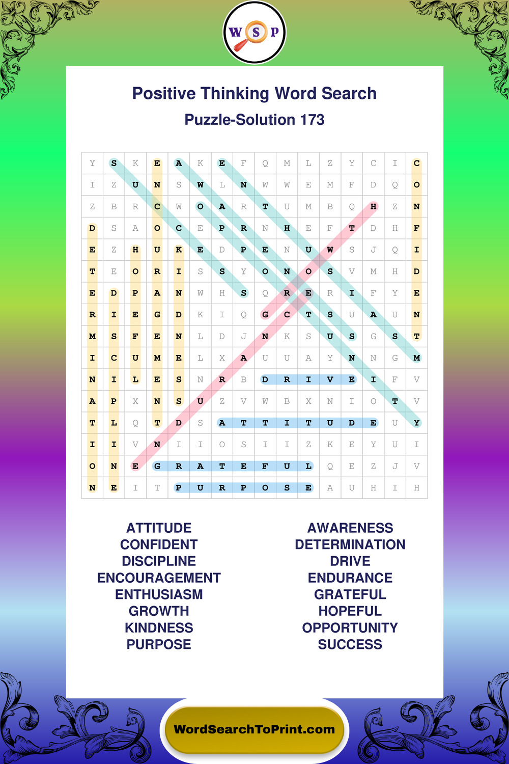 Enjoy large print Positive Thinking wordsearches that balance clarity, simplicity, and enjoyable mental activity.
