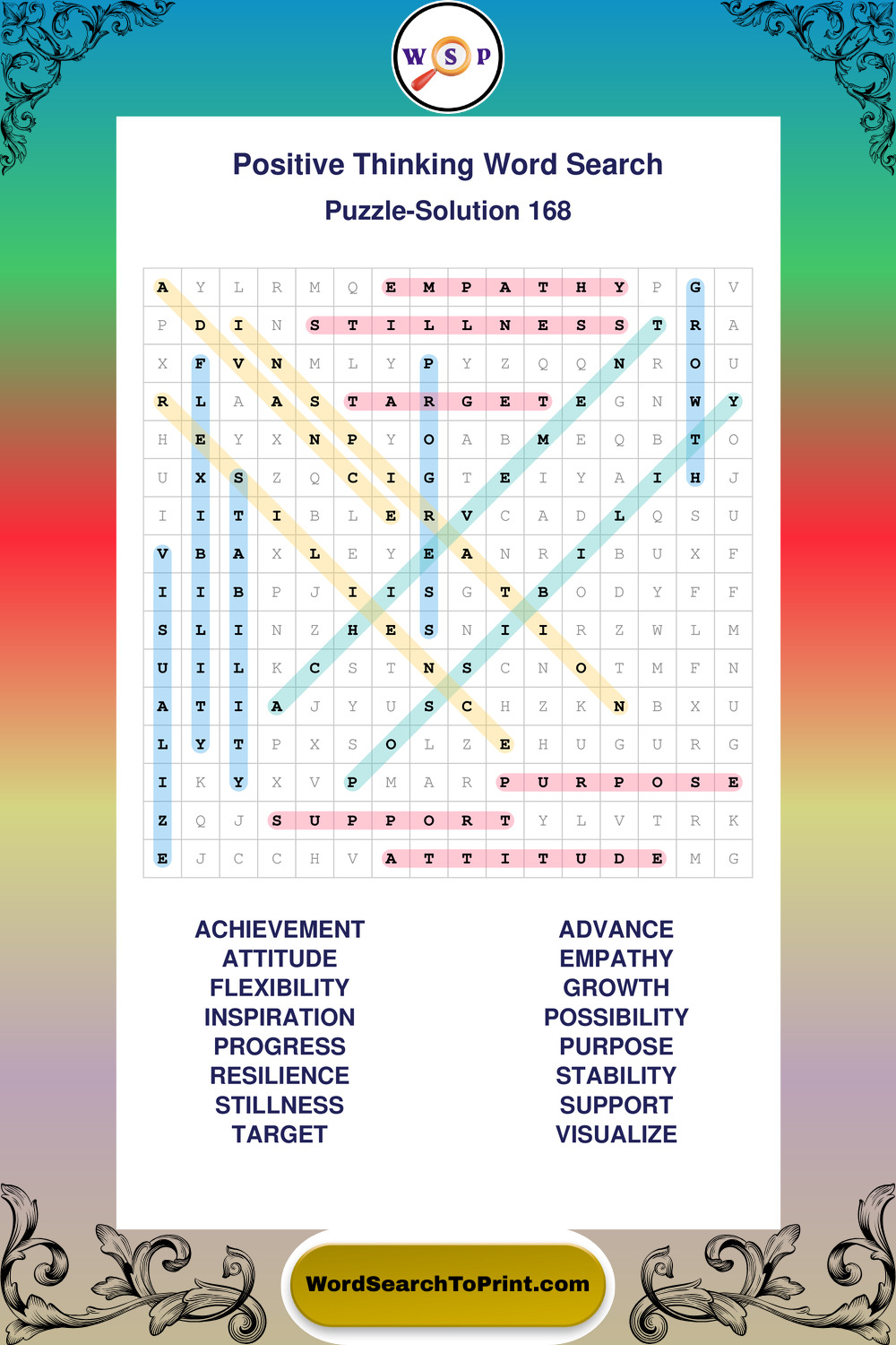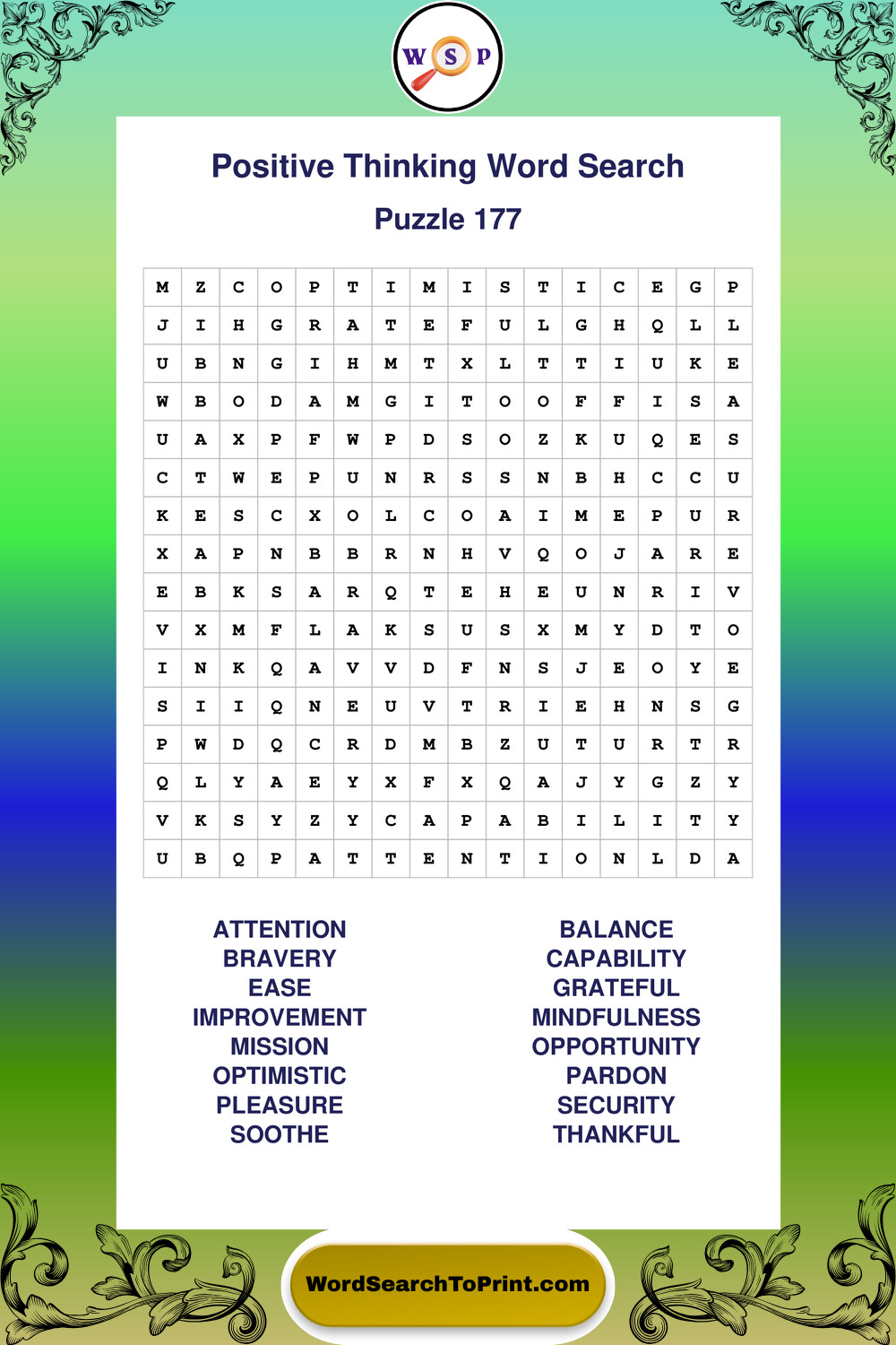 These puzzles highlight positive thinking, emotional awareness, mindfulness, and wellbeing concepts. They provide a relaxing and effective way to connect with this subject while supporting memory and language skills. You may also enjoy our Mental Health word search puzzles and Relax word search puzzles.
