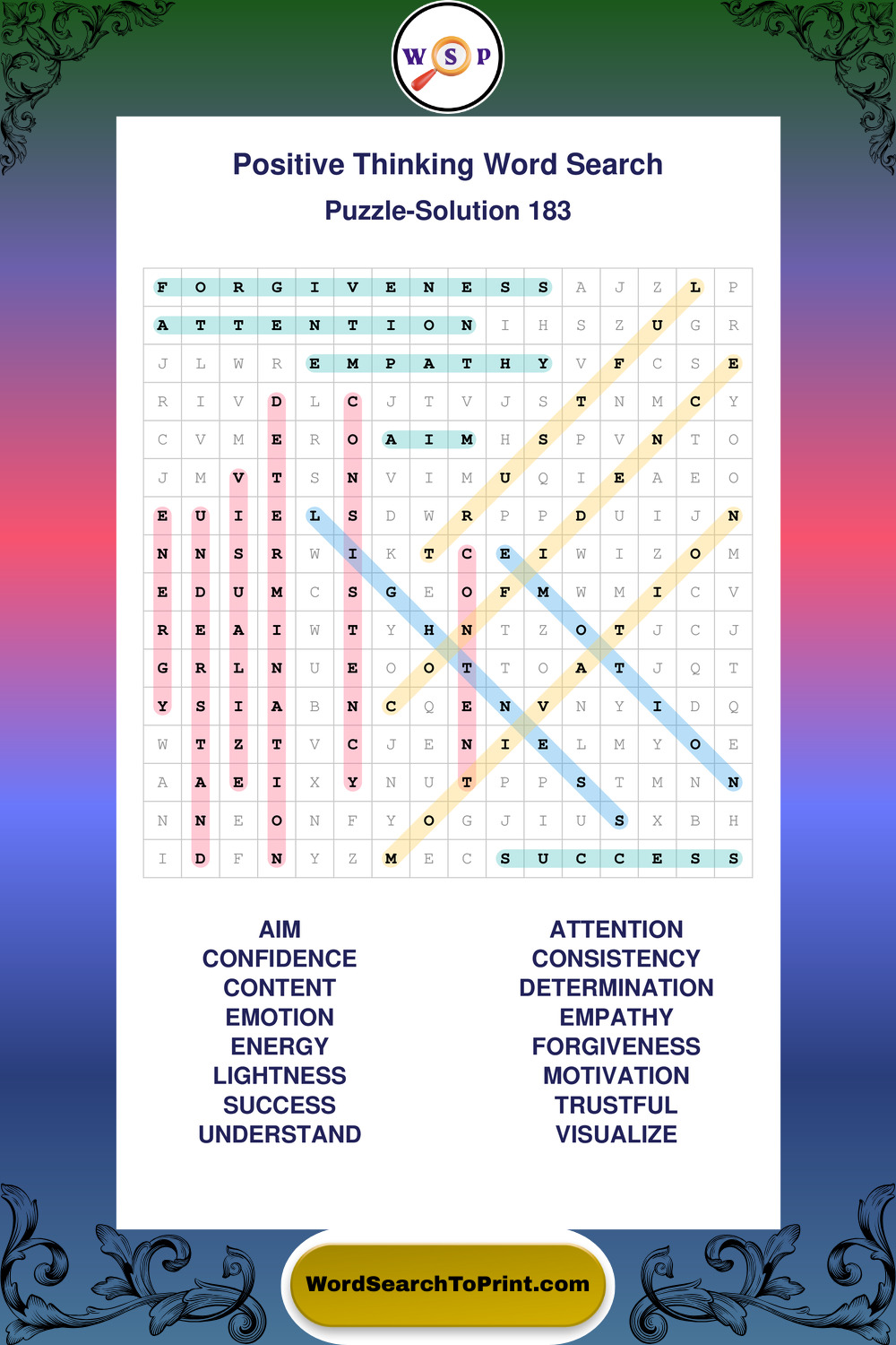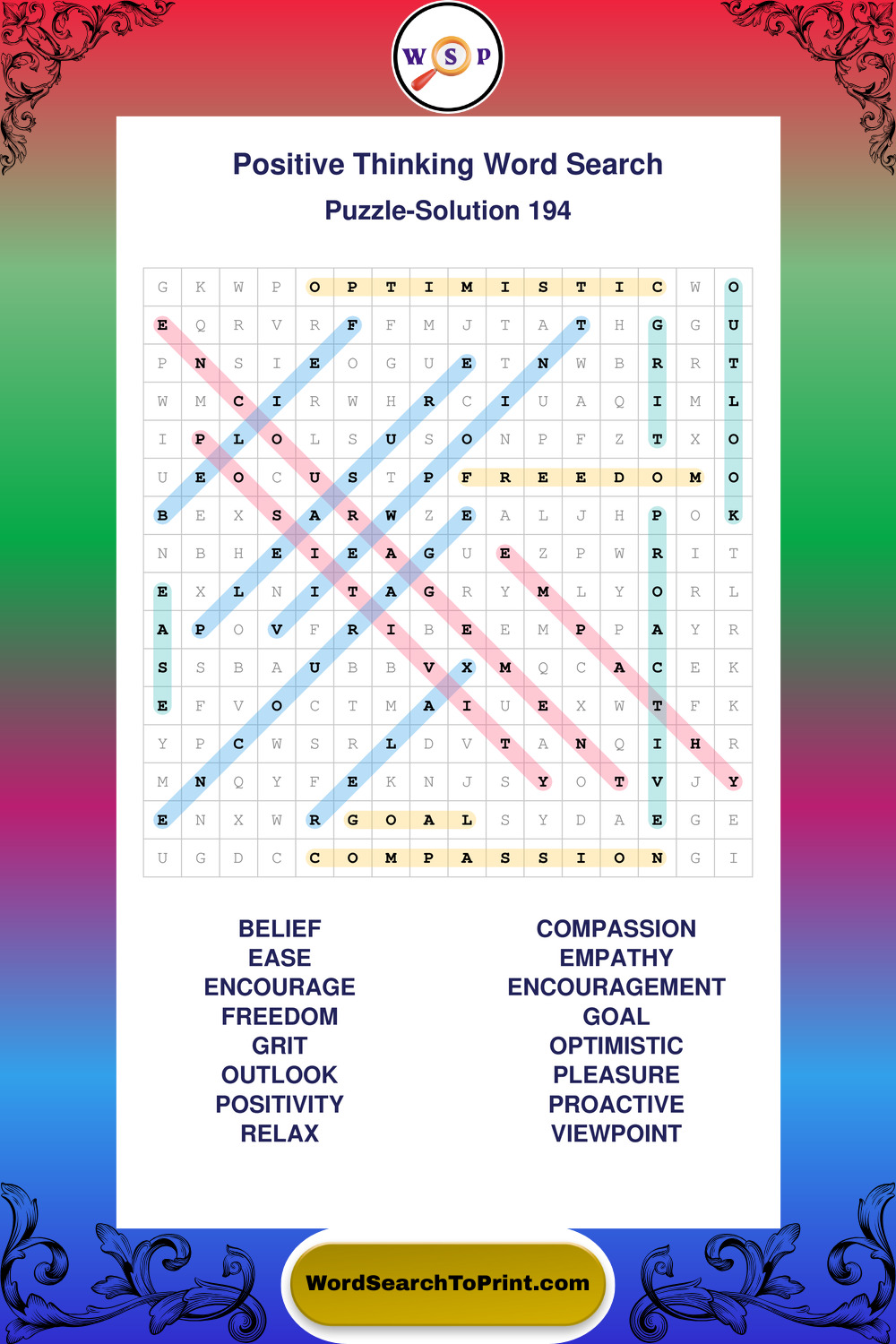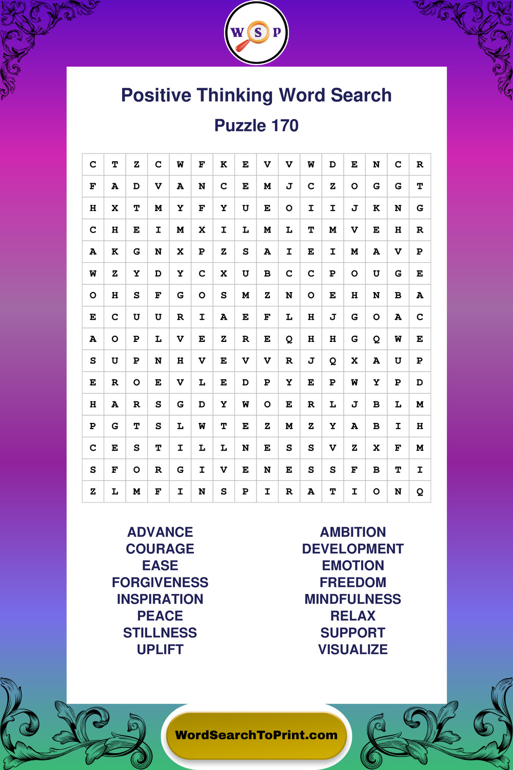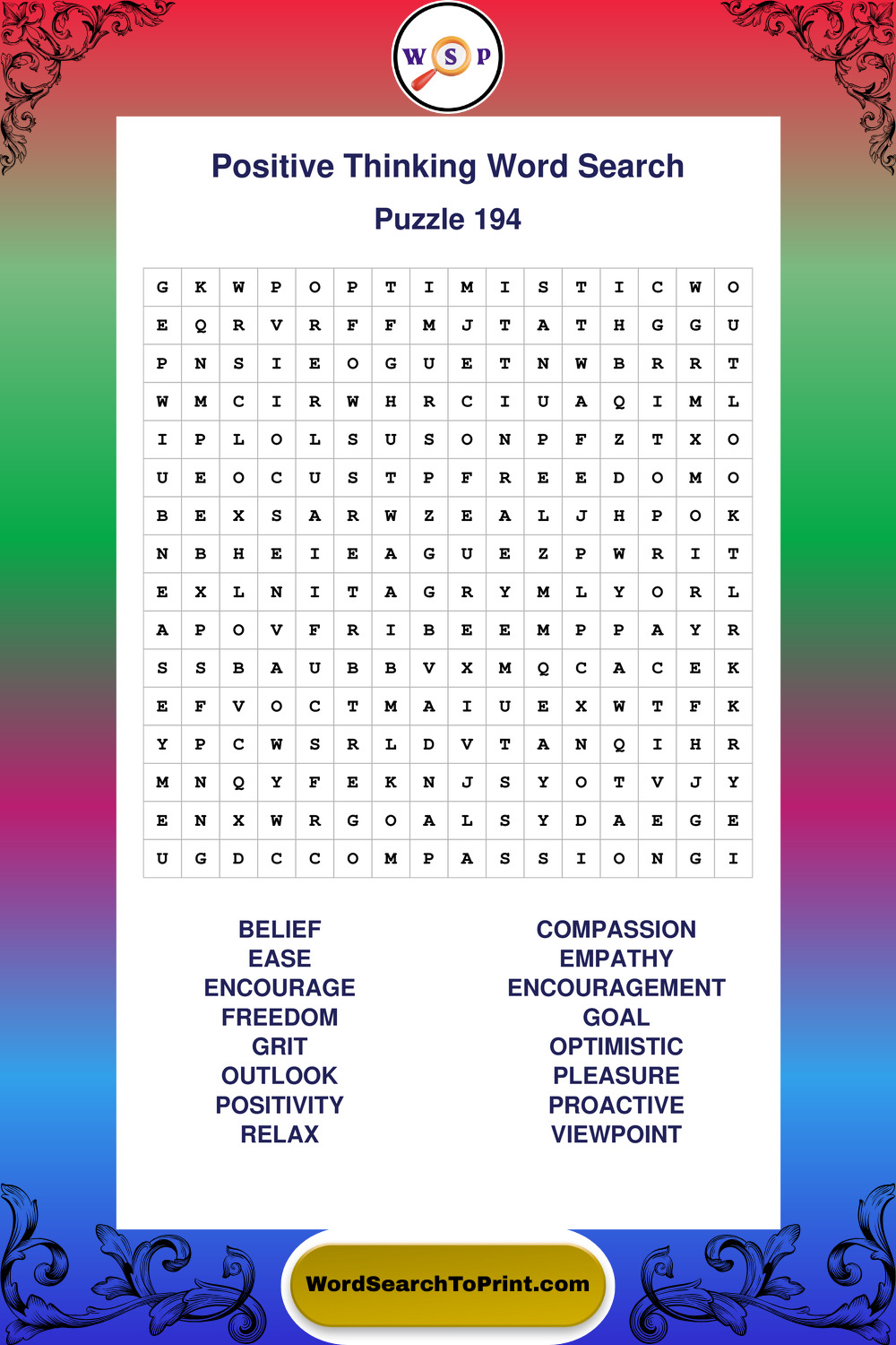 Printable Positive Thinking Wordsearch Puzzles