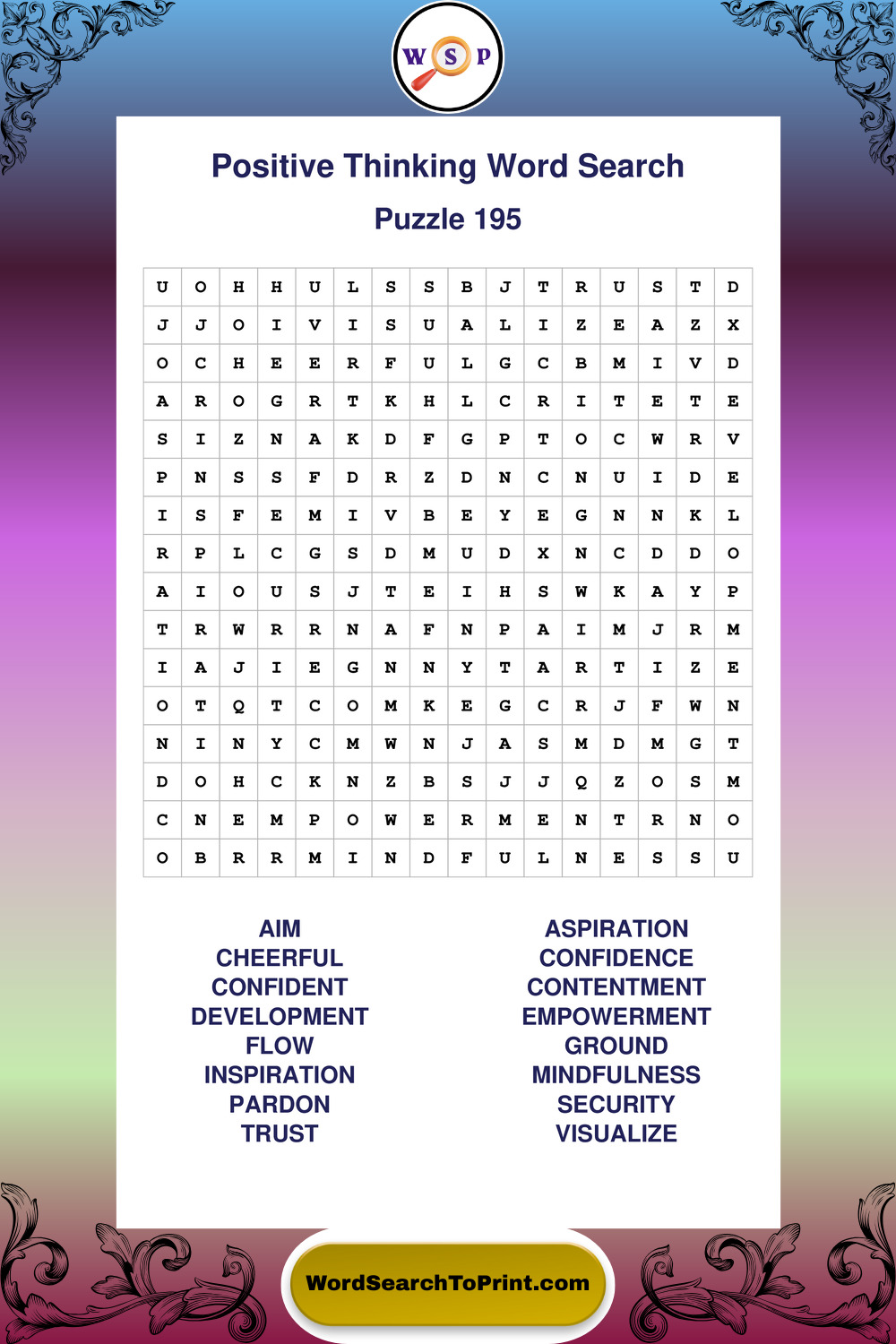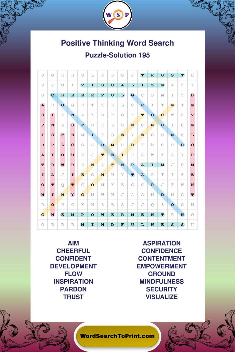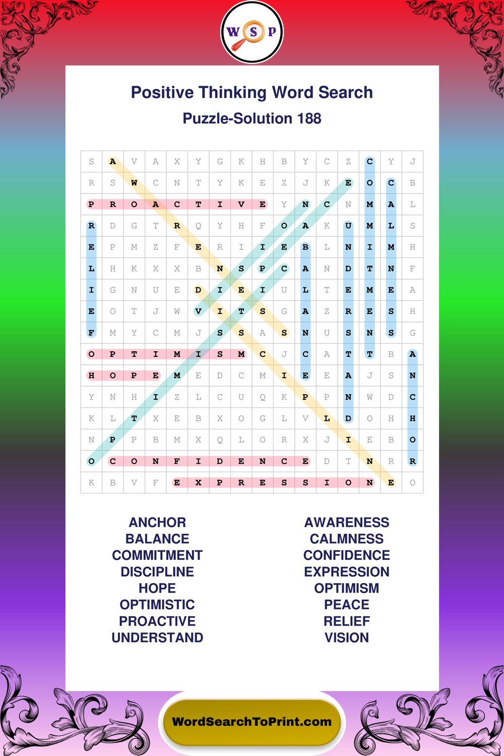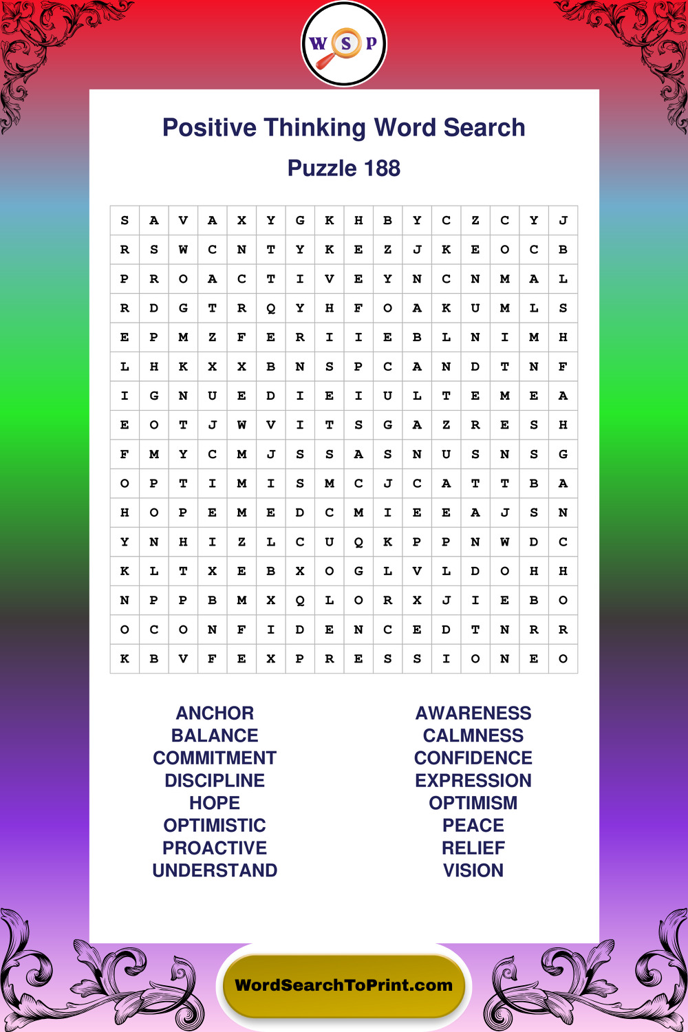 Printable Positive Thinking Wordsearch Puzzles