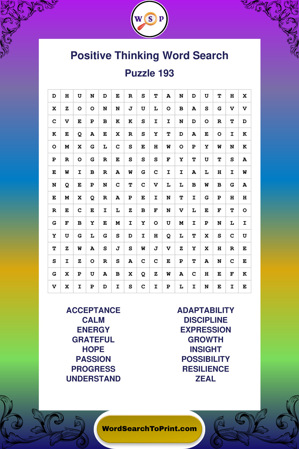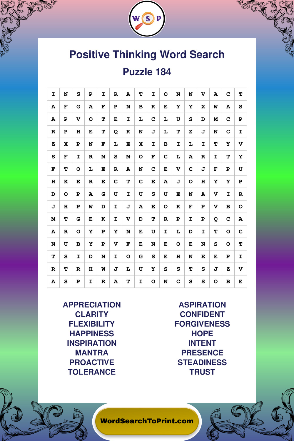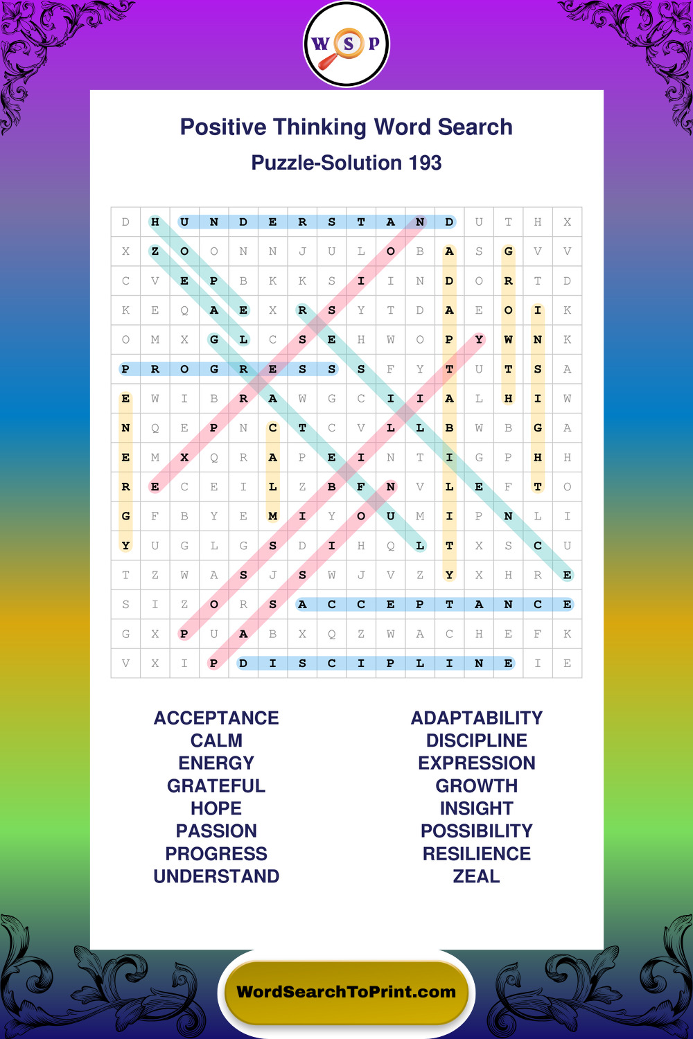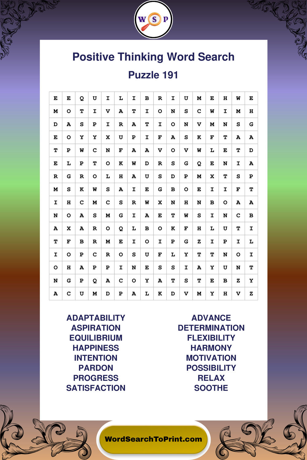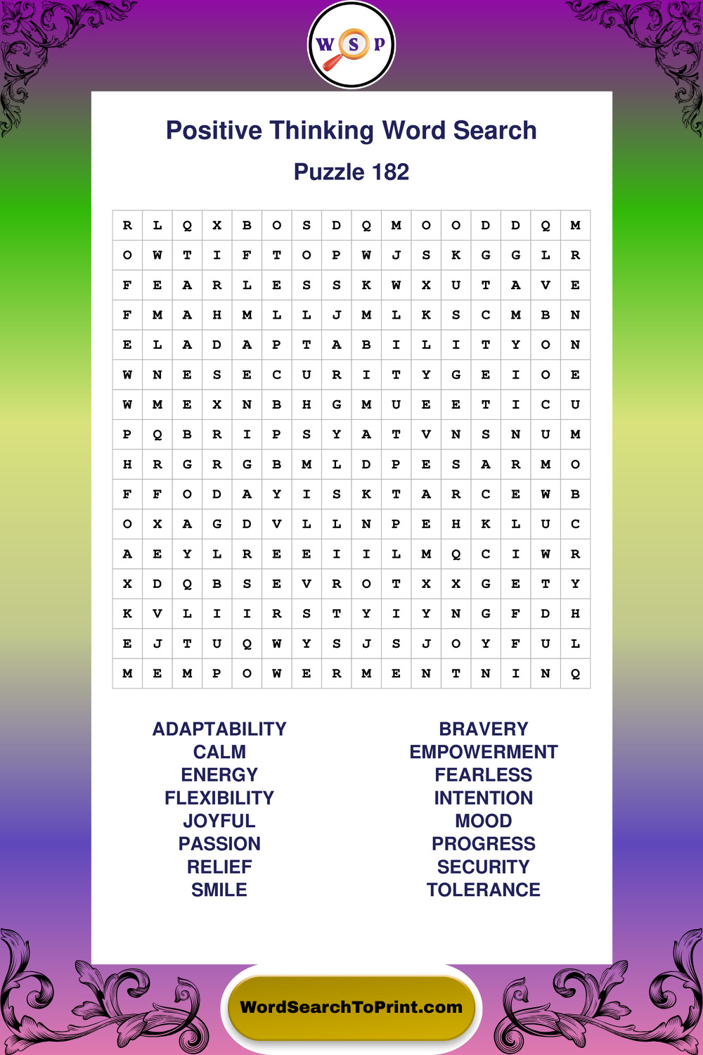Printable Positive Thinking Wordsearch Puzzles