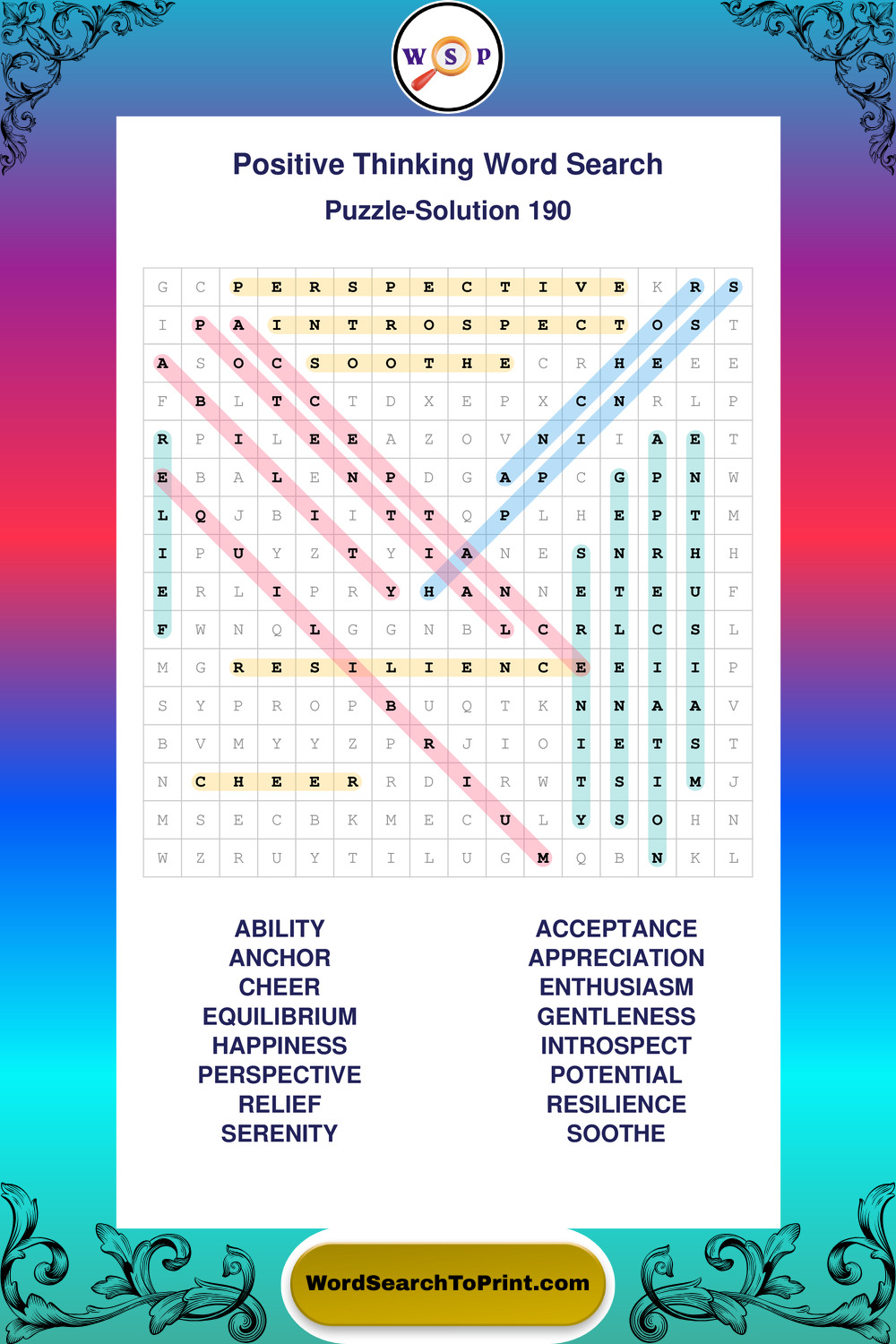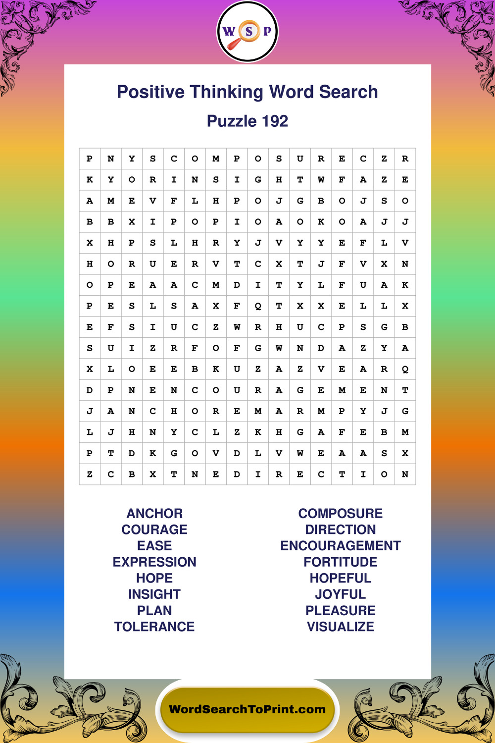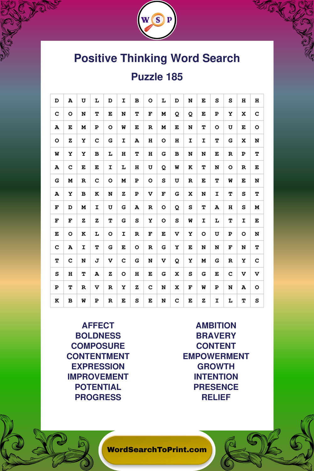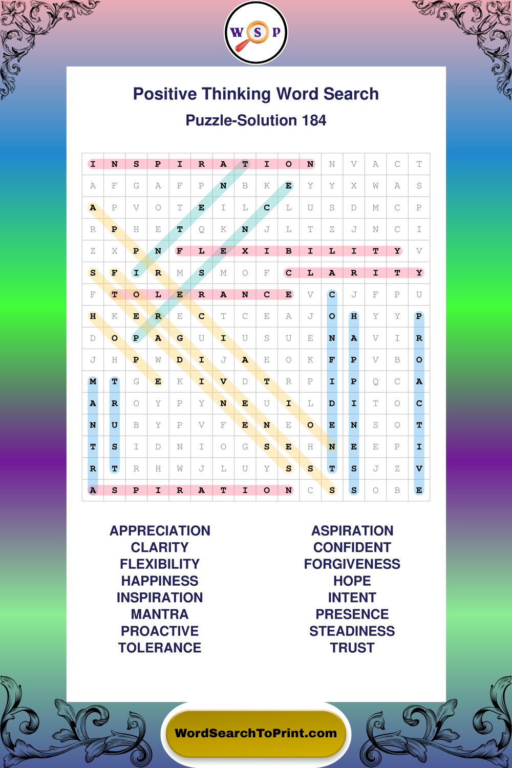 Printable Positive Thinking Wordsearch Puzzles