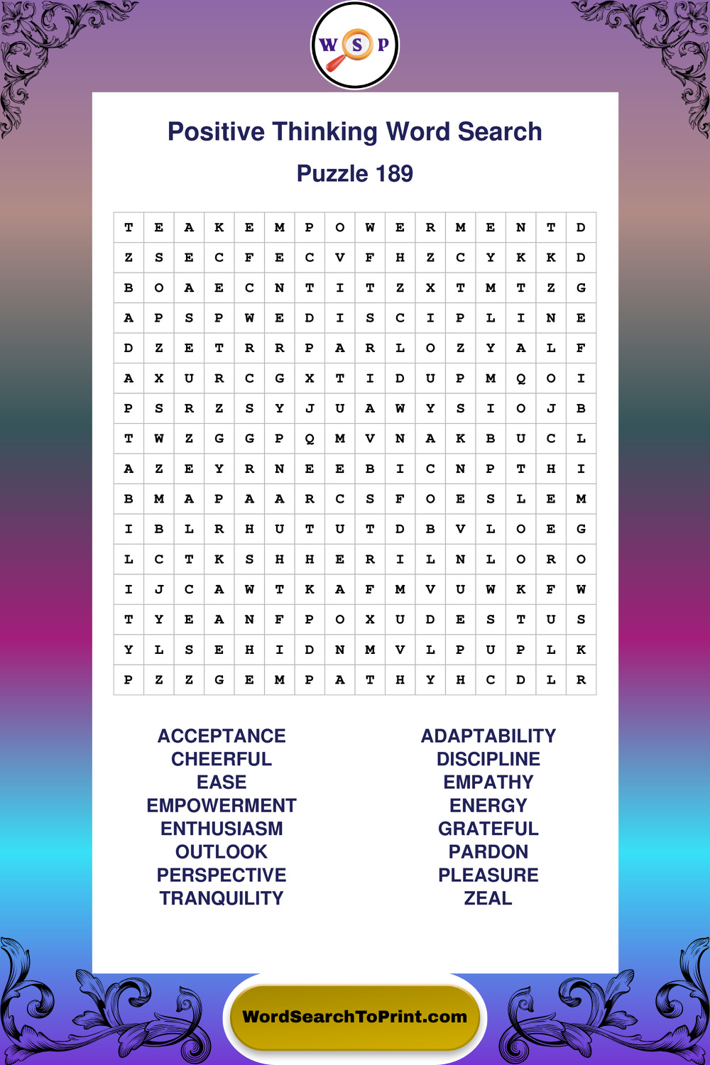 Positive Thinking Wordsearches