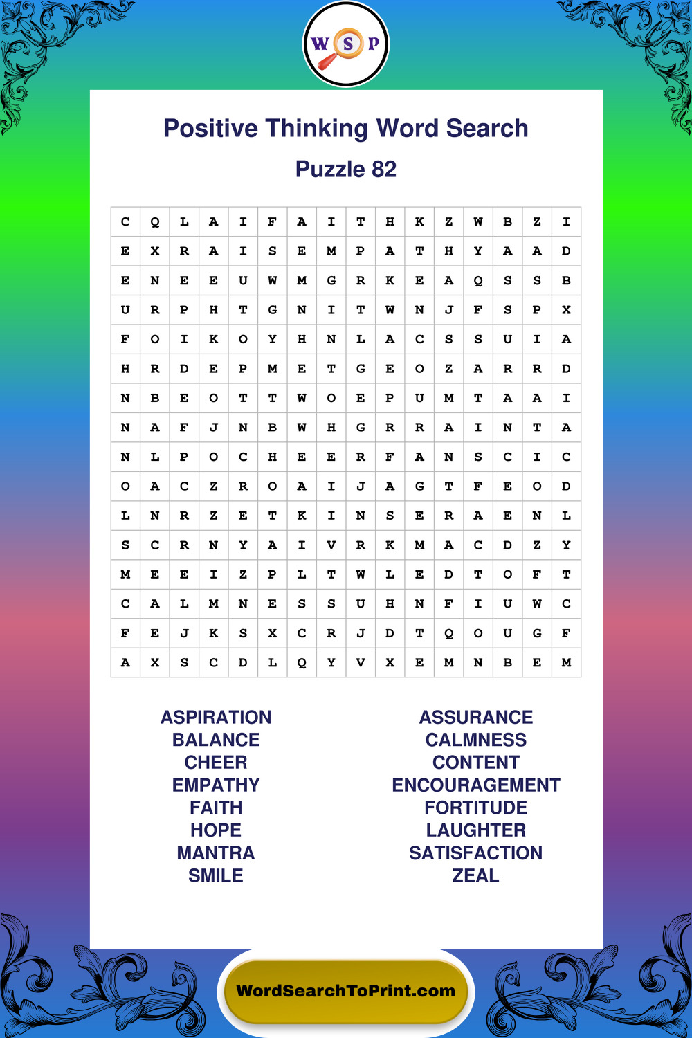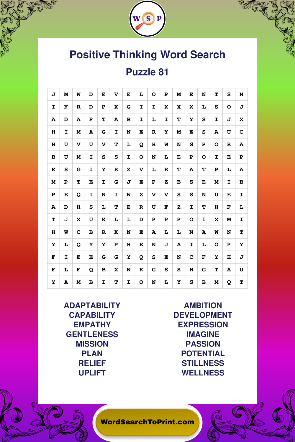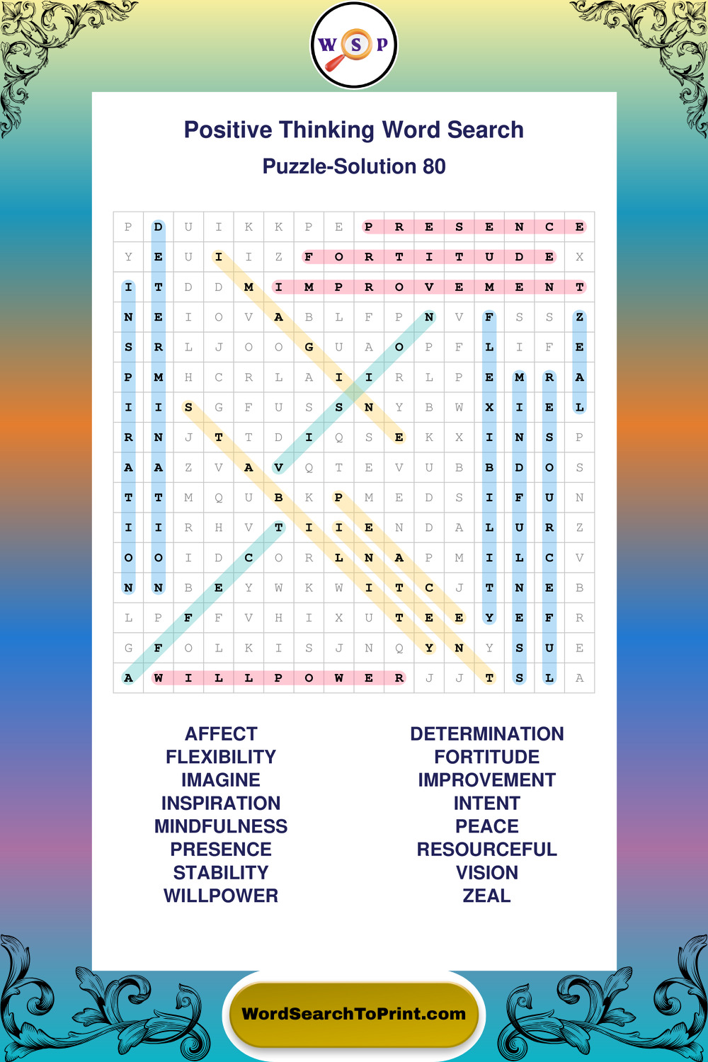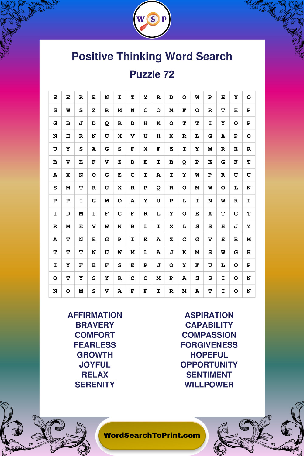 Printable Positive Thinking Wordsearch Puzzles