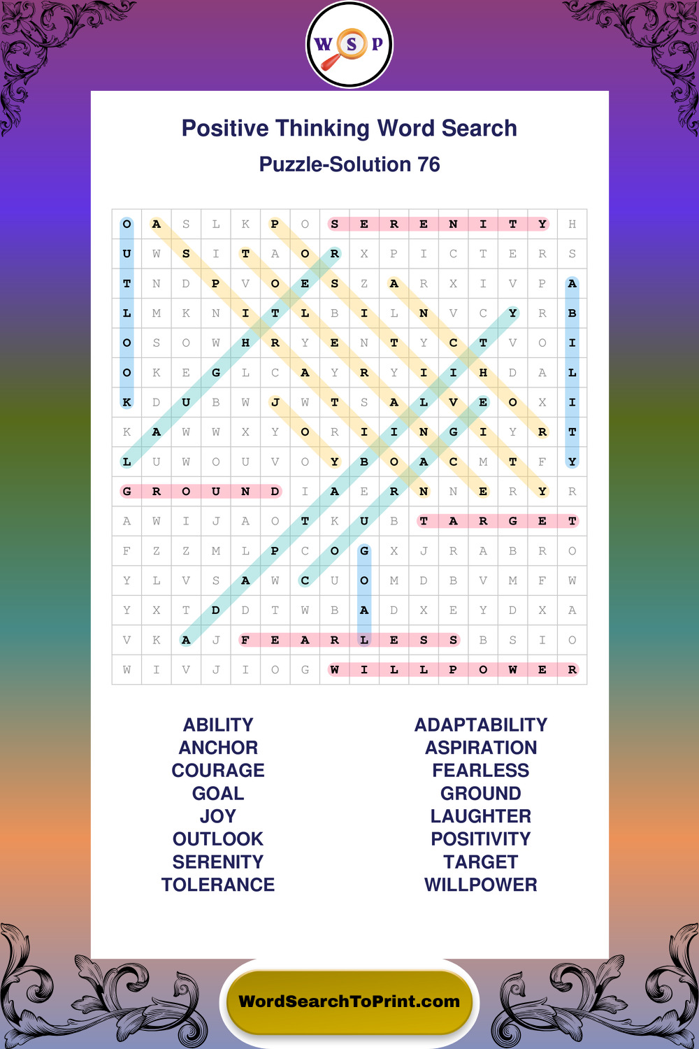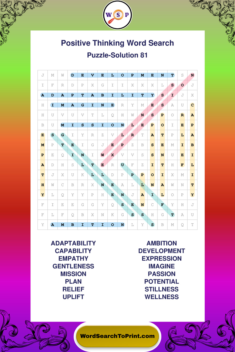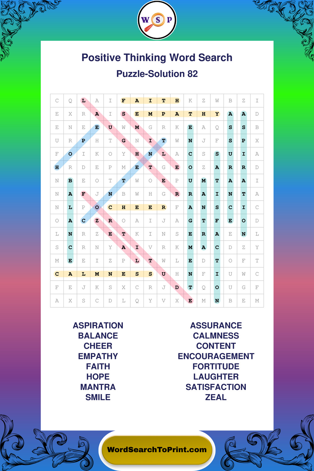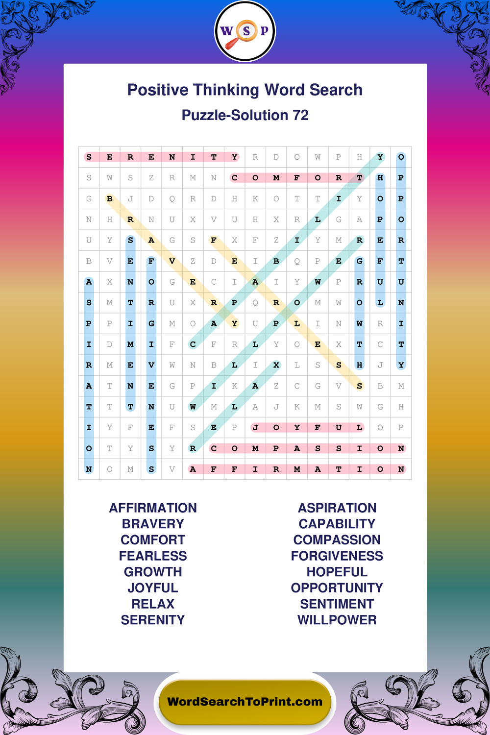 Printable Positive Thinking Wordsearch Puzzles