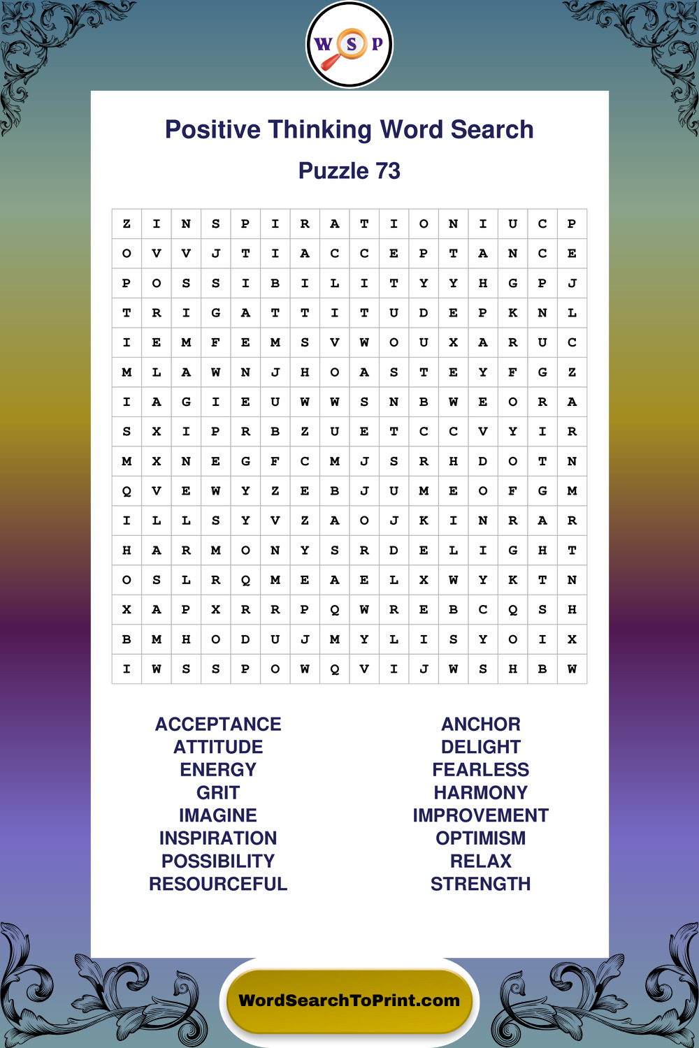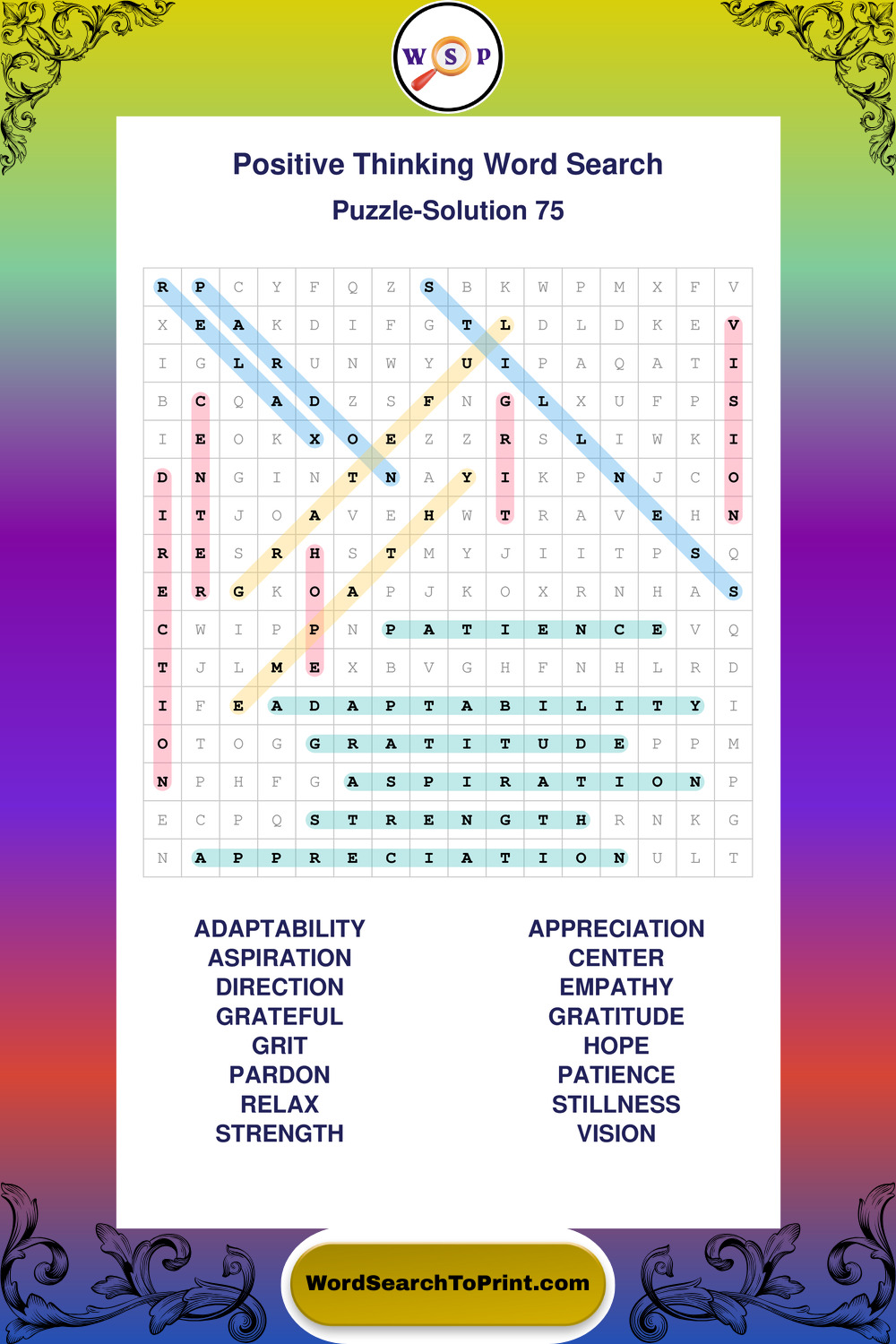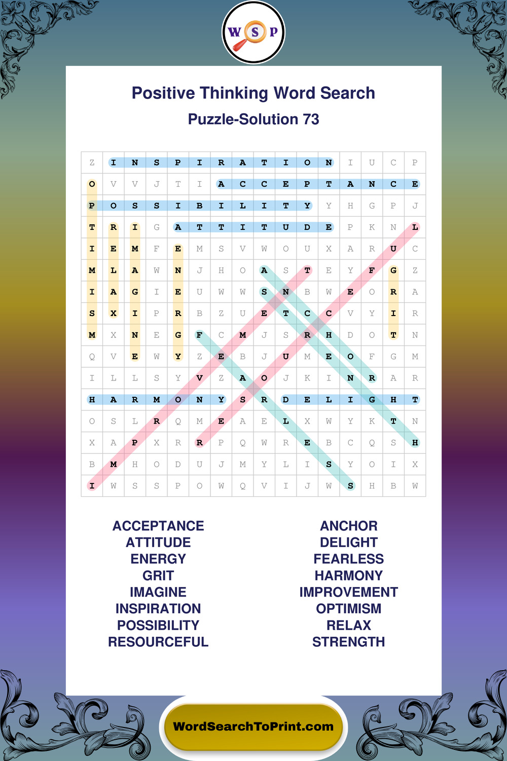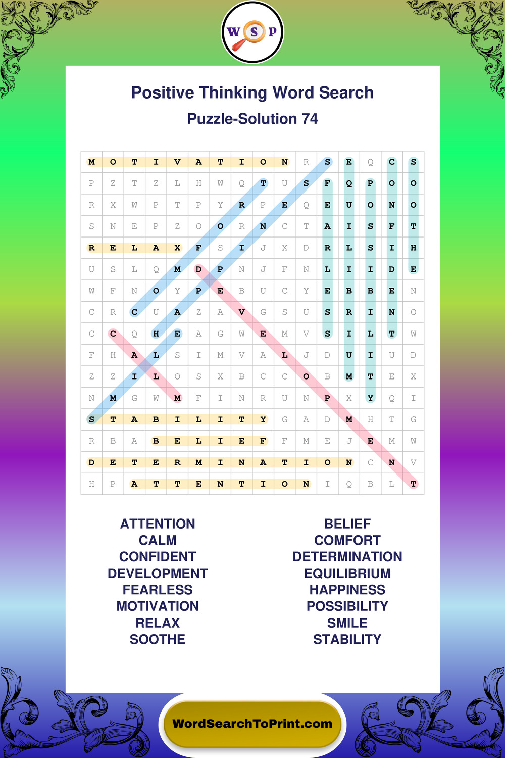 Printable Positive Thinking Wordsearch Puzzles