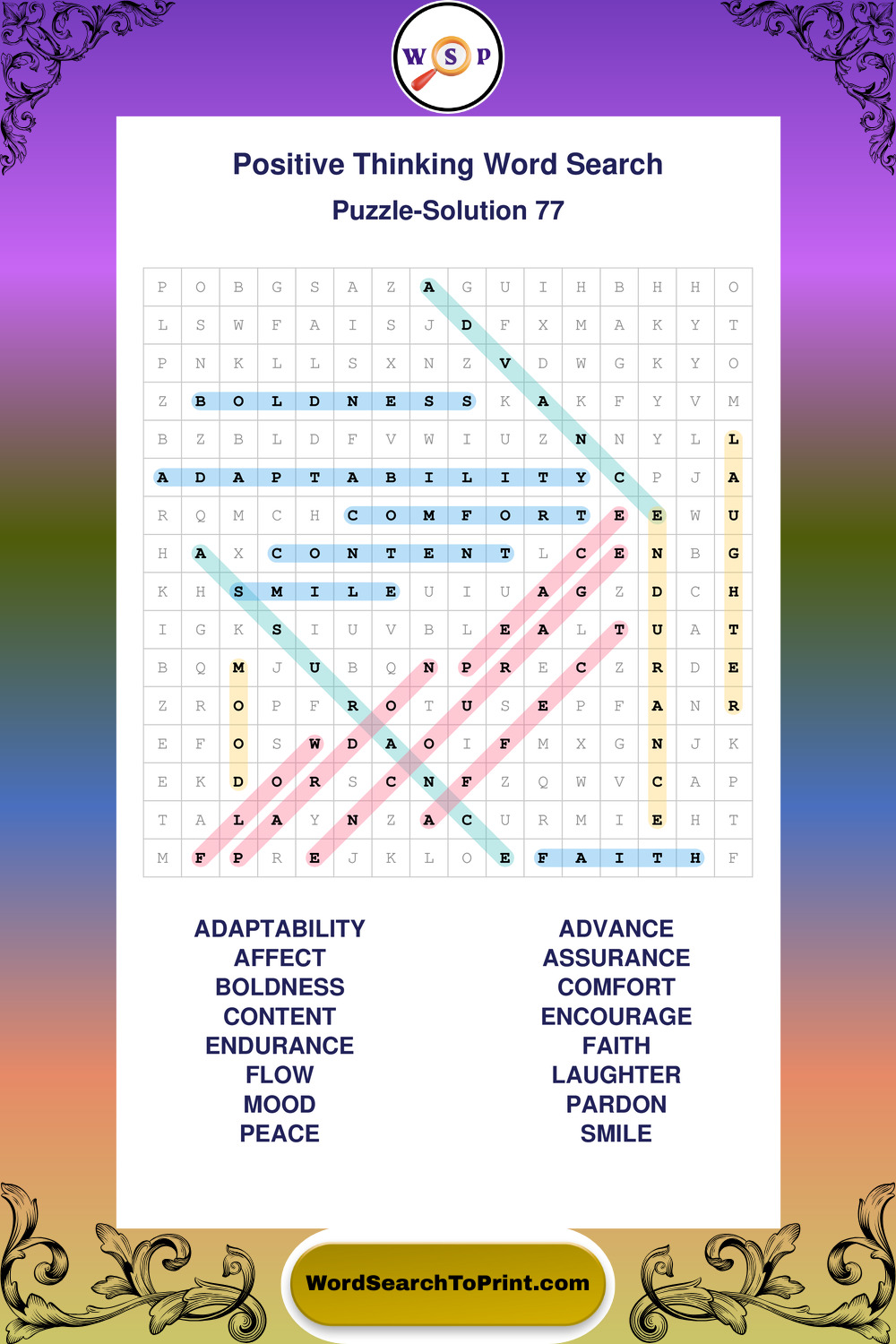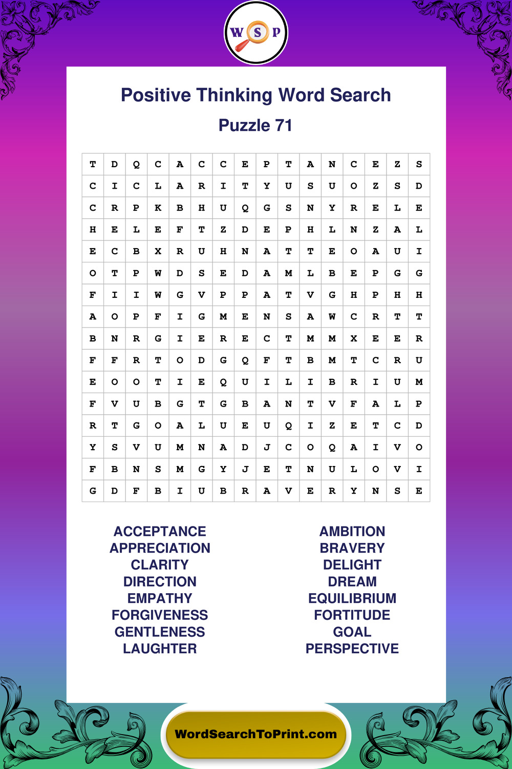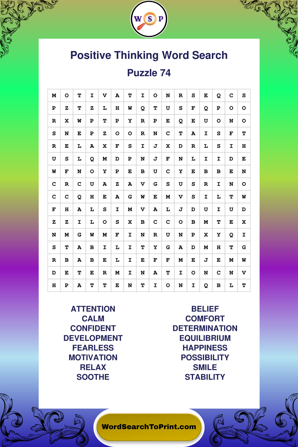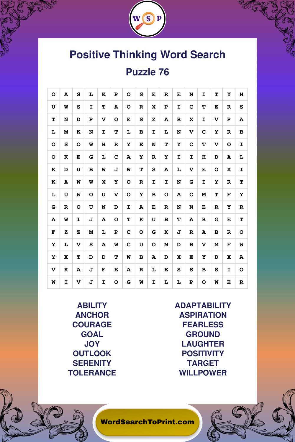 Printable Positive Thinking Wordsearch Puzzles