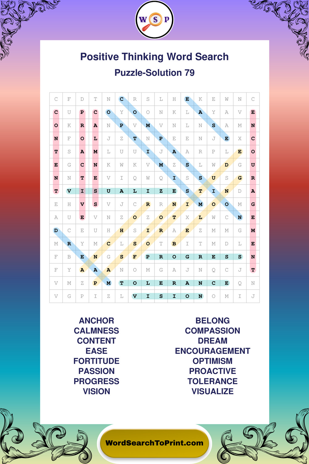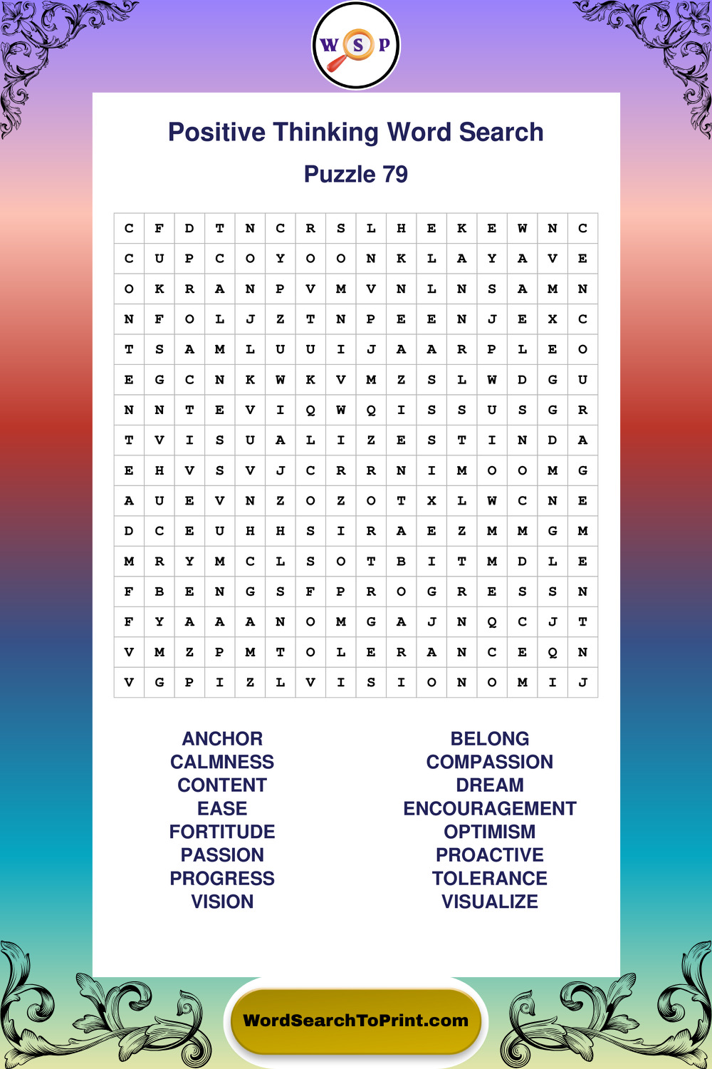 Enjoy large print Positive Thinking wordsearches that balance clarity, simplicity, and enjoyable mental activity.