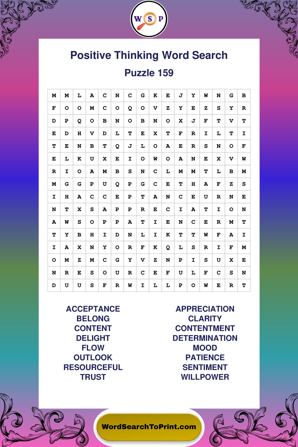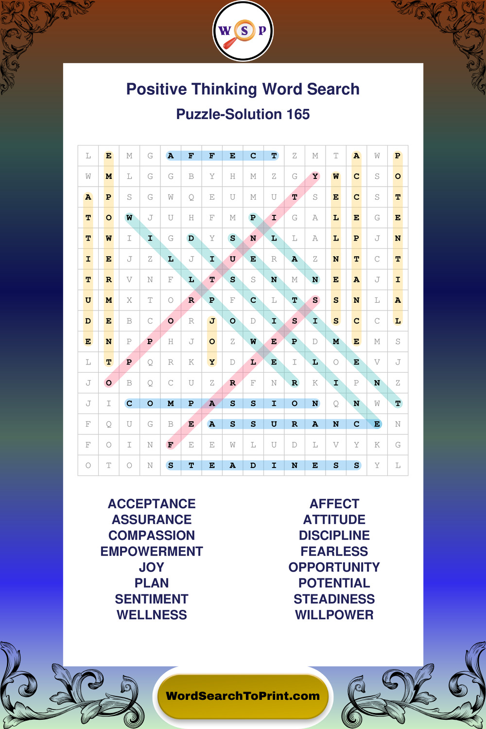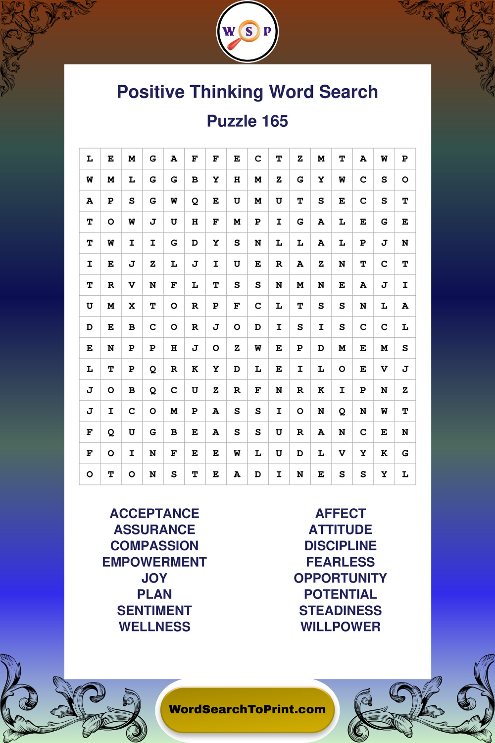 Printable Positive Thinking Wordsearch Puzzles