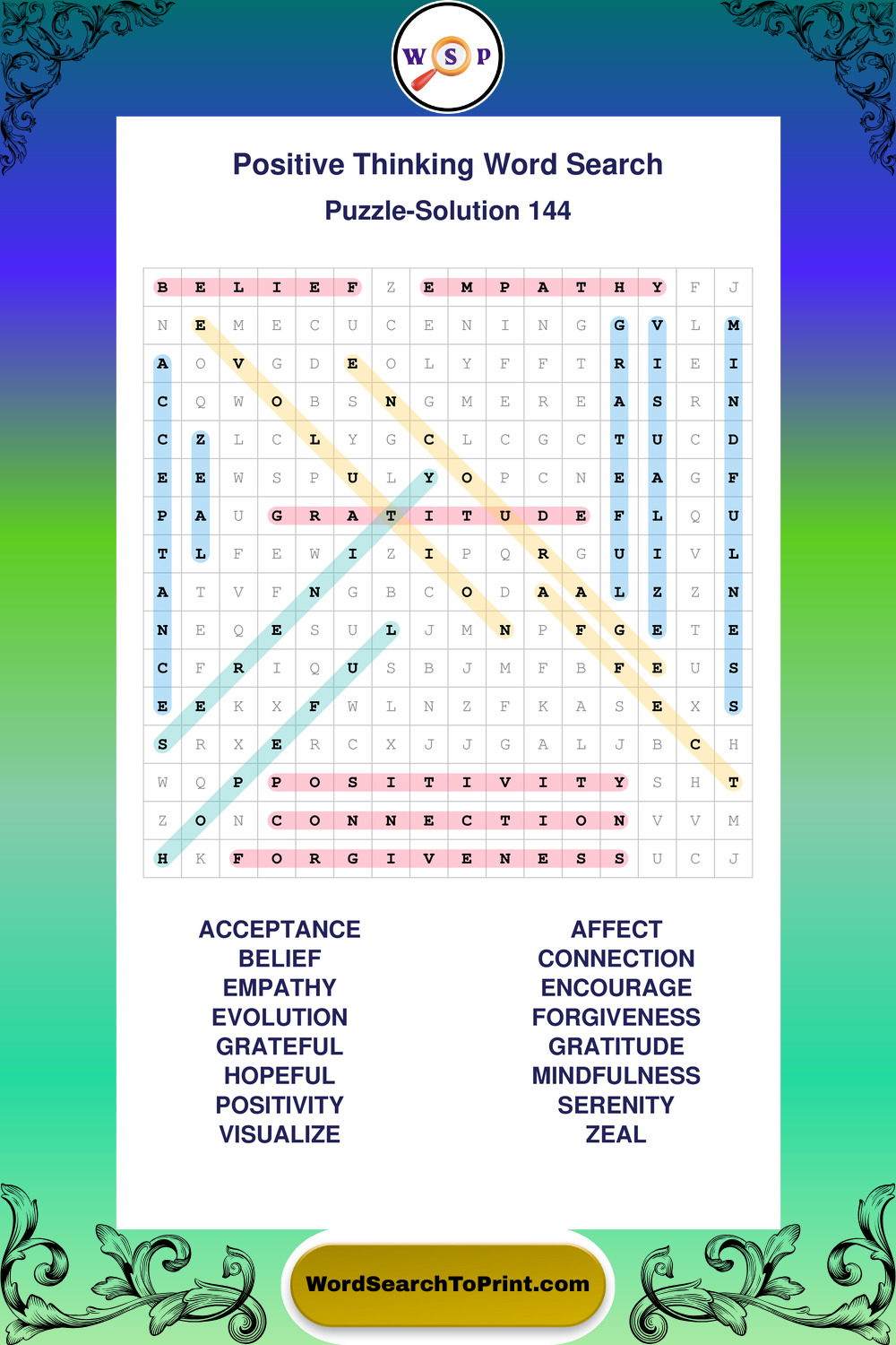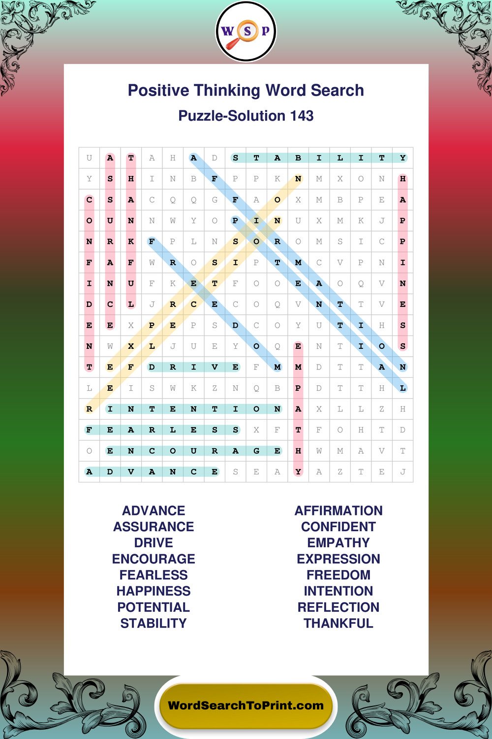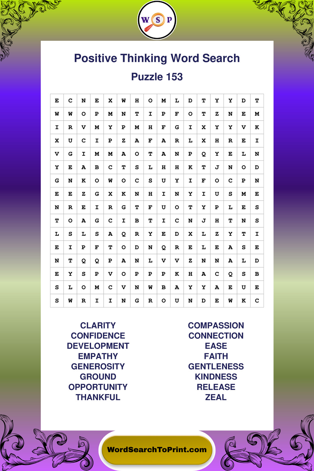 Printable Positive Thinking Wordsearch Puzzles