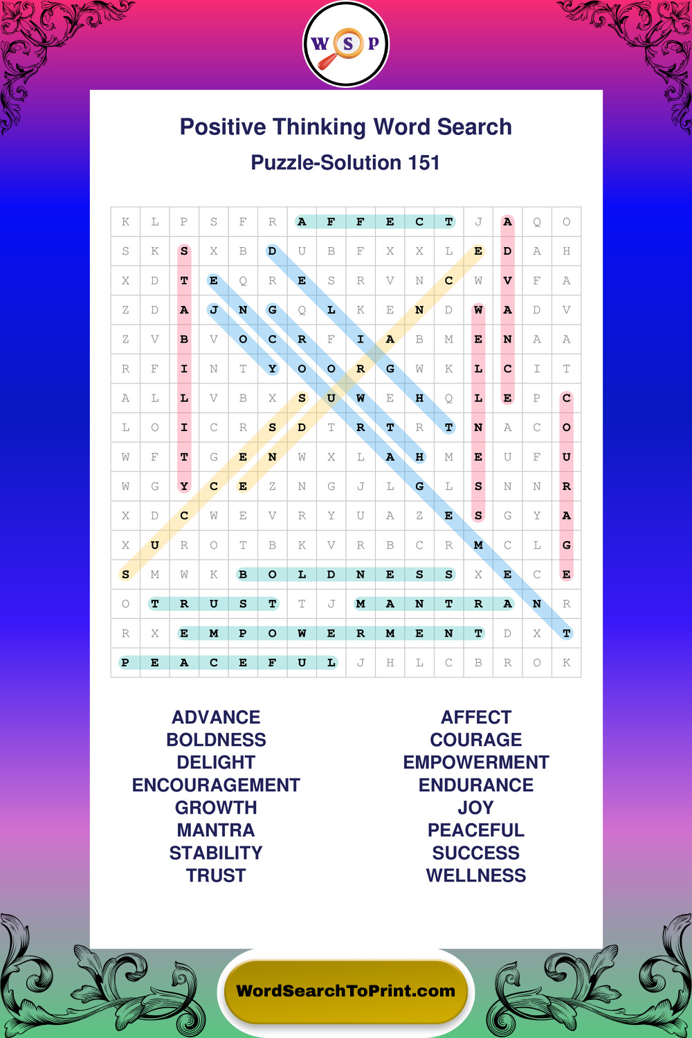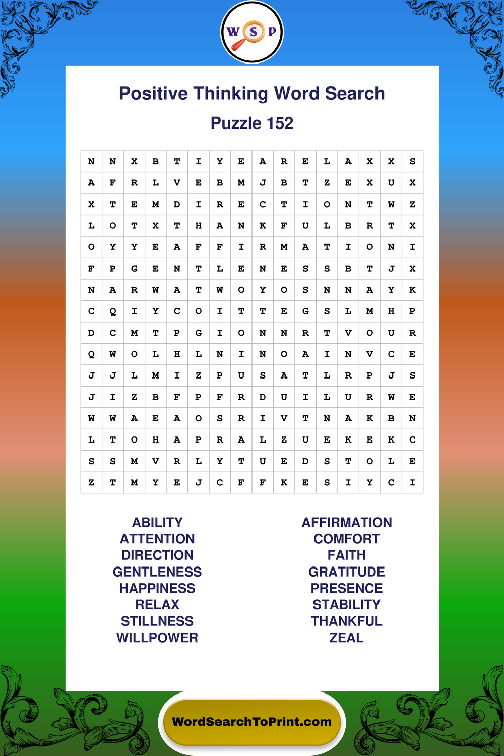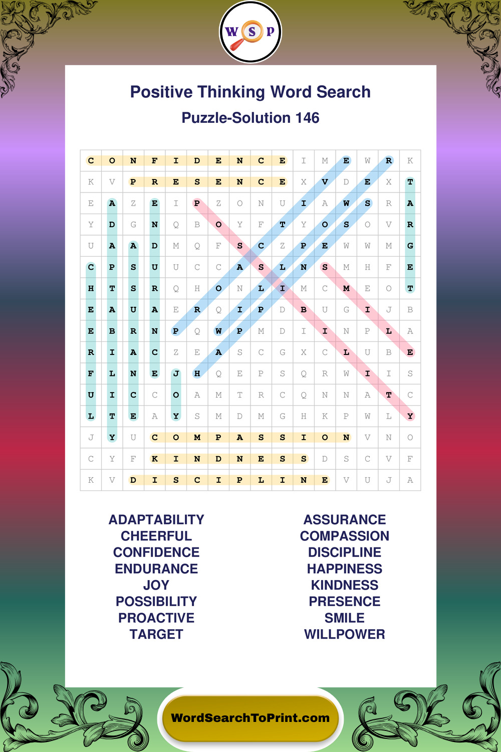 Printable Positive Thinking Wordsearch Puzzles