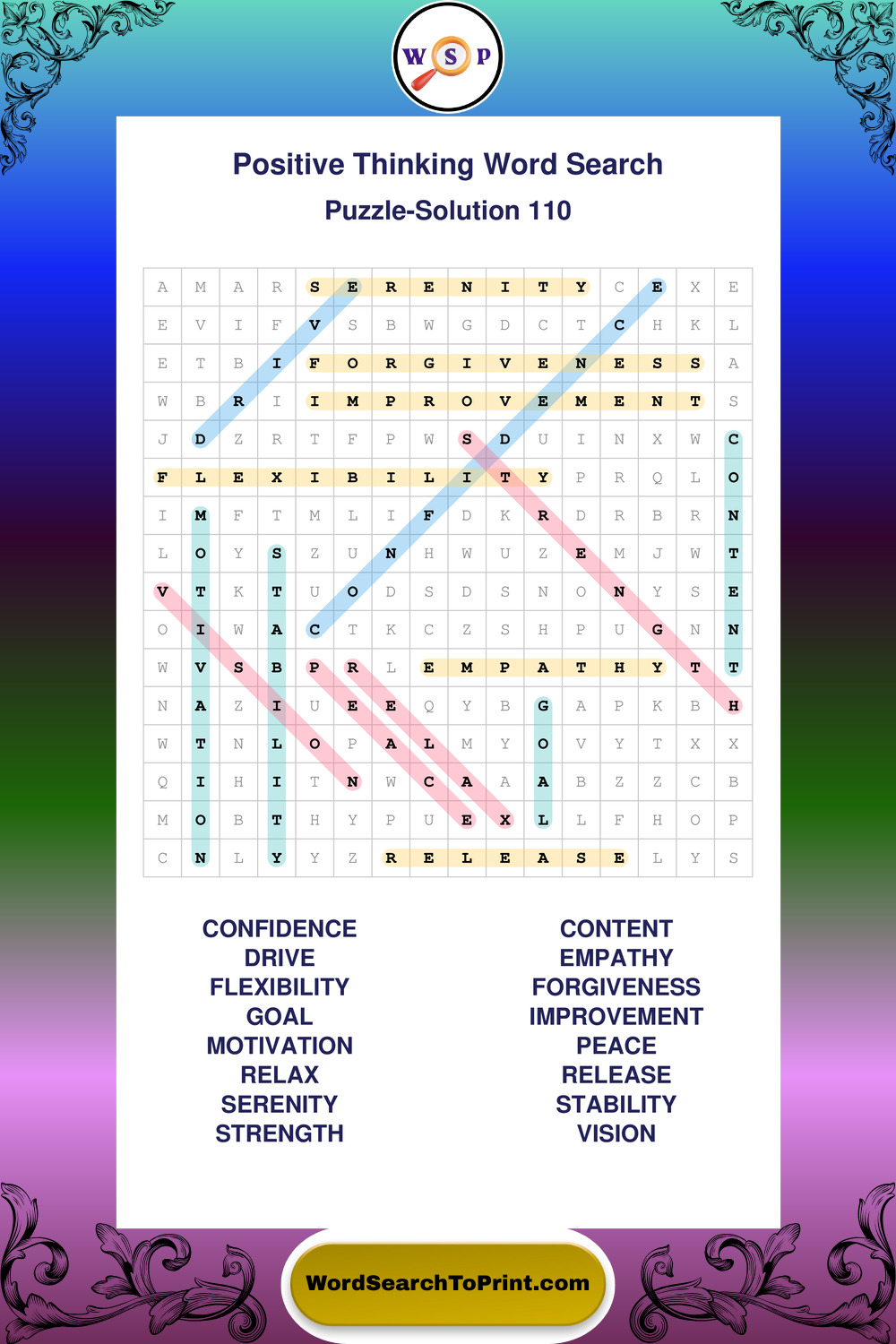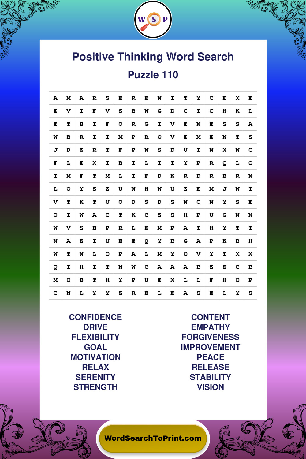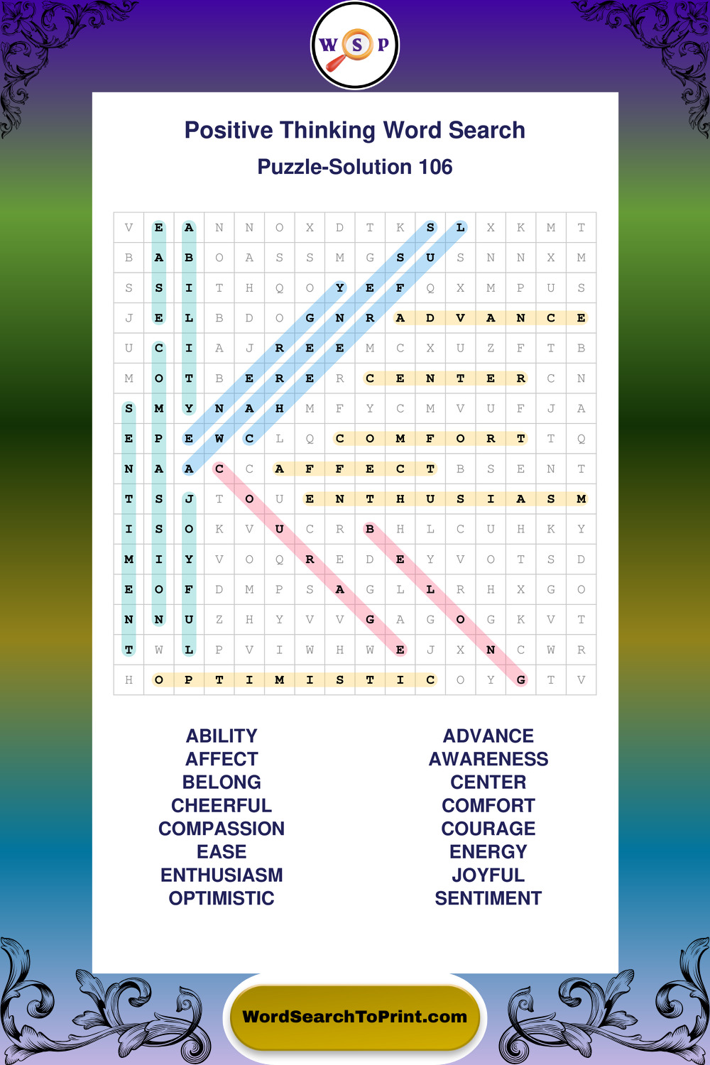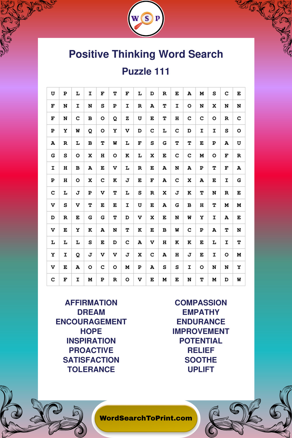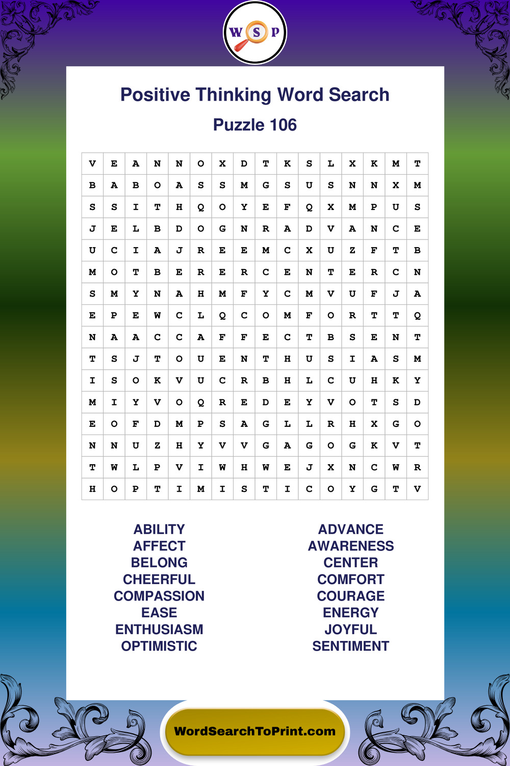 Printable Positive Thinking Wordsearch Puzzles